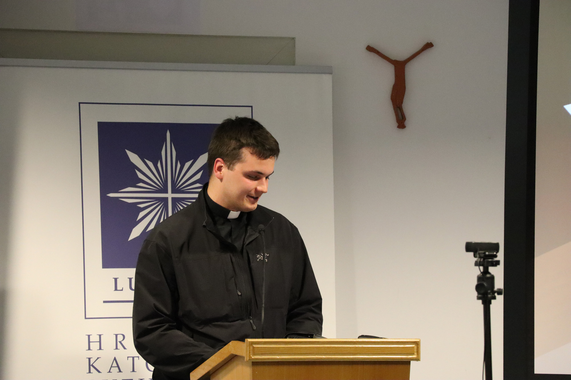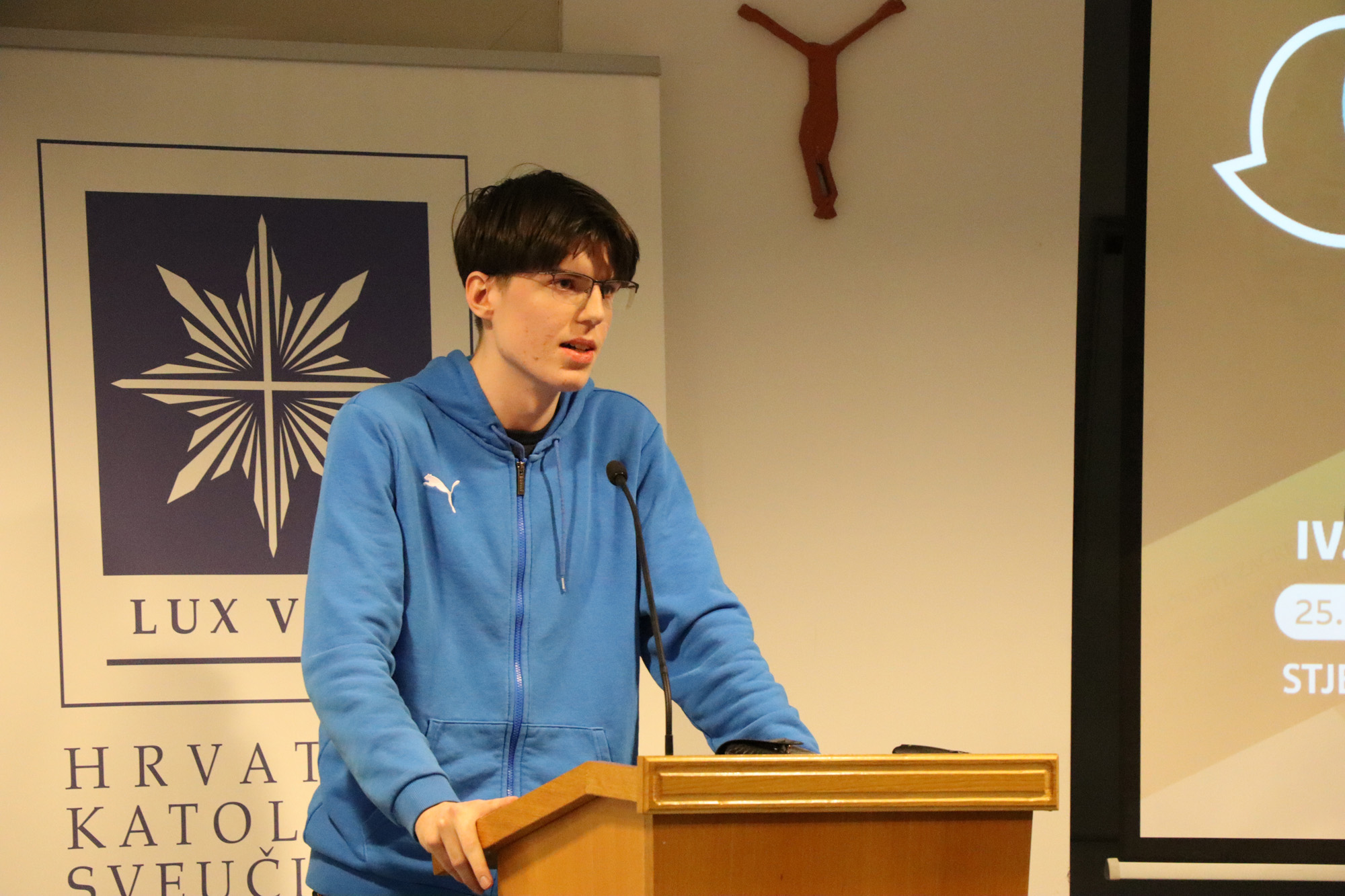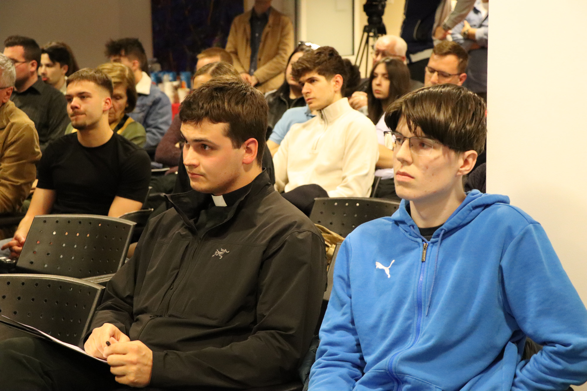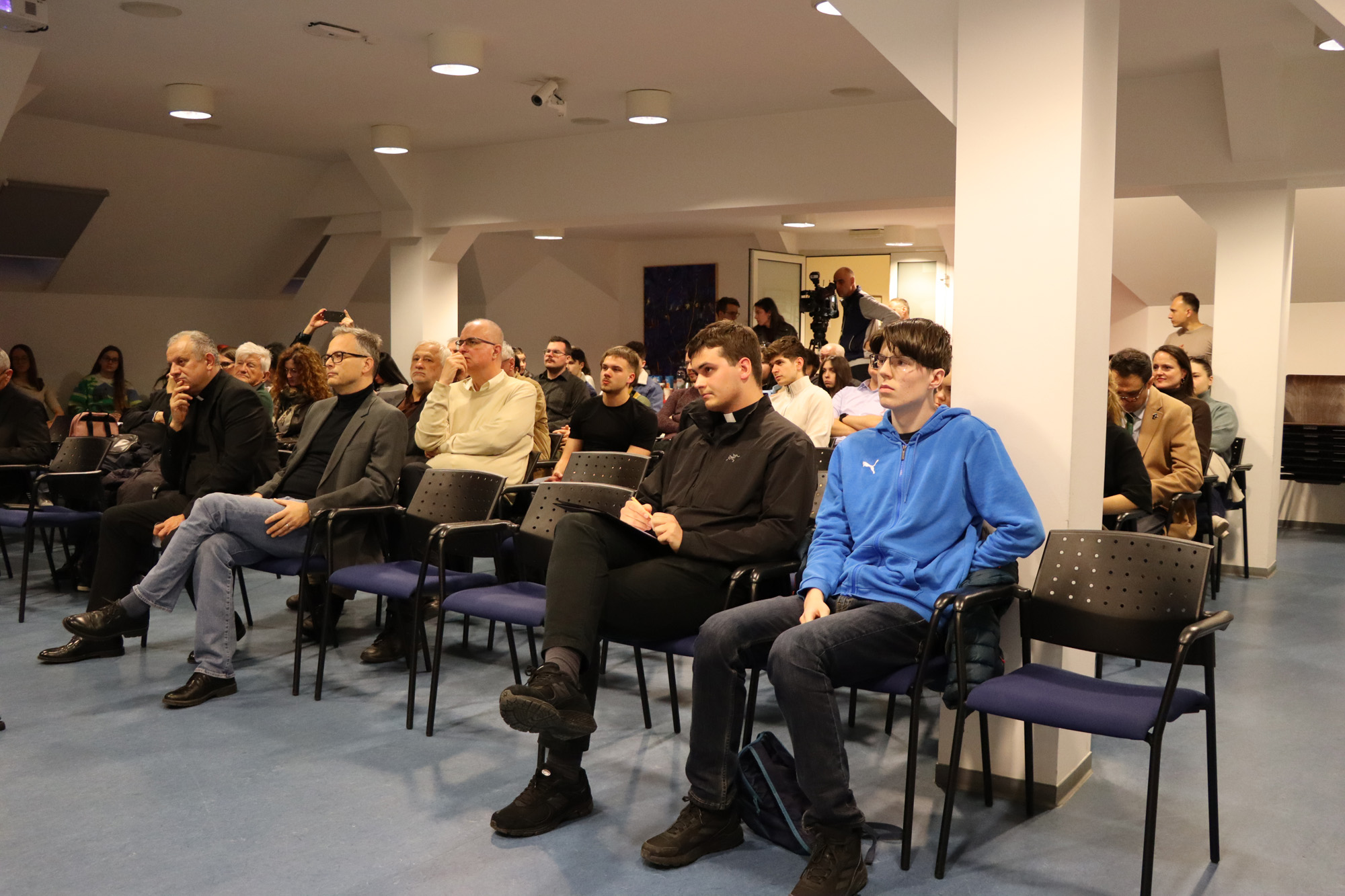 Following the presentations, two respondents—Luka Maras, a seminarian of the Archdiocese of Zagreb, and Filip Krznar, a student of the XV Gymnasium—offered their interventions. A lively discussion followed, raising numerous questions about faith and values, language and interior life, secularization and secularism, law and formalism, neutrality and commitment.