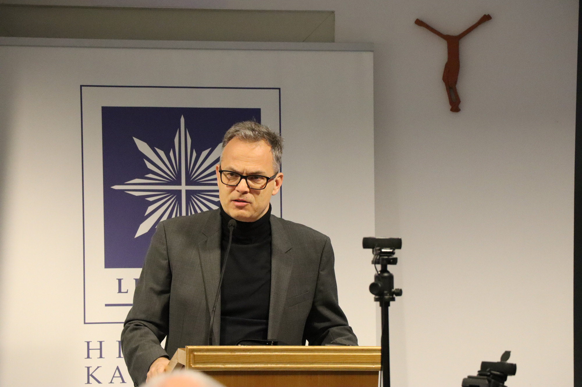 Dr. Gregorić also offered a critical perspective on social and legal frameworks, arguing that Croatia should work toward greater secularization. He identified several problematic elements: the Vatican treaties grant the Church a privileged position, which he sees as contrary to constitutional equality; the merging of national and religious identity is problematic in a pluralistic society; and the historical role of the Church should not serve as permanent political capital. He also warned against the instrumentalization of religion in issues such as religious education, abortion, and euthanasia. Referring to Jürgen Habermas, he emphasized that moral norms in pluralistic societies must be intersubjective rather than religiously defined. He concluded by stating that he wishes to live in a neutral state that ensures both freedom of religion and freedom from religion, ending with the provocative remark: “God in Croatia is a bit too alive.” and the question: “Is this the same God who is in your hearts?”