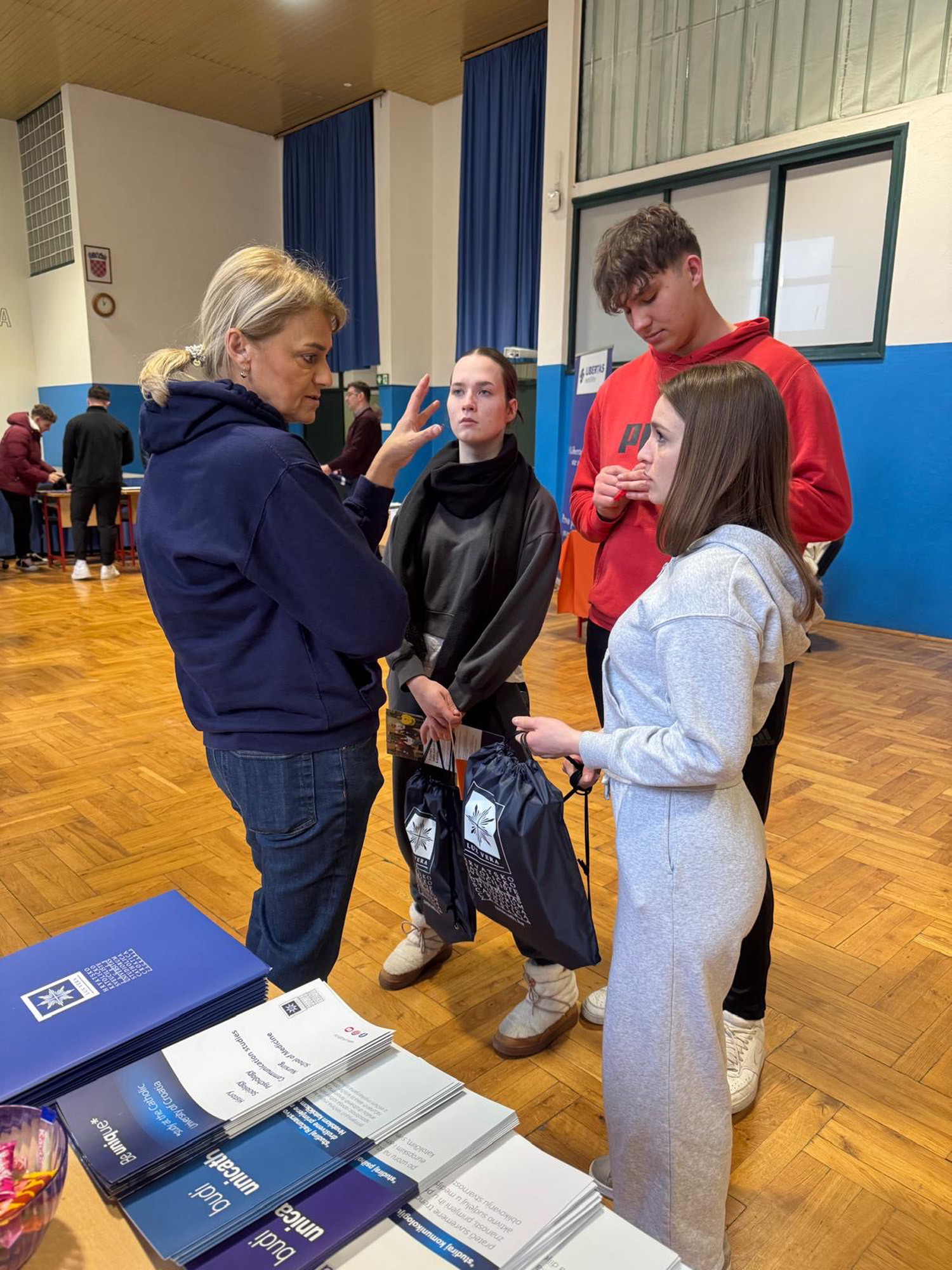 At Bedekovčina, CUC study programmes, student experiences and opportunities were presented by nursing students Laura Vujasinović and Leonarda Aščić, and sociology student Klara Pavković. Part of the teaching process and student obligations was presented by Assistant Professor Vesna Mijoč, PhD, from the Faculty of Health Studies and Karla Žagi, PhD, from the University Department of Sociology.