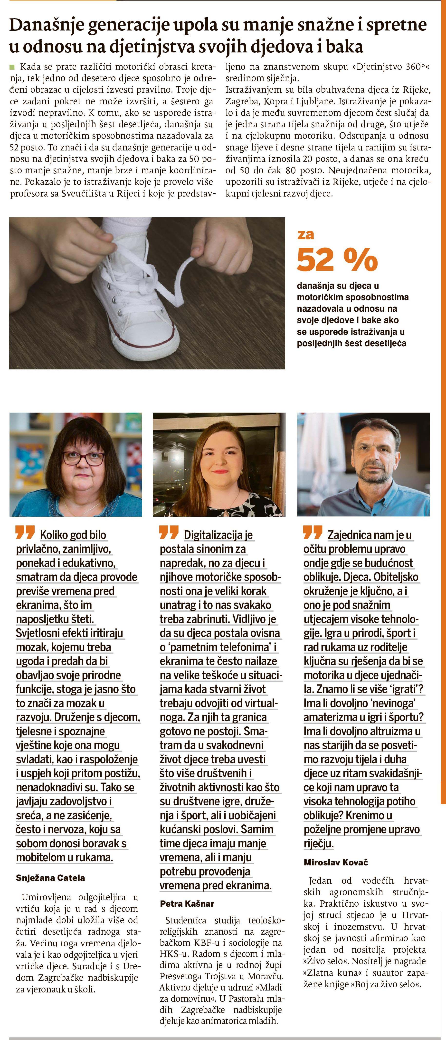 In the Prilika section of the weekly magazine Glas Koncila published on March 9, 2025, under the Power of Data section, Petra Kašnar, a second-year student in the undergraduate double major Theological and Religious Sciences at the Faculty of Theology and Sociology at our University, commented on the analyzed research that examined children's motor skills.