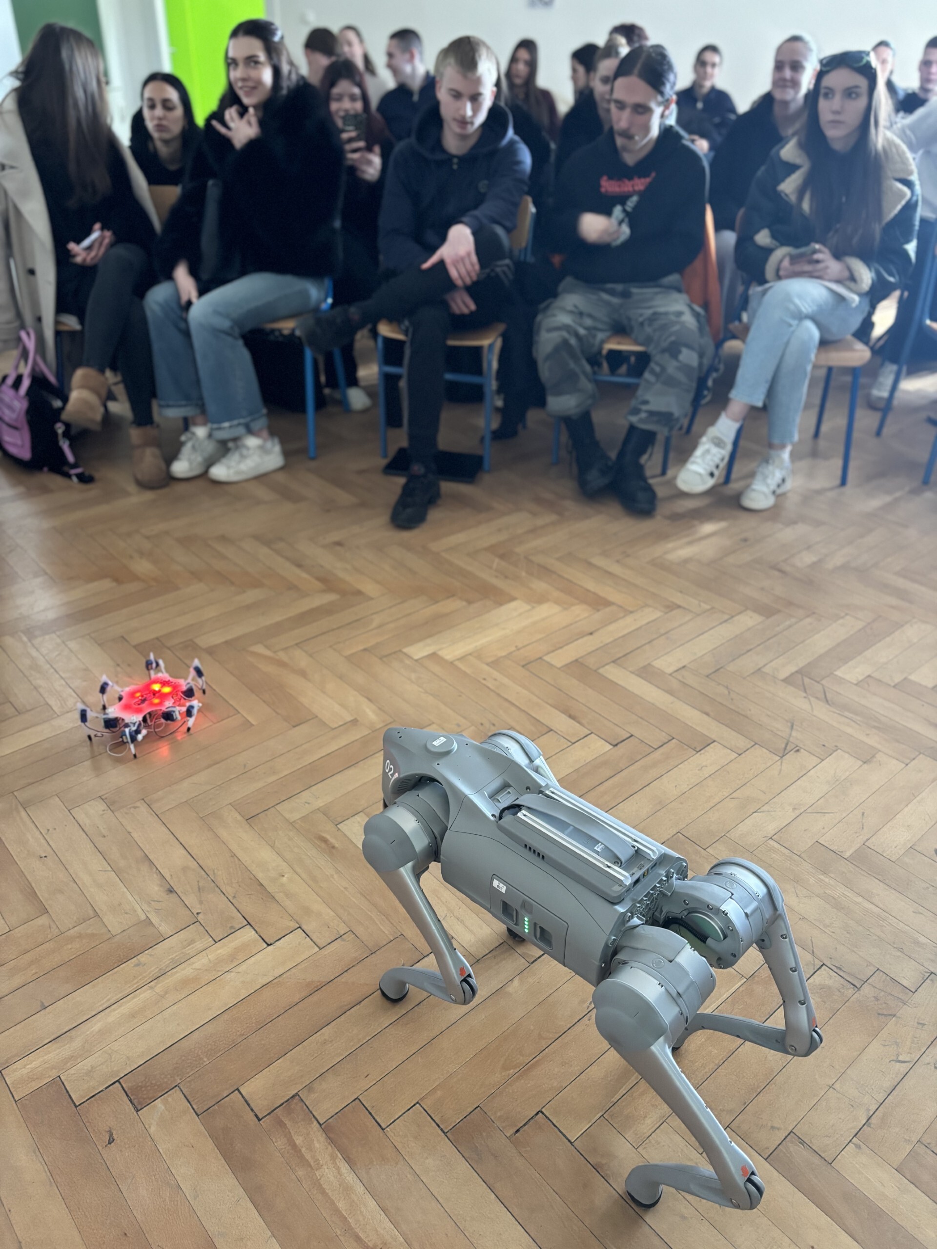 A particularly strong impression was made by the demonstration of a robotic dog, which allowed students to experience first-hand the results of advancements in artificial intelligence. The event concluded with a short interactive quiz in which the students participated, further reinforcing the knowledge they had acquired.