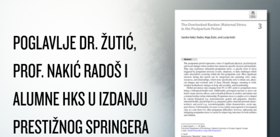 Faculty members of the Department of Psychology at the Catholic University of Croatia, Assoc. Prof. Sandra Nakić Radoš, PhD, and Maja Žutić, PhD, together with CUC alumna Lucija Kolić, Mag. Psych., are co-authors of a chapter in the recently published book Maternal Stress during Pregnancy and Postpartum: Impact on Maternal Health and Fetal Development, issued by Springer Nature. Their chapter, entitled The Overlooked Burden: Maternal Stress in the Postpartum Period, addresses stress in early…