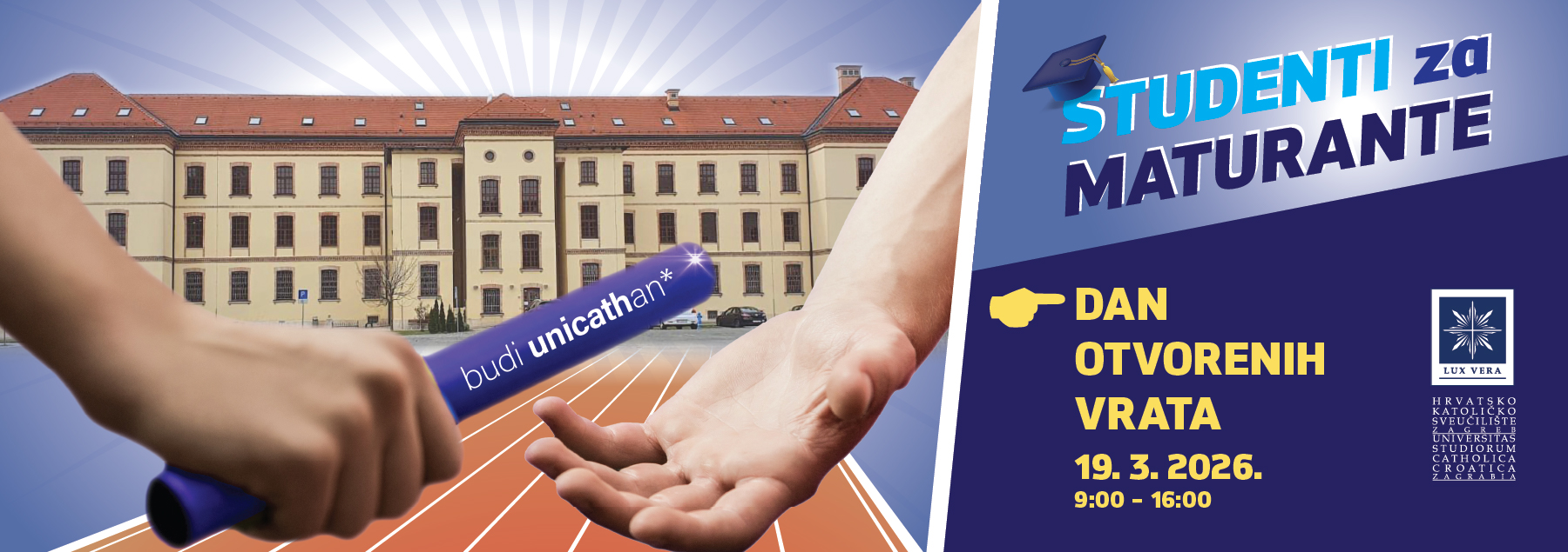Dan otvorenih vrata Hrvatskog katoličkog sveučilišta održat će se u četvrtak, 19. ožujka 2026., od 9 do 16 sati na kampusu u Ilici 244 u Zagrebu.