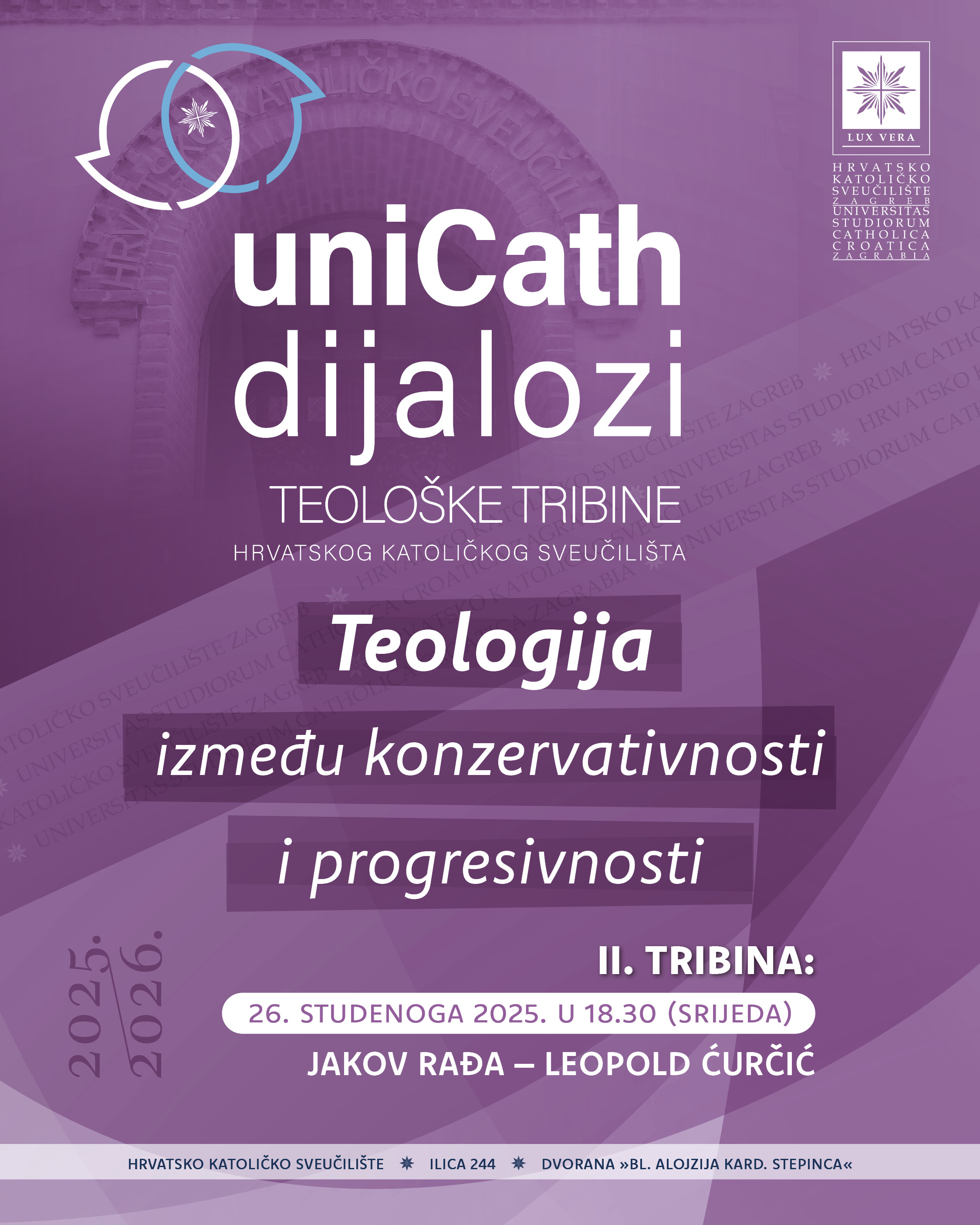 U srijedu 26. studenog 2025. u 18.30 sati u dvorani „Bl. Alojzije kard. Stepinac“ održat će se druga teološka tribina „Unicath dijalozi“.