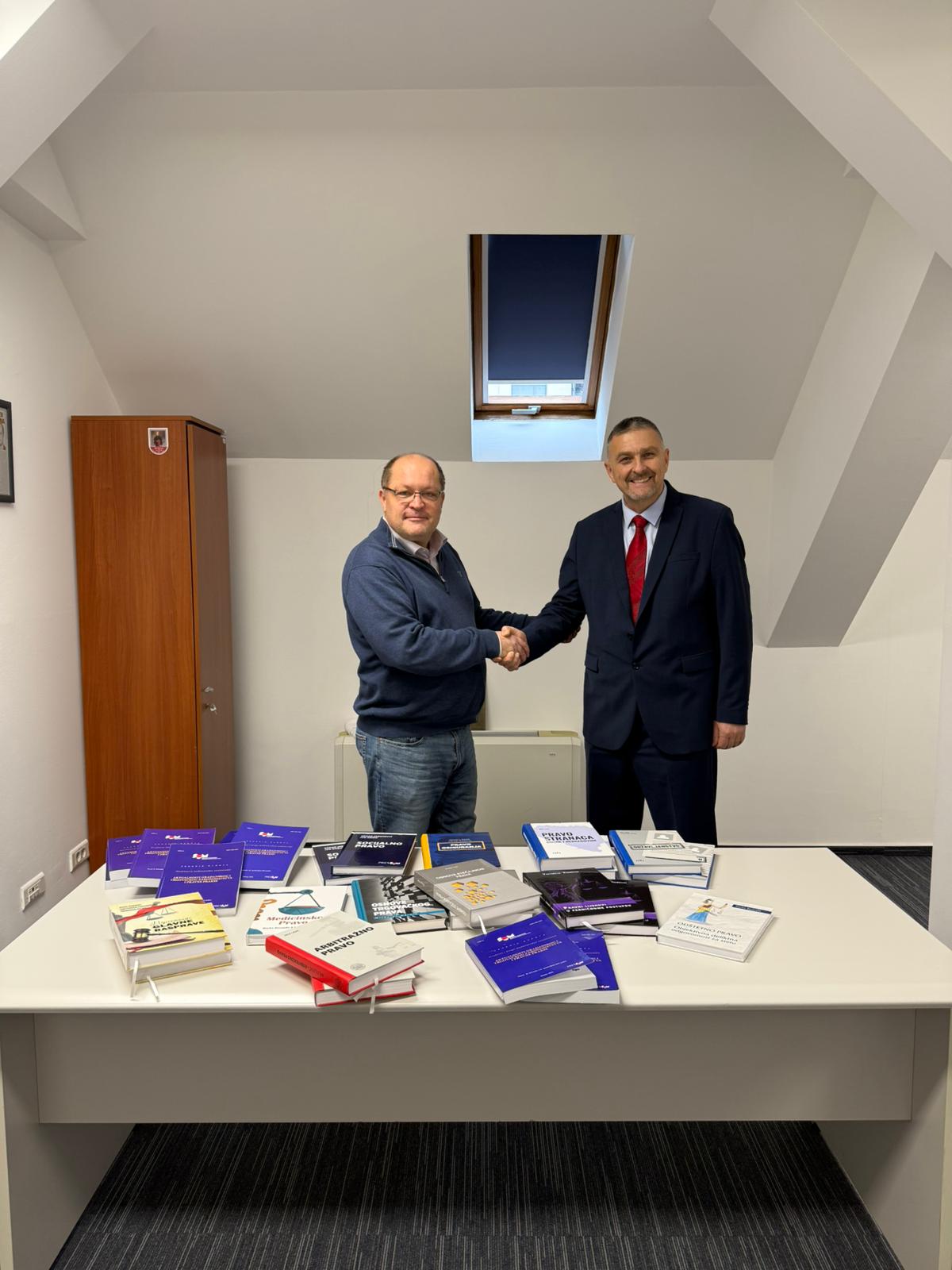 On Friday, 5 December 2025, Prof. Mile Lasić, Ph.D., Full Professor at the Faculty of Law of the University of Mostar, visited the Faculty of Law of the Catholic University of Croatia and presented a donation of books from his personal library to Assoc. Prof. Kristian Turkalj, Ph.D., Dean of our Faculty of Law. The donated books will be added to the collections of the University Library of the Catholic University of Croatia.