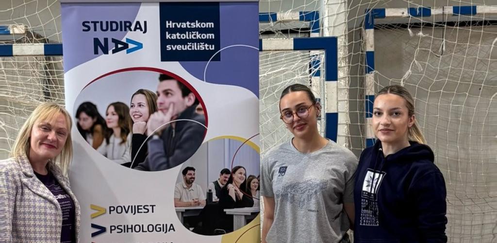 On Wednesday, 29 April 2026, the third Career Day was held at the City Sports Hall in Gospić, organised by the Vocational School Gospić and Gymnasium Gospić. The Catholic University of Croatia was represented by students Zoa Memić and Nina Juretić, accompanied by Assist. Prof. Lana Batinić, PhD, from the University Department of Psychology.
