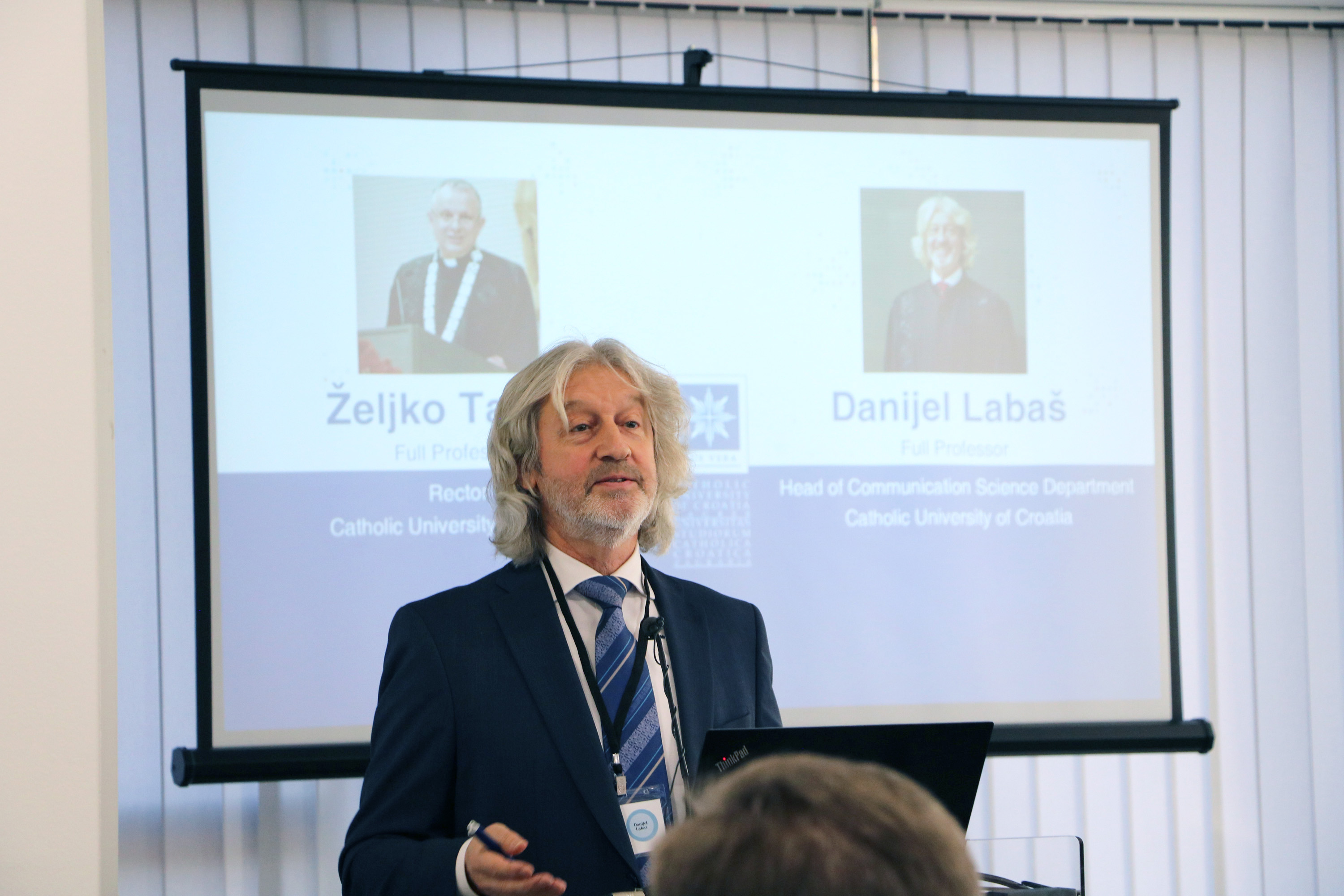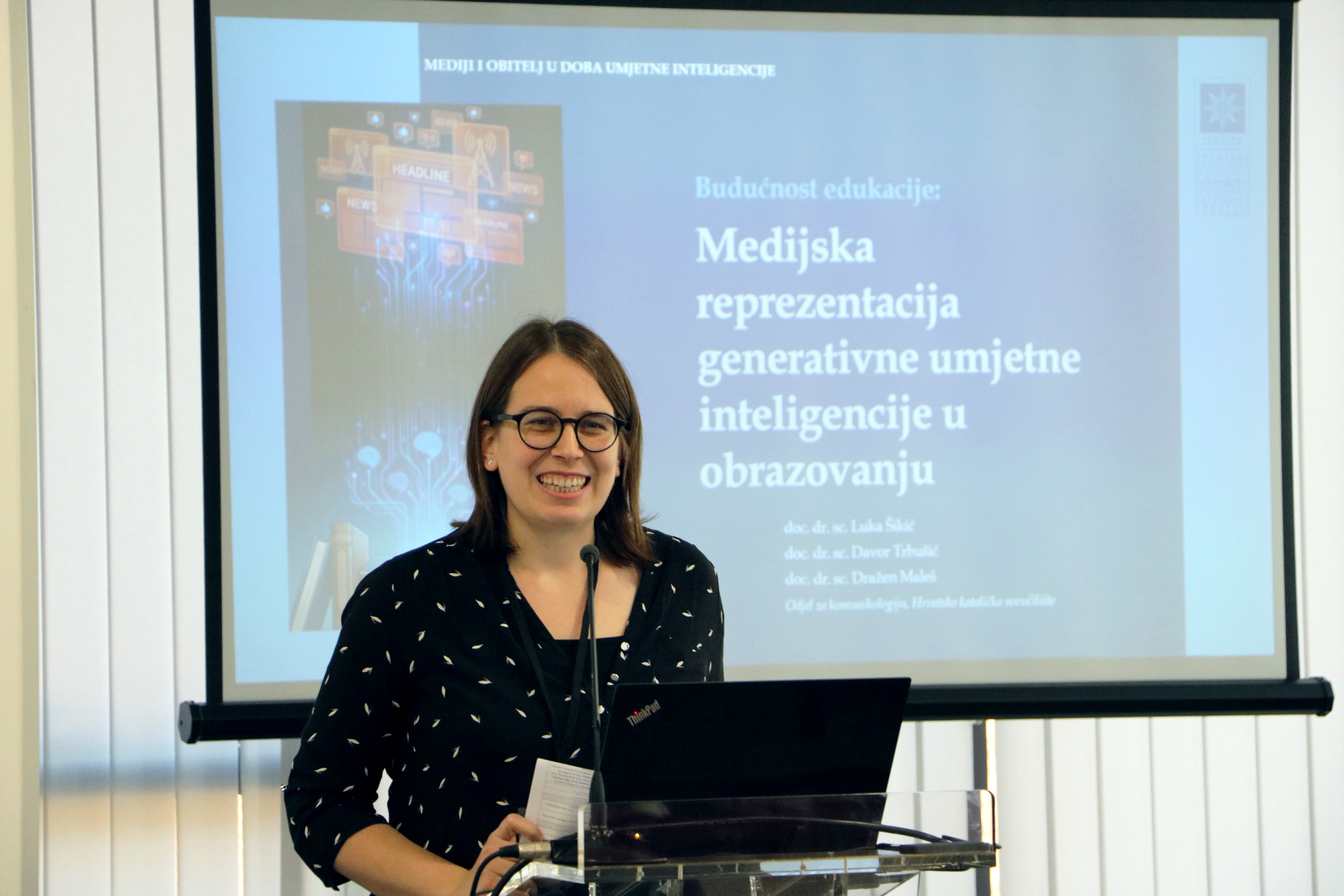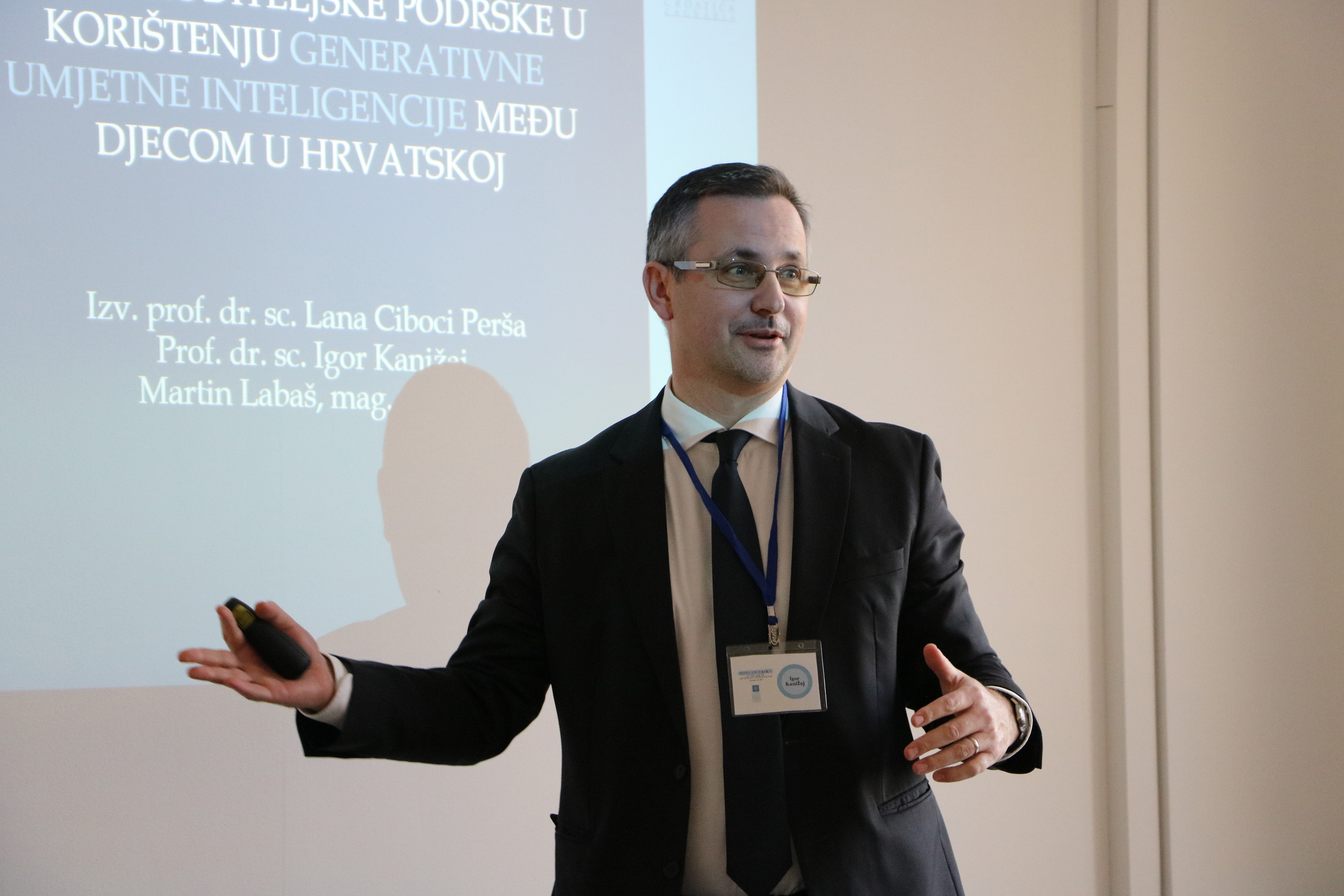 The conference opened with welcome remarks by Rector Prof. Željko Tanjić and Head of the Department of Communication Studies Prof. Danijel Labaš, followed by the keynote lecture of Prof. Renee Hobbs (University of Rhode Island, USA), titled “It's All in the Family: Media Education in the Age of AI”, in which she analysed the role of the family in developing media and algorithmic literacy. Subsequently, Prof. Pier Cesare Rivoltella (University of Bologna) delivered a lecture on the critical evaluation of information and visual content in an AI-driven society.