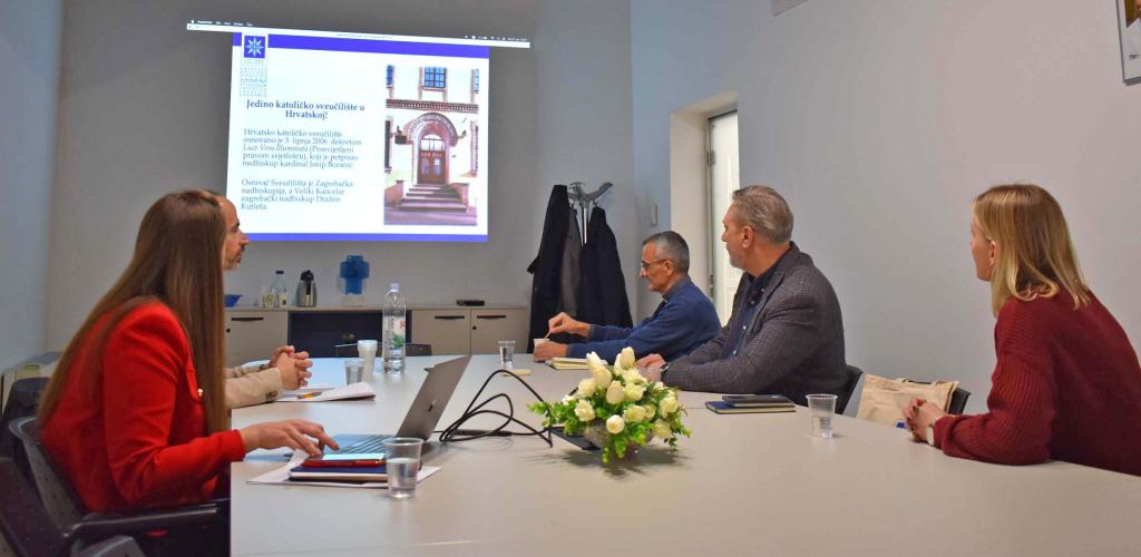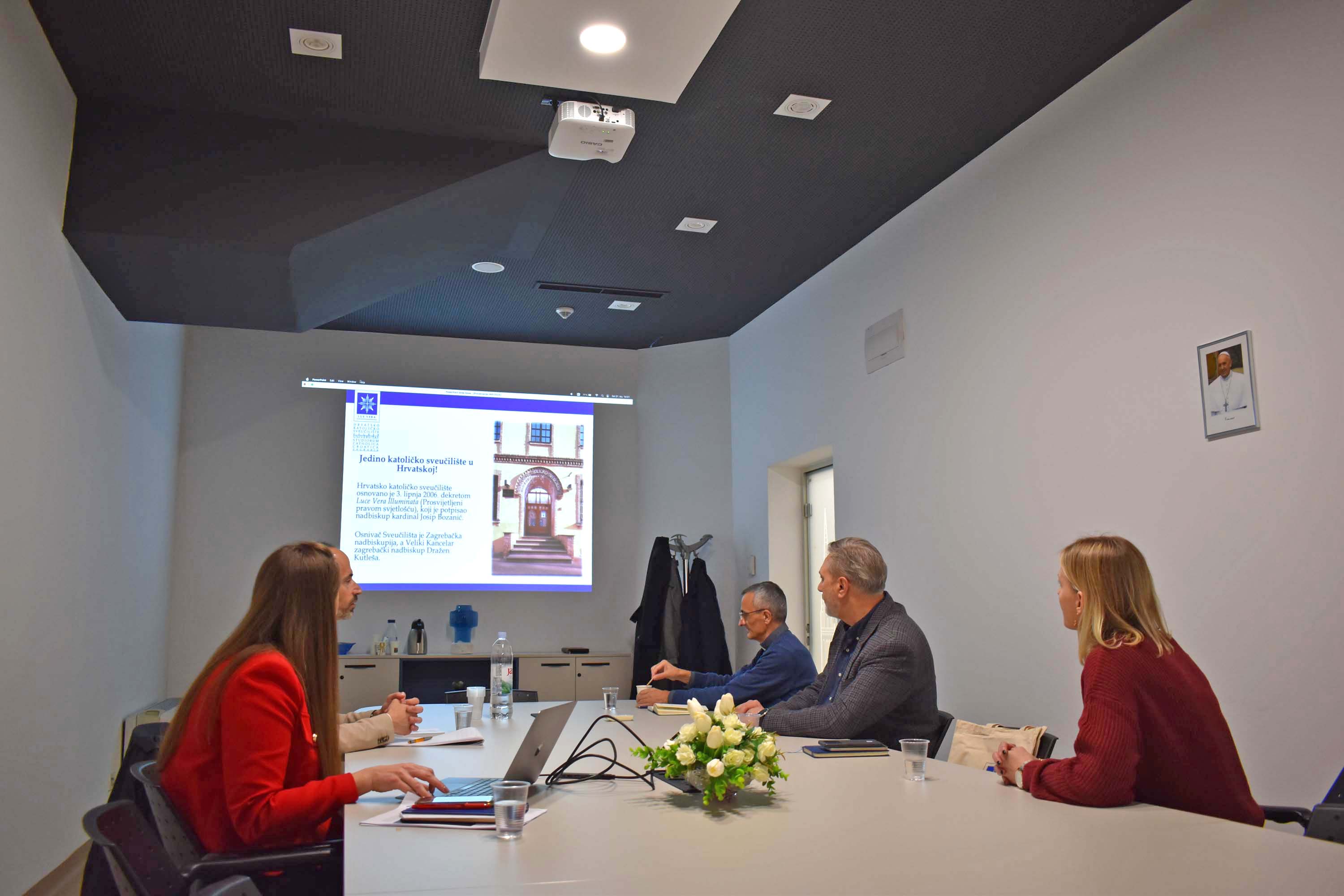 The working meeting was held with prof. Roberto Antolović, PhD, Vice-Rector for science, prof. Anto Crnčević, PhD, Vice-Rector for quality, identity and mission, adviser Ana Marija Ambrušec, mag. hist. and the head of the Department for Mobility Projects, Aleksandra Gečević, mag. soc. et mag. edu soc. from the Service for Strategic Planning, Development and Projects.