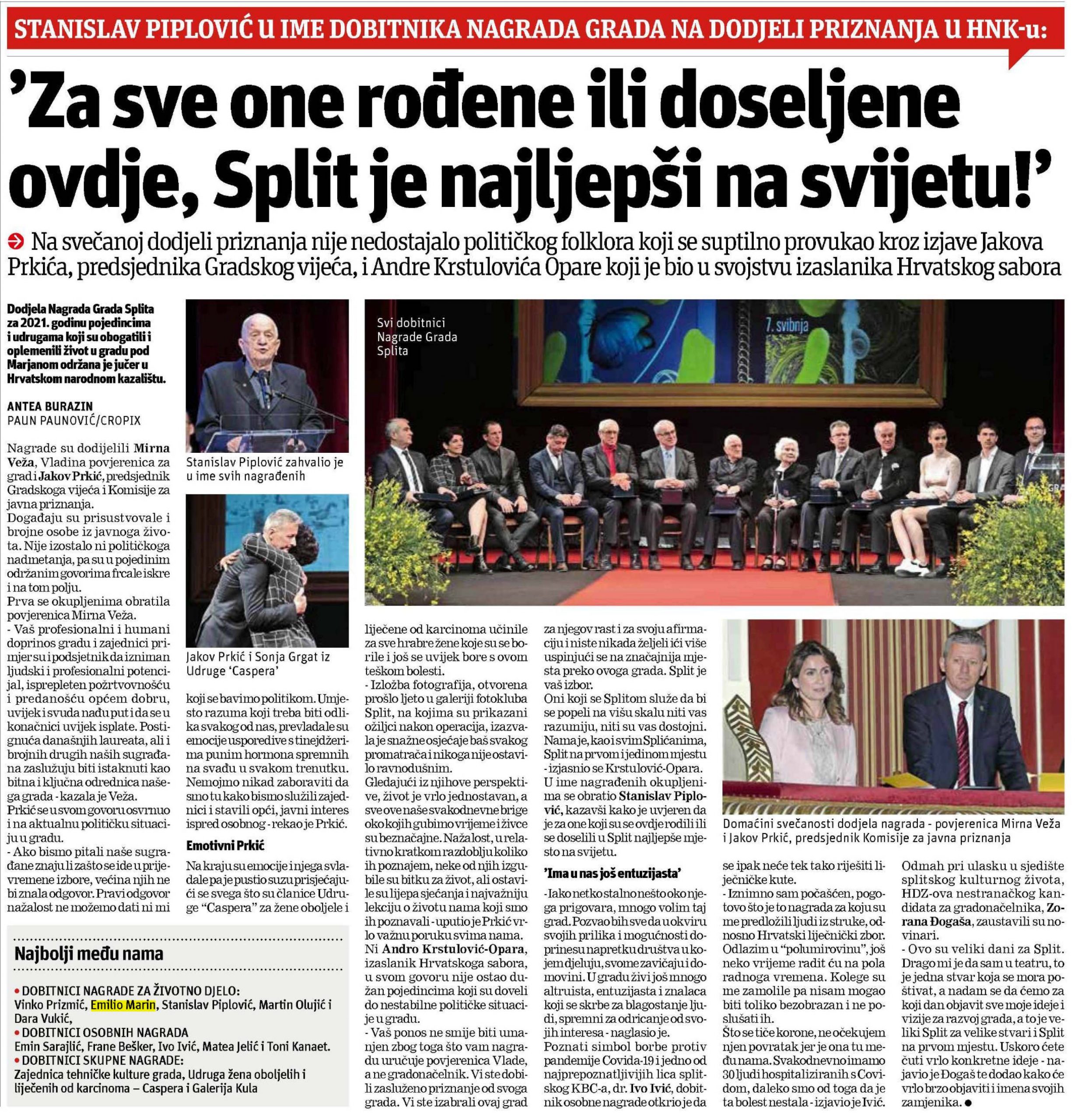 Emiliju Marinu Nagrada Grada Splita za životno djelo