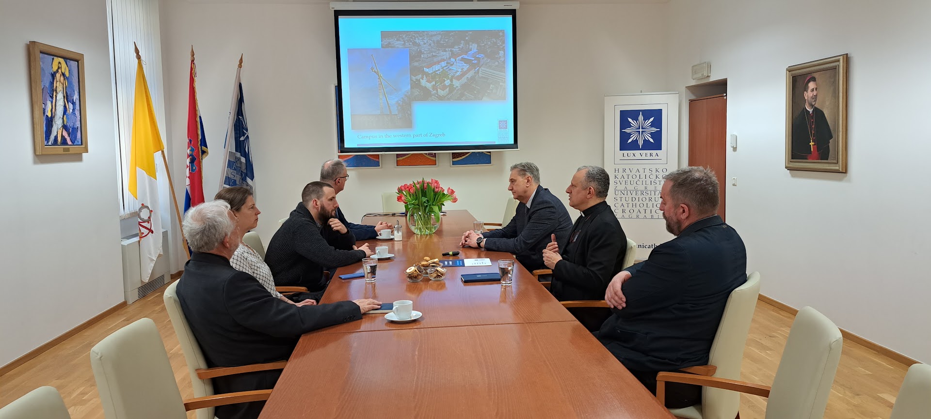 Goste iz Amerike primili su rektor prof. dr. sc. Željko Tanjić s prorektorima. Rektor Tanjić je goste upoznao s razvojem i planovima Hrvatskog katoličkog sveučilišta i zahvalio im na podršci koju Američka biskupska konferencija pruža već niz godina našem Sveučilištu.