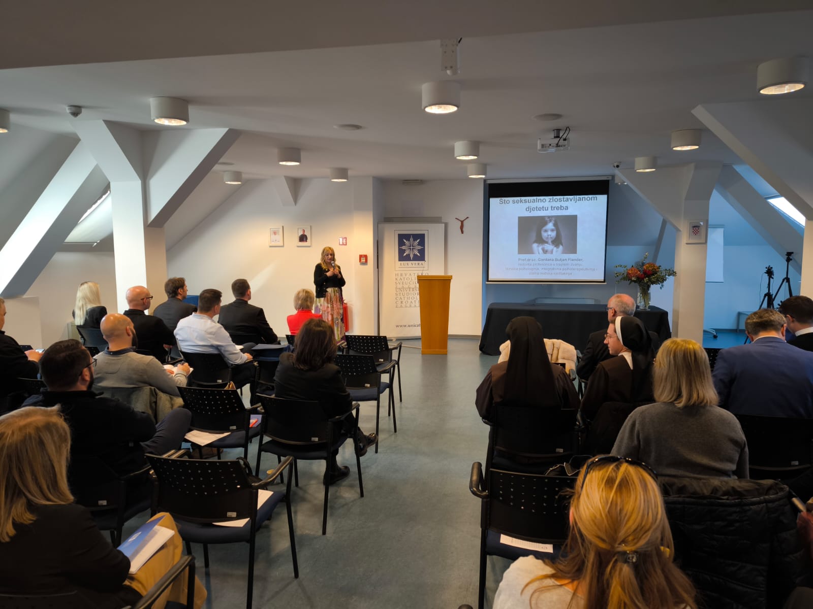 Prof. Buljan Flander je u predavanju publici približila svijet osoba, djece, koja su preživjela zlostavljanja – dragocjena su svjedočanstva, zahtjevna za slušati, ali potom i za djelovati. Takav pristup je iznimno dragocjen zbog prisutnosti osoba i iskustava koji su bogati praksom te je iznimno važna praksa povezivanja s drugim institucijama.