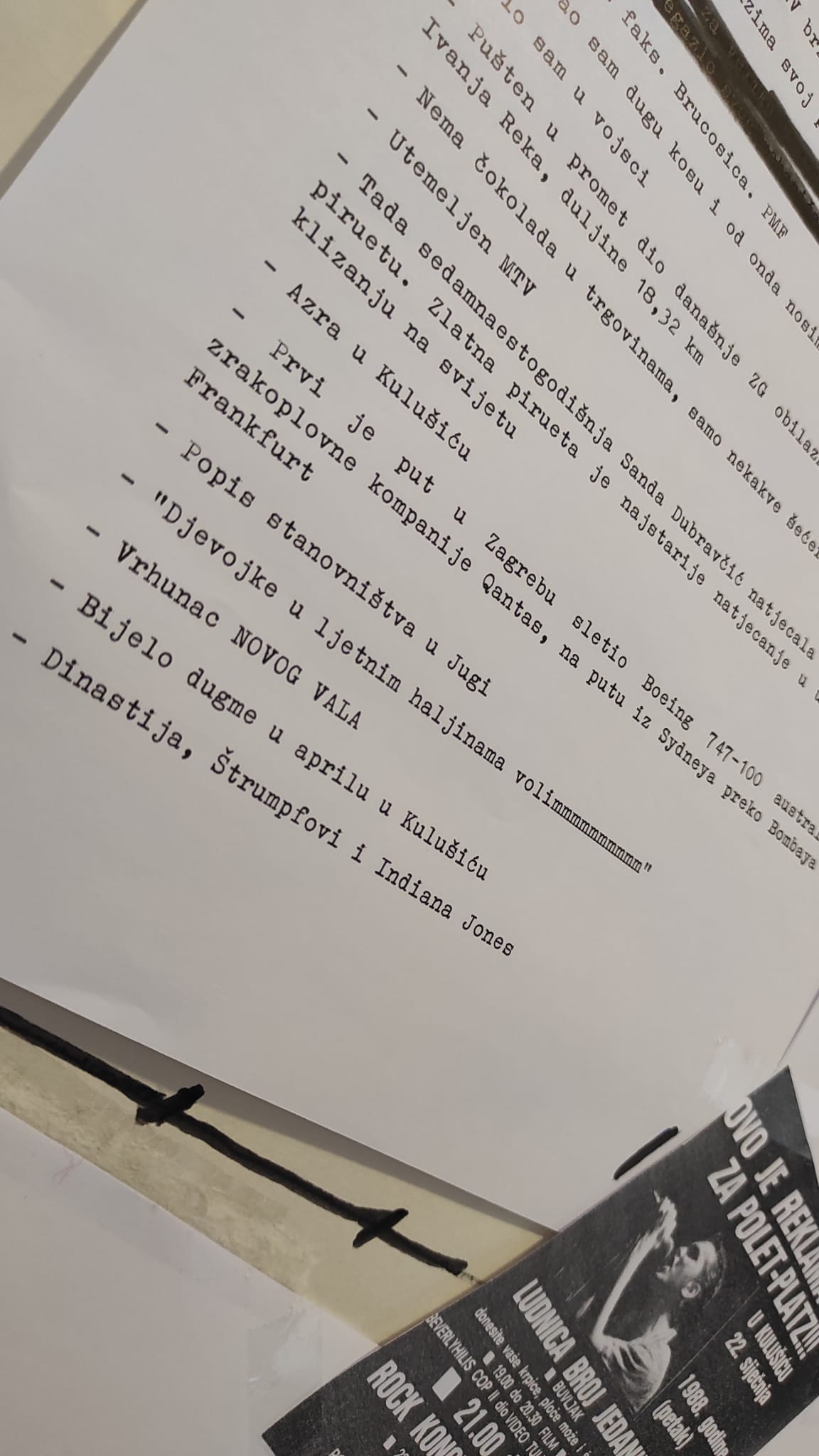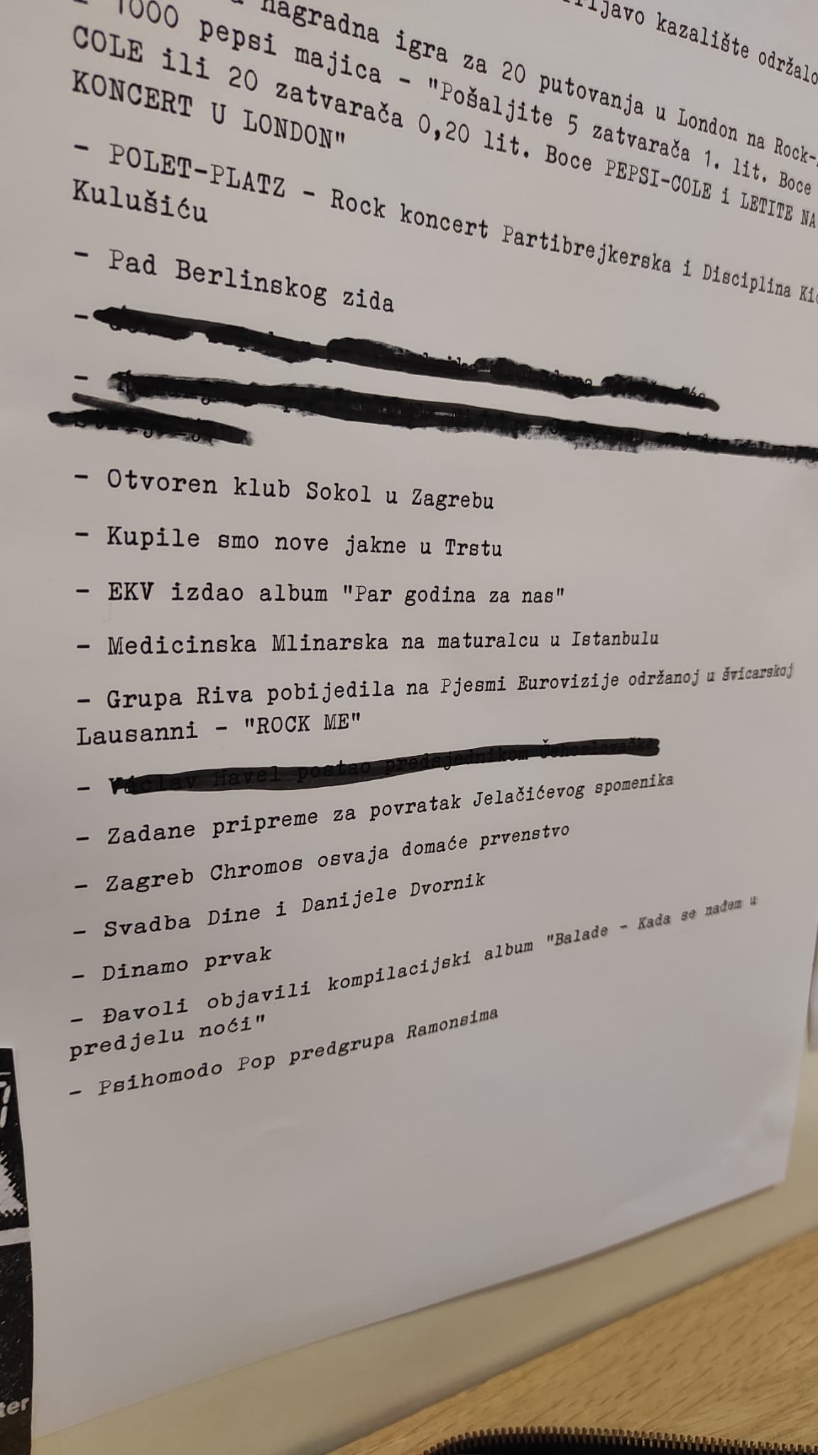 U "središtu" izložbe se nalazi zagrebački novi val popraćen glavnim albumima 1980., 1981. te 1982.: iz 1980.: Azra, Crno bijeli svijet, Doživjeti stotu i Vruće igre; iz 1981.: Novo! Novo! Novo!... Još jučer smo na filmu a sada i u vašoj glavi/ Film u Kulušiću Live, Sunčana strana ulice, Haustor i Heroj ulice; te iz 1982.: Zona sumraka, Ravno do dna i Filigranski Pločnici, s tekstovima o tijeku snimanja, promociji albuma te QR kodovima za slušanje albuma. Uz albume, dio prostora uređen je kao redakcija/čitaonica časopisa Polet gdje su izloženi različiti brojevi Poleta. Uz njih, izloženi su i predmeti u vitrinama iz 1980-ih pokraj kojih se nalazi "mali kutka" Zvečke i fotografije nastale u Masarykovoj ulici koje su ustupili fotograf Goran Pavelić Pipe i administratori Facebook grupe "Osamdesete u Zagrebu". Drugi dio izložbe prikazuje priče otisnute starinskom garniturom štamparskih slova iz tog vremena o izlascima u kultne zagrebačke klubove i kafiće Kulušić, Saloon, Lapidarij, Jabuka i druge, okupljanjima i glasovima koji su odzvanjali Masarykovom ulicom.