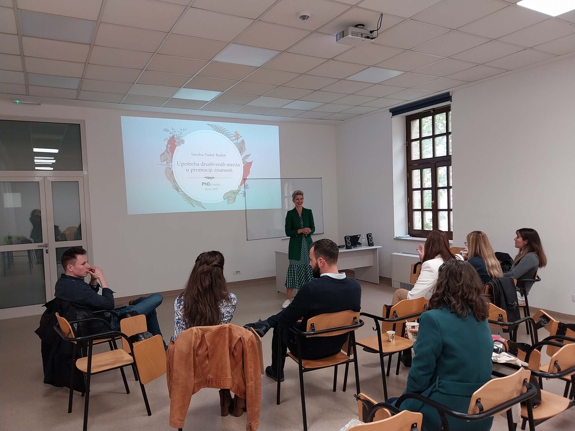 Izv. prof. dr. sc. Sandra Nakić Radoš je u srijedu 19. travnja 2023. sudjelovala na PhD.meetupu gdje je govorila o temi Upotrebe društvenih mreža u promociji znanosti. Prezentirala je razloge za aktivnost na društvenim mrežama, koje su društvene mreže najzastupljenije te kako ih možemo koristiti u svrhu promocije znanosti. Posebnu pažnju posvetila je Twitteru kao jednoj od najkorištenijih mreža u svrhu dijeljenja novosti vezanih uz znanost. Predavanje je potaknulo vrlo konstruktivnu raspravo za koju vjerujemo kako će se nastaviti još tjednima koji slijede. Zahvaljujemo izv. prof. dr. sc. Nakić Radoš na gostovanju te na izvrsnom i inspirativnom predavanju.