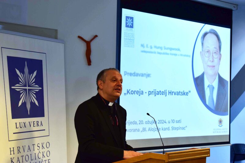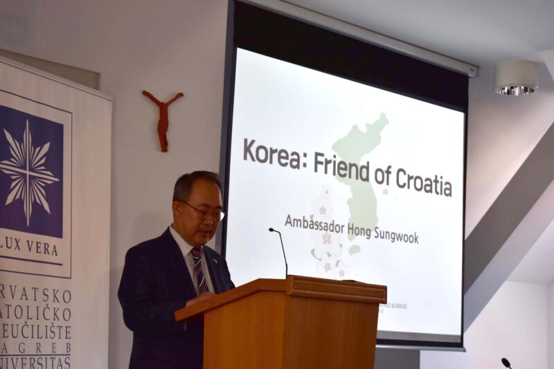 U srijedu 20. ožujka 2024. u dvorani „Blaženi Alojzije kard. Stepinac“ na Hrvatskom katoličkom sveučilištu Nj.E. g. Hong Sungwook, veleposlanik Republike Koreje u Hrvatskoj održao je predavanje „Koreja - prijatelj Hrvatske“.