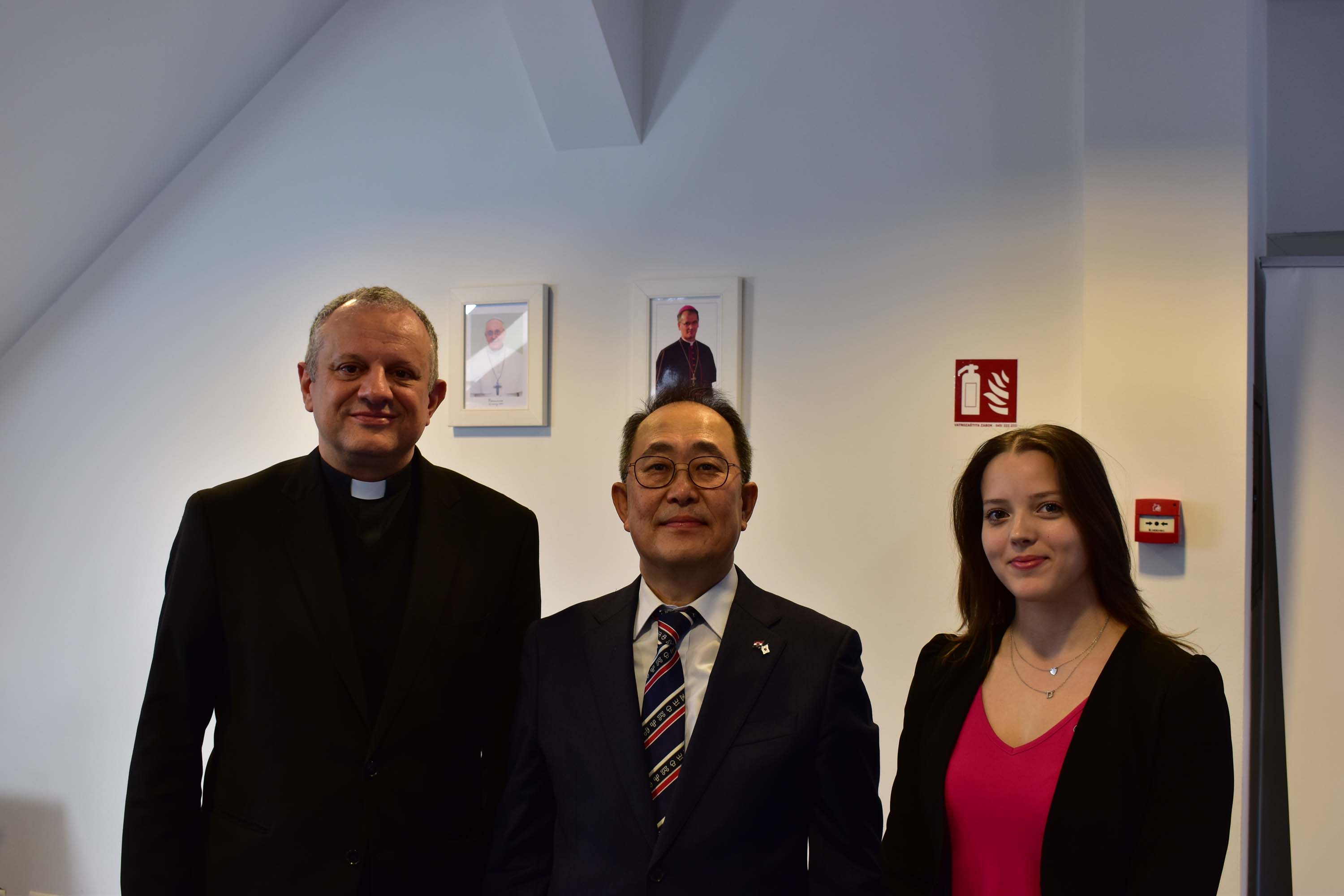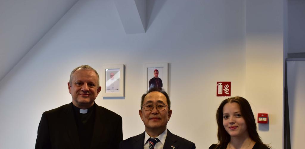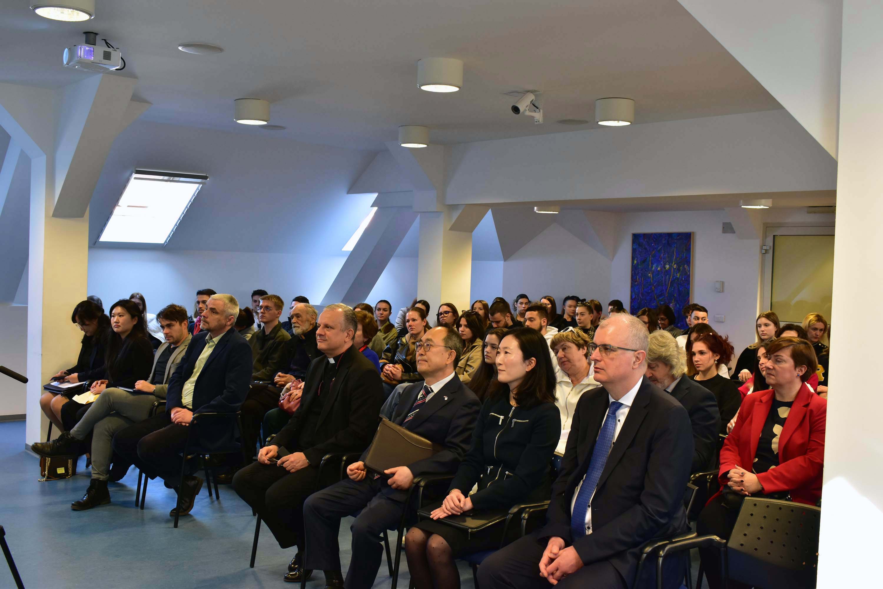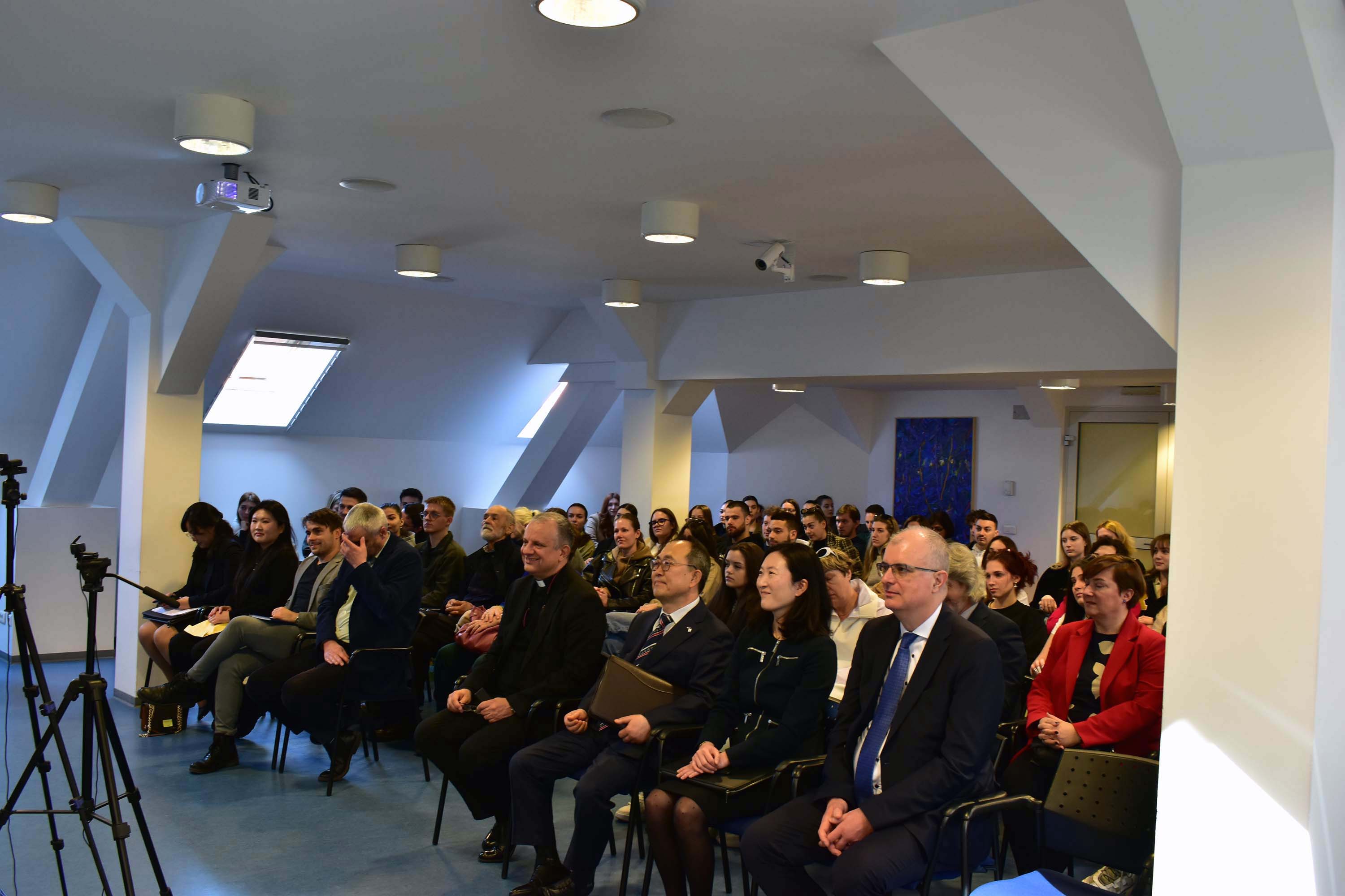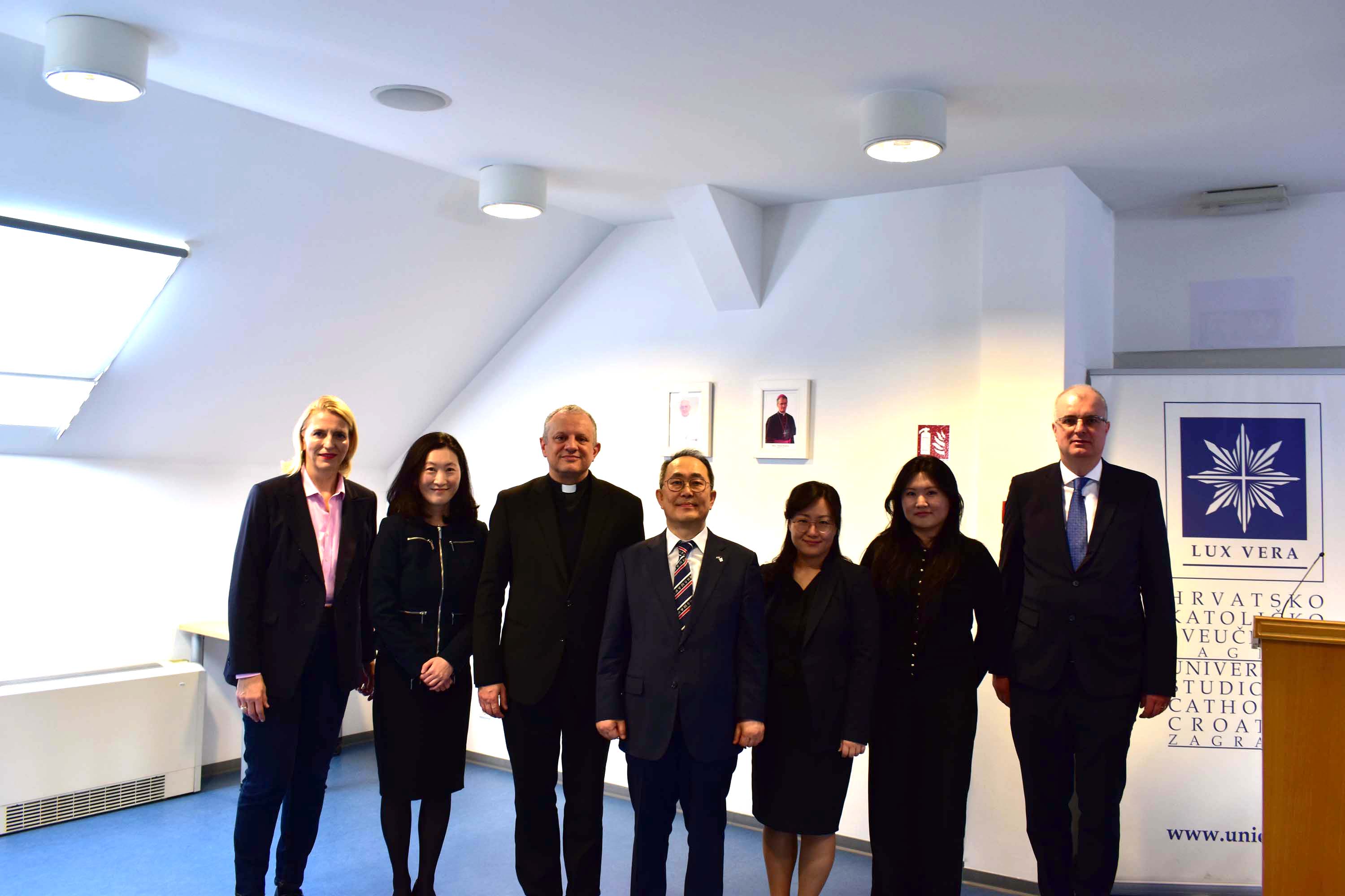 U ime Hrvatskog katoličkog sveučilišta okupljenima se obratio rektor prof. dr. sc. Željko Tanjić, koji je istaknuo kako Hrvatsku i Koreju povezuje sve više elemenata: "Koreja je prava industrijska velesila čemu i mi svjedočimo, budući da su Kia i Hyundai uložili preko 80 milijuna eura u tvrtku Rimac, a Korejce mi u Zagrebu znamo kao drage goste, turiste, a i naša župa svetog Blaža svake nedjelje ima organiziranu misu za njih, na engleskom jeziku. U Hrvatskoj od Koreje možemo zasigurno puno toga naučiti. Obrazovanje u Koreji je jako važno i u njega se puno ulaže. Sretni smo da u zemlji u kojoj su 11% stanovnika katolici djeluje čak 8 katoličkih sveučilišta od kojih se neka nalaze na Šangajskoj listi među 500 najboljih na svijetu", istaknuo je rektor.