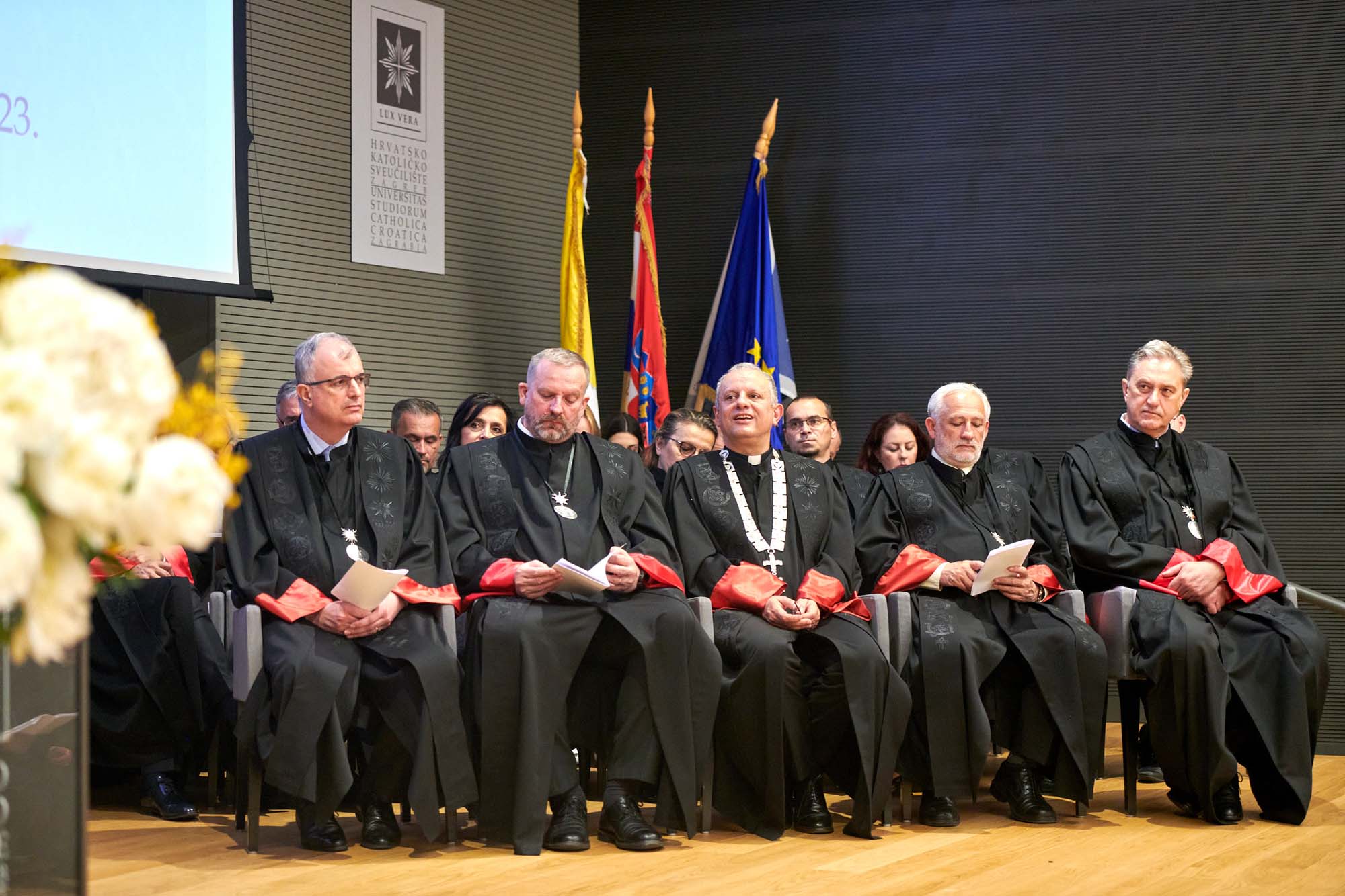 Svečanom akademskom činu po prvi put je prisustvovao novi Veliki kancelar Hrvatskog katoličkog sveučilišta mons. Dražen Kutleša, zagrebački nadbiskup, zajedno s kardinalom Josipom Bozanićem. Svečanosti je također prisustvovao apostolski nuncij u Republici Hrvatskoj mons. Giorgio Lingua te hrvatski nadbiskupi i biskupi monsinjori Đuro Hranić i Mate Uzinić, Milan Zgrablić, Antun Škvorčević, Vjekoslav Huzjaka, Ivica Petanjek, Jure Bogdan, Zdenko Križić, Tomislav Rogić, Božo Radoš, Ivan Šaško i Mijo Gorski te generalni tajnik HBK-a preč. Krunoslav Novak.