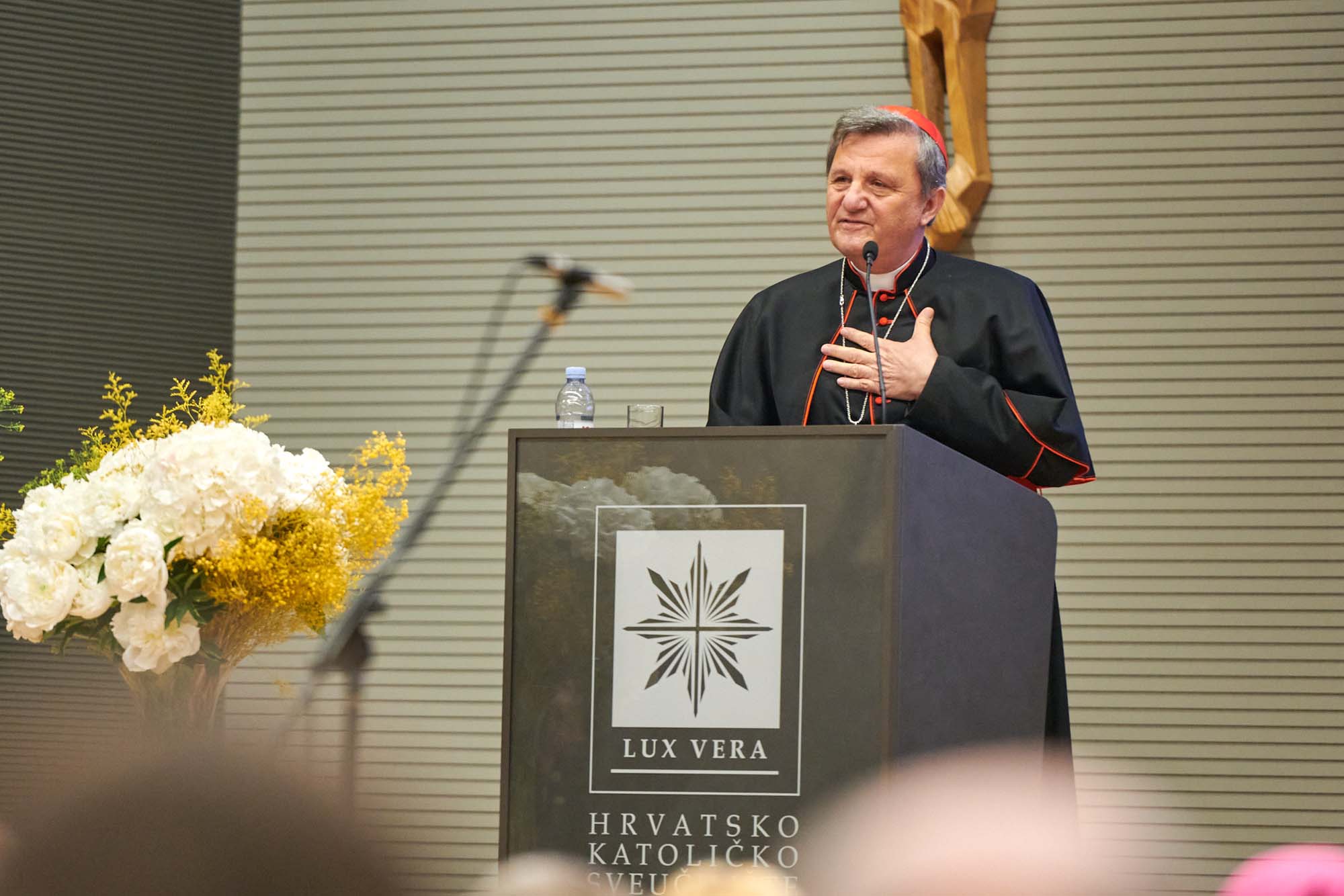 U uvodu je kardinal Grech svima prenio pozdrave i blagoslov Svetoga Oca kojeg je baš posjetio prethodnih dana, spomenuvši mu da odlazi u Hrvatsku te najavio da bi poučen svojim iskustvom kao glavnim tajnikom Sinode u govoru želio promišljati o participirajućim procesima i, konkretnije, o pitanju suglasnosti, neophodnom elementu svakoga društva pa stoga i Crkve, a ne samo demokratskih sustava.