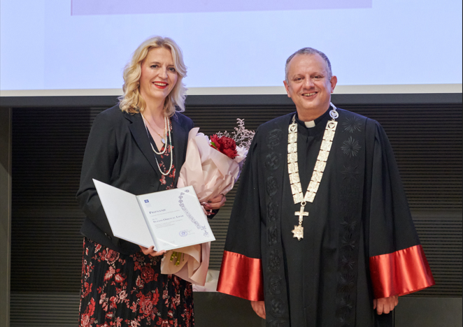 Na kraju svečanosti dodijeljene su Rektorove nagrade studentima za akademsku godinu 2021./2022. Dobitnica Rektorove nagrade za izvrsnost tijekom prijediplomskog sveučilišnog studija je Katarina Užarević, prvostupnica psihologije. Za izvrsnost tijekom diplomskog sveučilišnog studija Rektorovu nagradu dobila je Sara Jelovčić, magistra psihologije. Ove godine dodijeljene su dvije nagrade za doprinos sveučilišnoj zajednici. Dobitnik Rektorove nagrade za doprinos razvoju sveučilišne zajednice u akademskoj godini 2021./2022. je Filip Mustapić, student druge godine sveučilišnog diplomskog studija Komunikologija te Lara Fiolić, studentica druge godine sveučilišnog diplomskog studija Psihologija. Za promicanje katoličkog identiteta Sveučilišta Rektorovu nagradu dobio je Kristijan Jalšić, student prve godine sveučilišnog diplomskog studija Komunikologija, a Rektorovu nagradu za studentski istraživački rad danas primila je Ana Plantaš, studentica druge godine sveučilišnog diplomskog studija Psihologija.