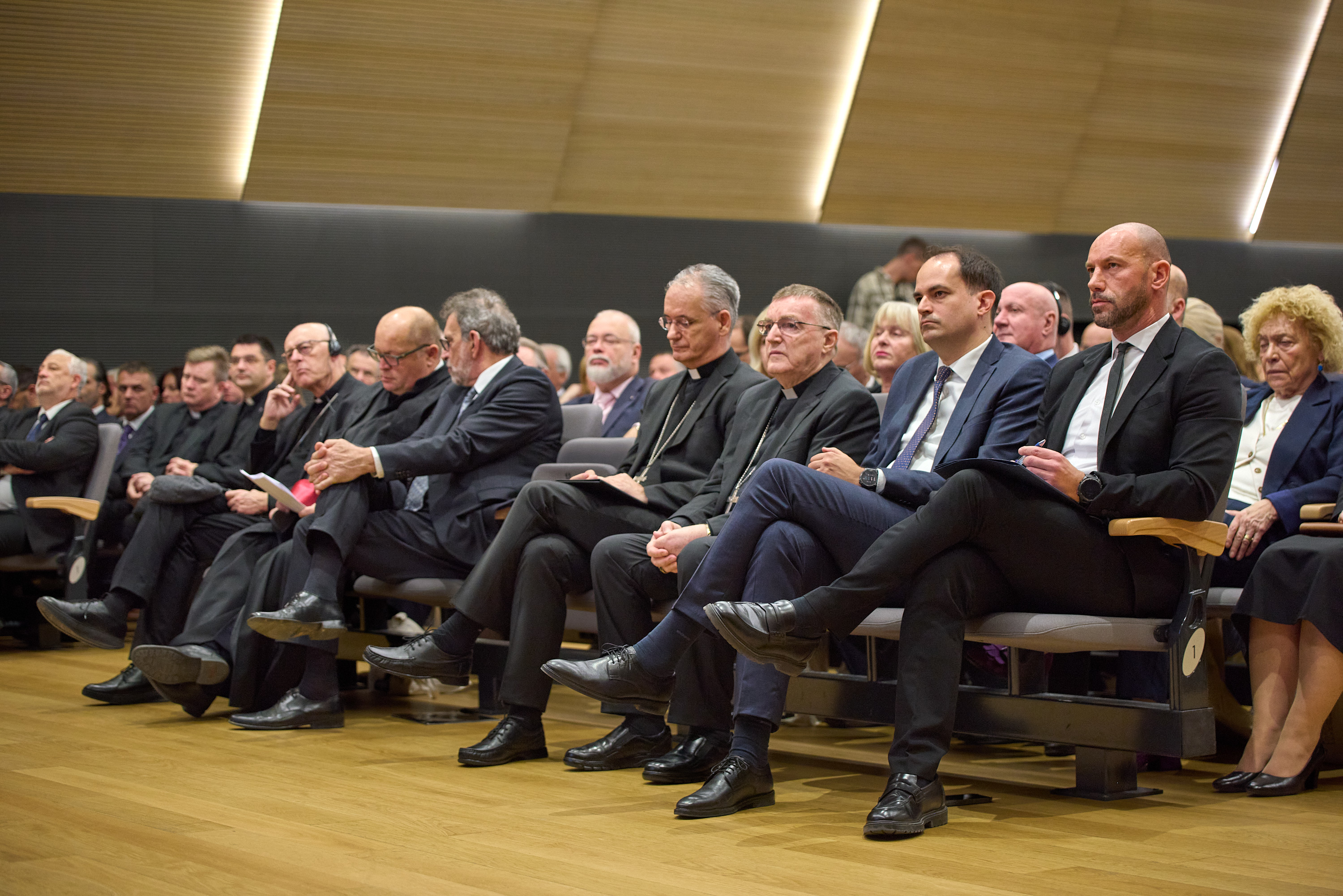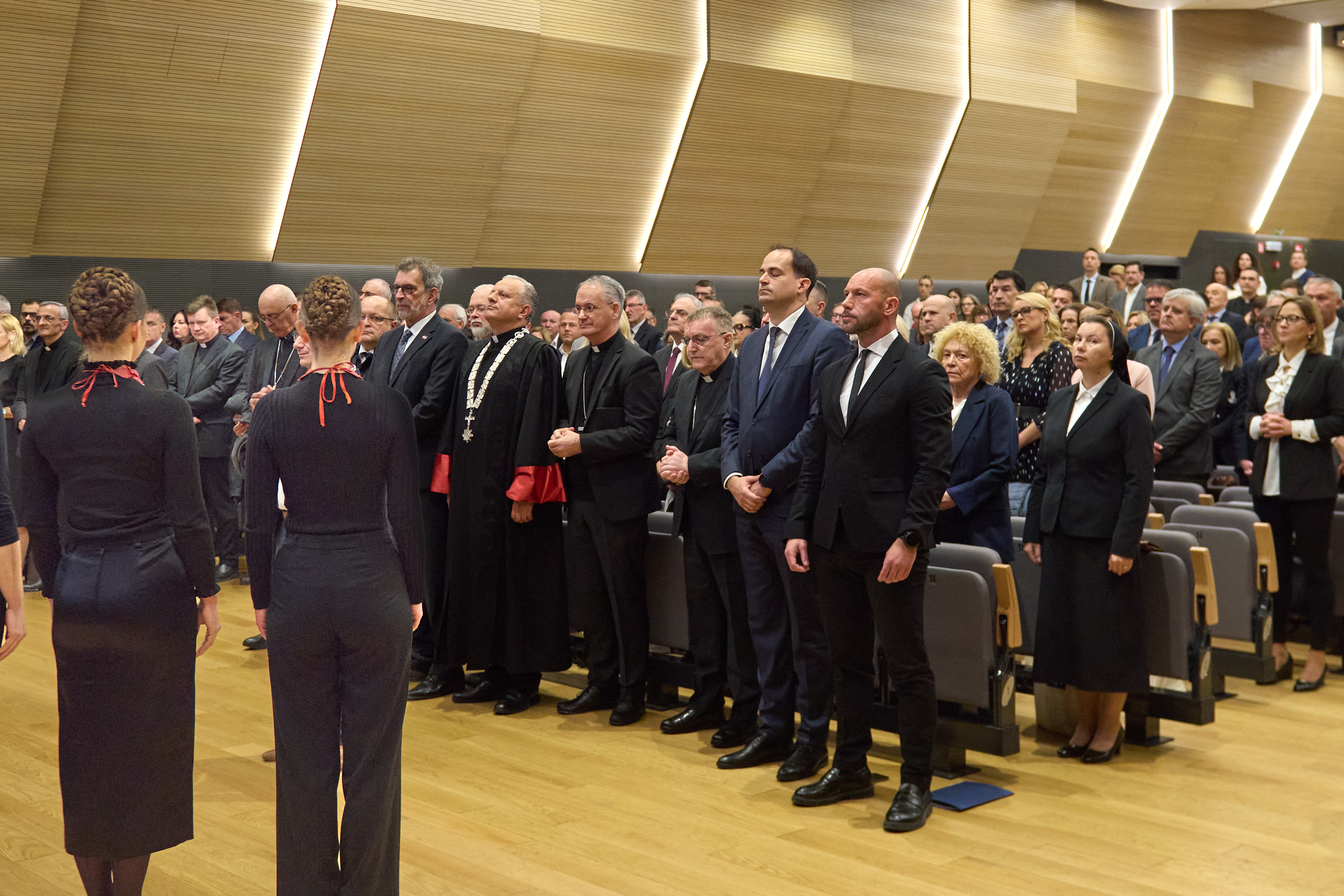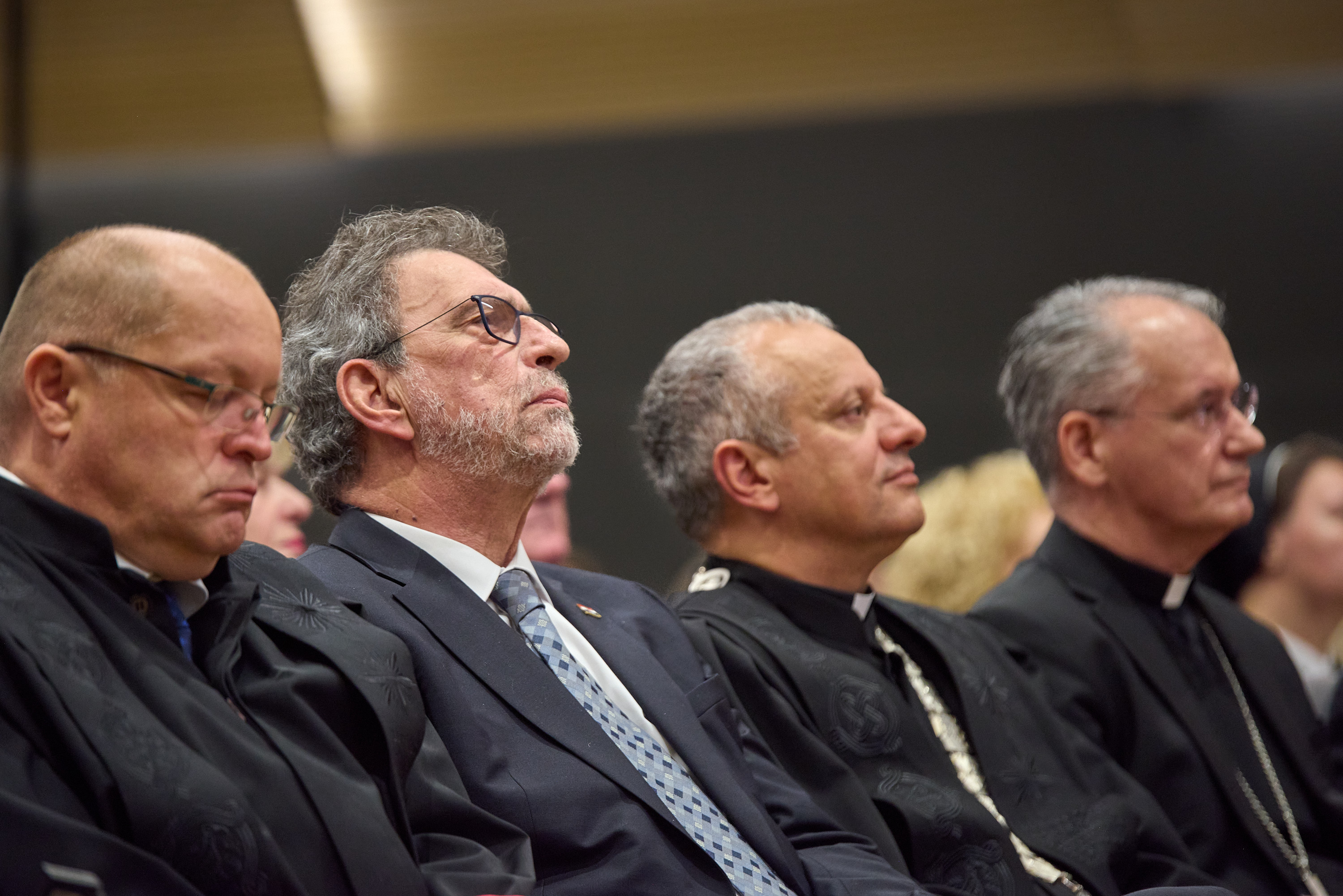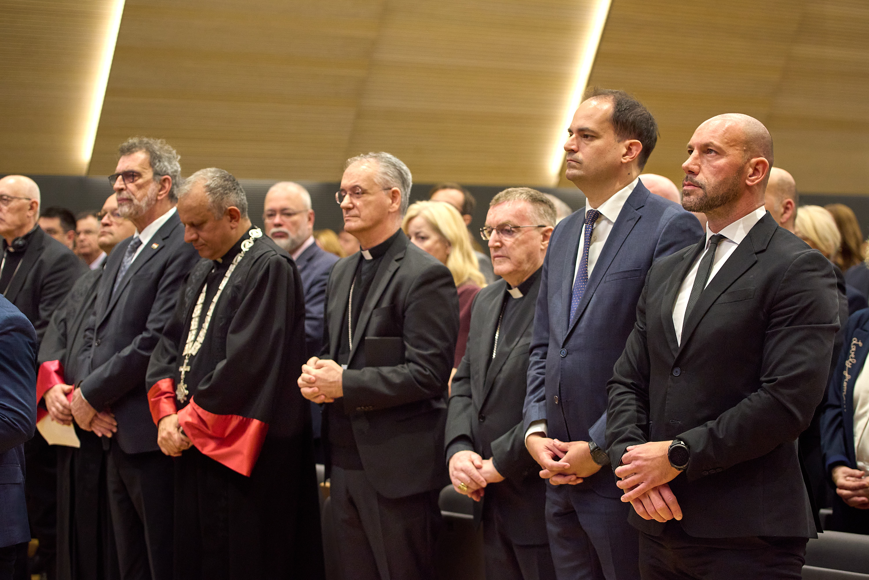 Svečanost je nastavljena u Auli magni HKS-a gdje su se okupili brojni uzvanici: mons. Dražen Kutleša, zagrebački nadbiskup i metropolit te Veliki kancelar našeg Sveučilišta, kardinal Josip Bozanić, apostolski nuncij u Republici Hrvatskoj Nj.E. Giorgio Lingua, doc. dr. sc. Krunoslav Novak, generalni tajnik Hrvatske biskupske konferencije, ministar znanosti, obrazovanja i mladih prof. dr. sc. Radovan Fuchs, kao izaslanik predsjednika Vlade Republike Hrvatske, dr. sc. Ivan Malenica kao izaslanik predsjednika Hrvatskog sabora, ministar pravosuđa, uprave i digitalne transformacije Damir Habijan, v.d. predsjednika Vrhovnog suda RH Gordana Jalšovečki, savjetnik Predsjednika Republike za vanjsku i europsku politiku Neven Pelicarić, predsjednik Hrvatske akademije znanosti i umjetnosti akademik Velimir Neidhart, njihove Ekselencije veleposlanici Mađarske, Bosne i Hercegovine, Litve, Španjolske, predsjednica Europske komisije, suci Ustavnog i Vrhovnog suda, Visokog trgovačkog suda te Županijskih i Općinskih sudova, državne tajnice dr. sc. Tereza Rogić Lugurić i Margareta Mađetić te brojni drugi pravnici, odvjetnici, javni bilježnici, dekani pravnih fakulteta, profesori, predstavnici nadbiskupija, poslovnog svijeta, umjetnosti, kulture i medija.