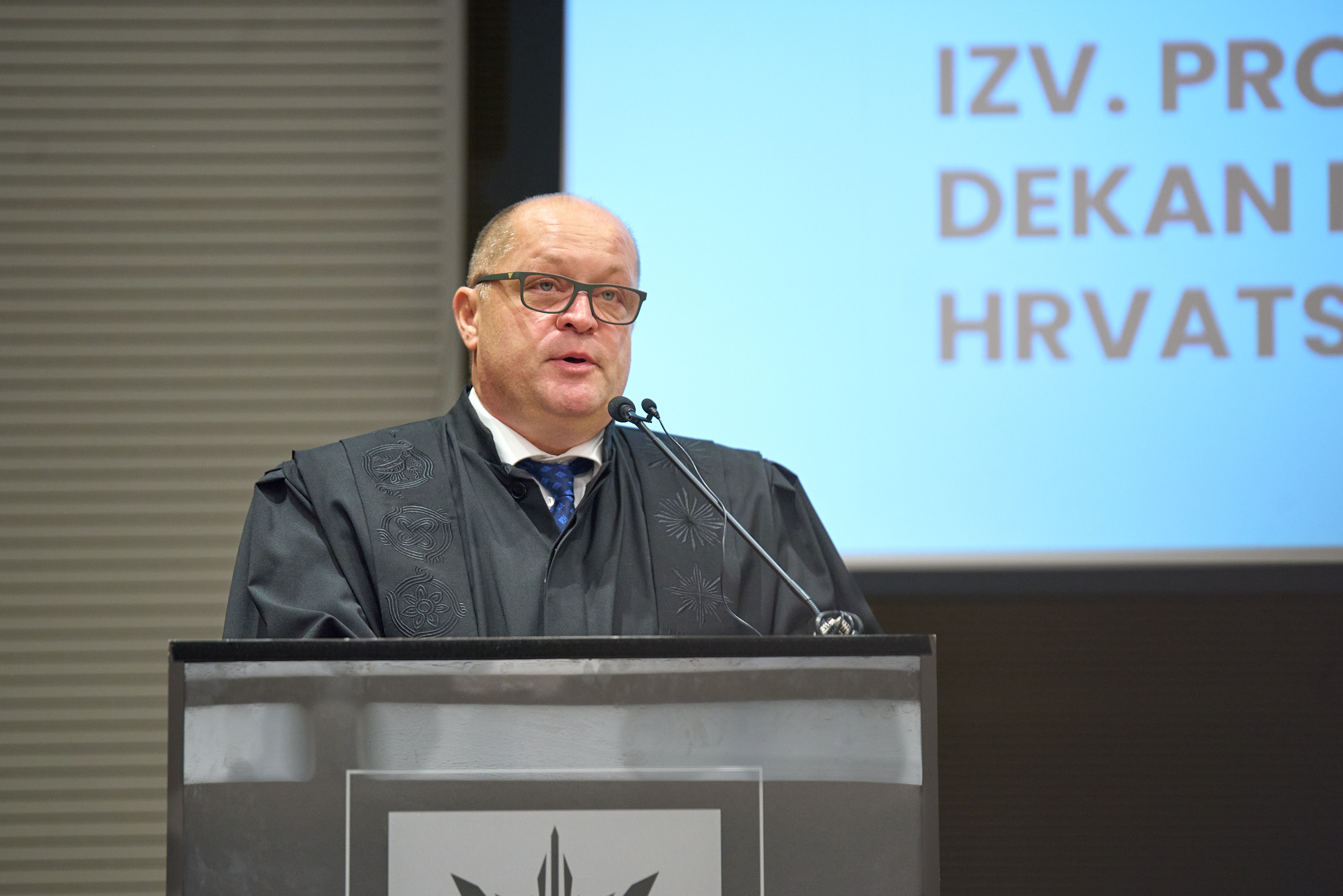 Uvodno se obratio rektor prof. dr. sc. Željko Tanjić: "U već gotovo dvadesetogodišnjem postojanju Hrvatsko katoličko sveučilište svjedočilo je mnogim važnim i znakovitim slavljima koja su obilježila njegovo nastajanje, razvoj i djelovanje u Crkvi i hrvatskom društvu. Jedno od takvih slavlja je i ovo današnje, proslava prvoga Dana novoosnovanog Pravnog fakulteta koje je ove godine upisalo svoje prve studente. Poznato je da su pravni fakulteti među najcjenjenijim i prvim sastavnicama mnogih pa i katoličkih sveučilišta, poznato je i koliko je kanonsko pravo Crkve utjecalo na razvoj pravnih znanosti u Hrvatskoj, sve do njegovog izbacivanja sa Sveučilišta u mračno doba komunizma. Pripreme za pokretanje studija prava koje su urodile plodom započele su 2020. i dovele su do toga da je 11. studenog 2024. Agencija za znanost i visoko obrazovanje izdala Sveučilištu dopusnicu za izvođenje studija, a već 12. studenoga 2024. Senat Hrvatskog katoličkog sveučilišta donio je odluku o osnivanju Pravnog fakulteta. Iza ovih nekoliko šturih rečenica krije se rad, zalaganje, požrtvovnost i ljubav prema Sveučilištu, pravnim znanostima mnogih dionika, mnogih među vama. Svima koji su dali svoj doprinos, zahvalan ponajprije dragome Bogu na daru njegove blizine, izričem u ime Sveučilišta veliku hvalu", rekao je rektor Tanjić.