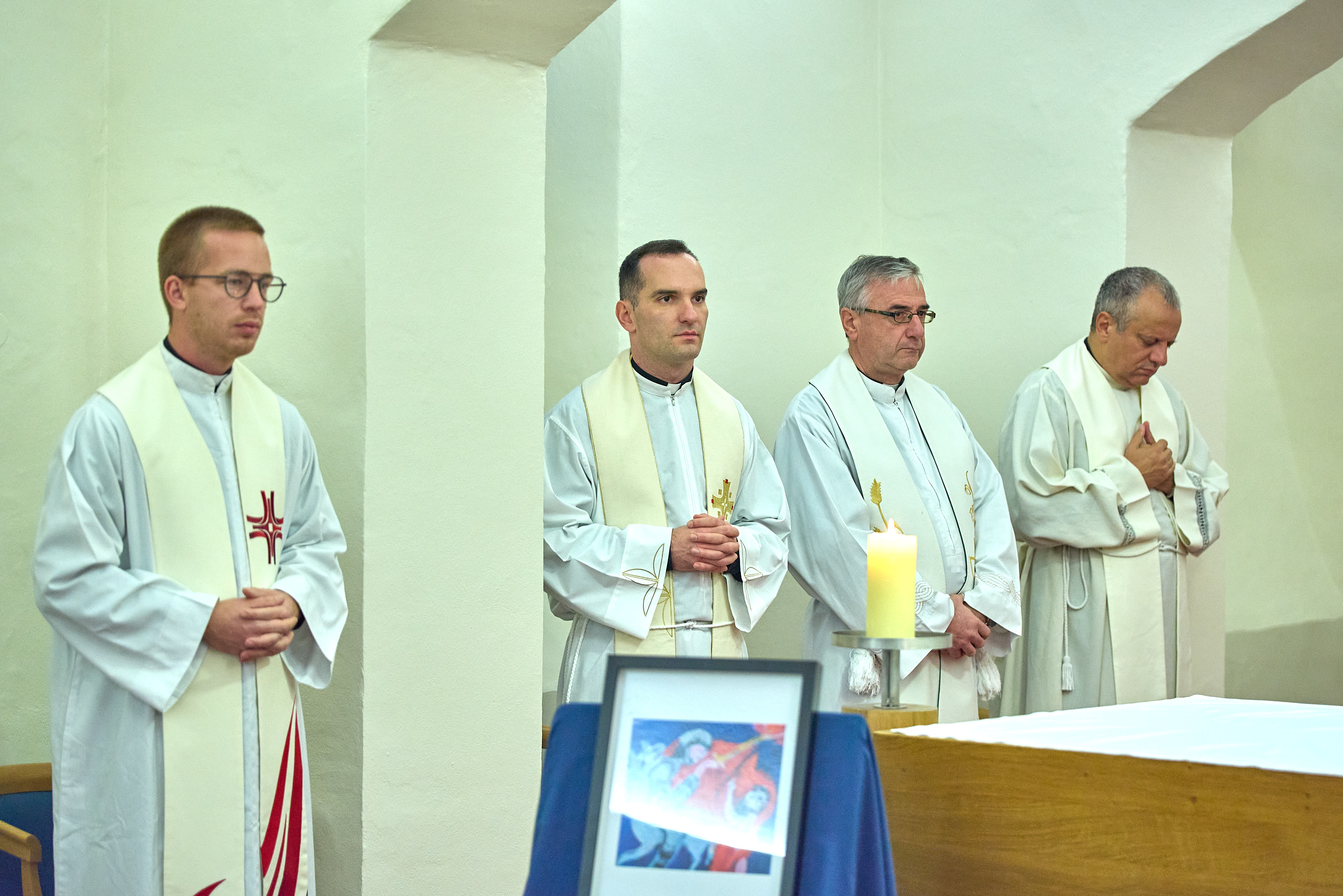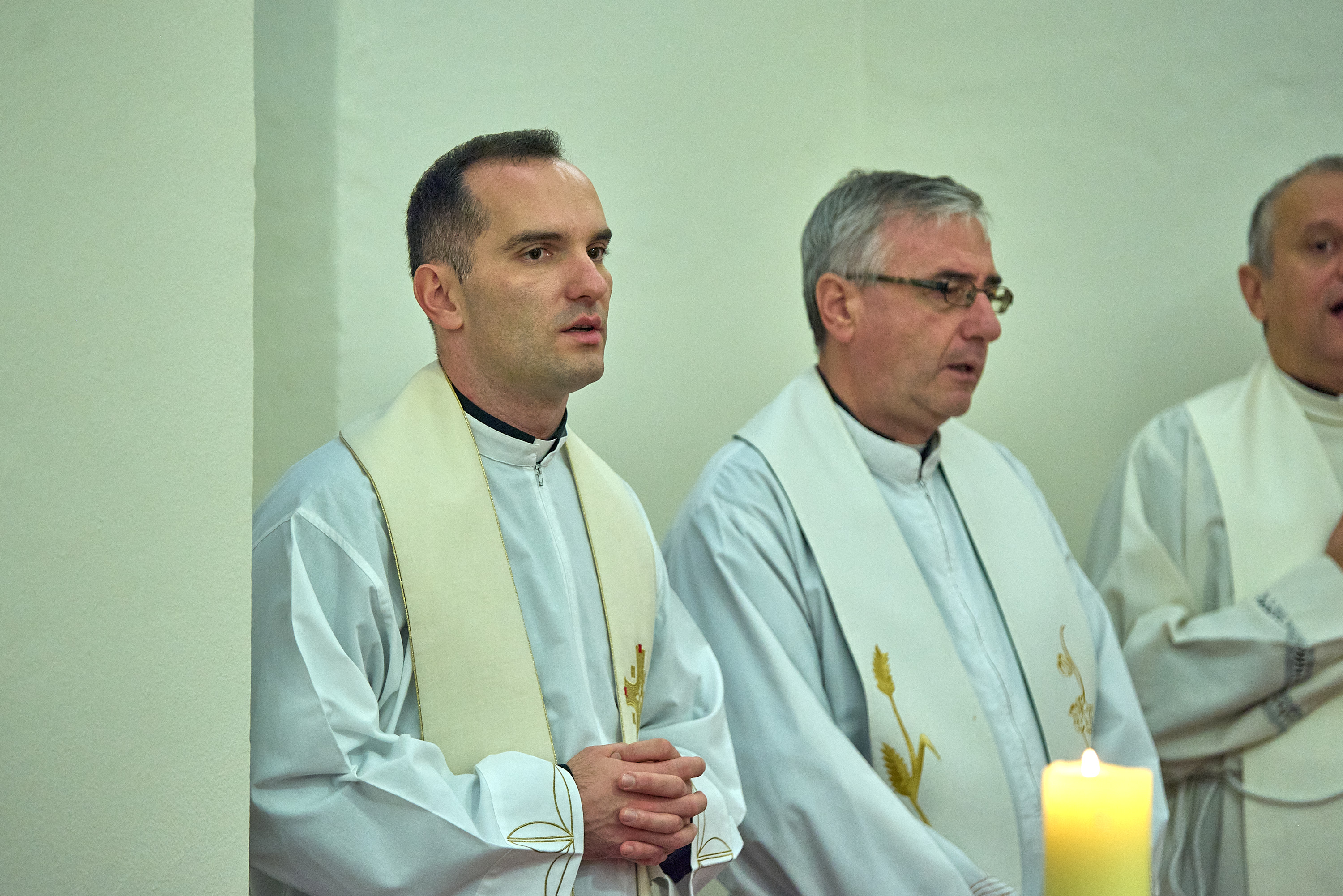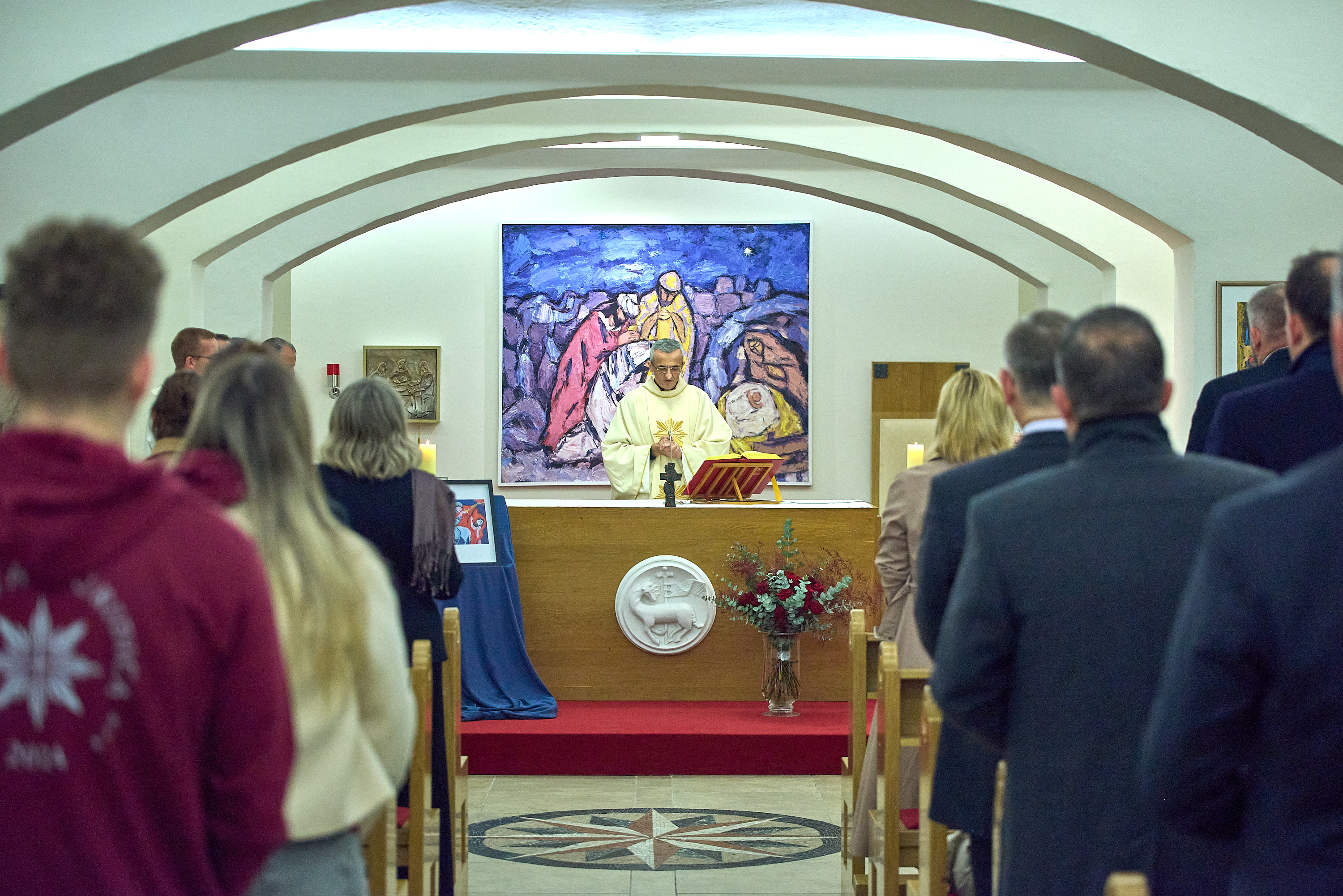 Sveto misno slavlje kojim je započeo program predvodio je prof. dr. sc. Ante Crnčević, prorektor za kvalitetu, identitet i poslanje Sveučilišta, u koncelebraciji s prof. dr. sc. Željkom Tanjićem, rektorom HKS-a, doc. dr. sc. Krunoslavom Novakom, generalnim tajnikom HBK,  dr. sc. Ilijom Doganom, zamjenikom generalnog tajnika HBK, prof. dr. sc. Jerkom Valkovićem sa Sveučilišnog odjela za komunikologiju, dr. sc. Alenom Lulićem te sveučilišnim kapelanom vlč. Branimirom Jagodićem.
