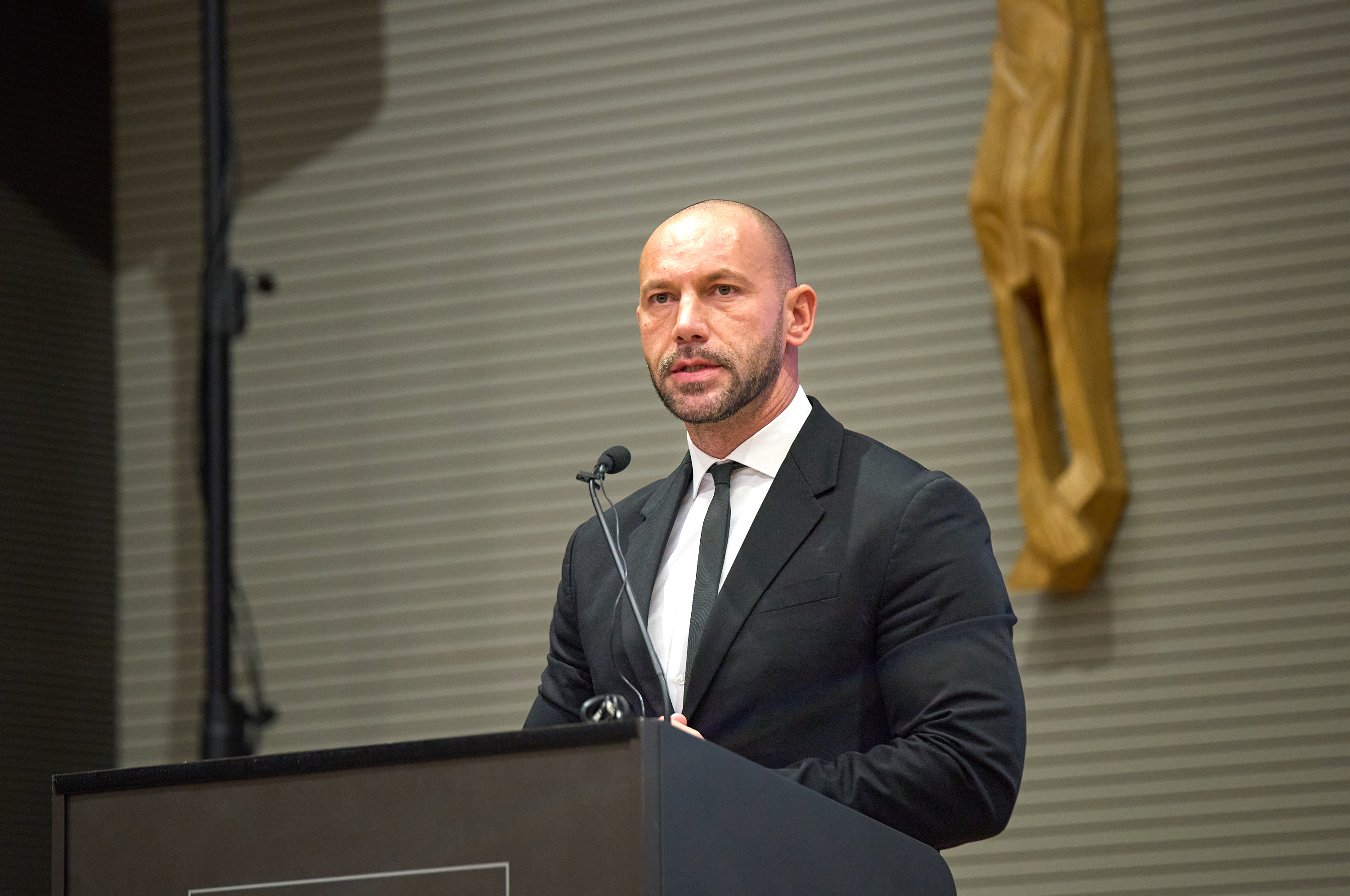 Ministar pravosuđa, uprave i digitalne transformacije Damir Habijan u svojem je govoru istaknuo kako se nedavno na sastanku sa svim dekanima Pravnih fakulteta u Hrvatskoj u temama razgovora kao lajtmotiv pojavila percepcija pravosuđa. "Percepcija je mozaik elemenata, koji ako funkcioniraju, odražavaju se na ukupnost percepcije tako da je ona dobra i učinkovita. No, ako su elementi individualno izvrsni, ali nepovezani, percepcija pati. Na tome u ministarstvu radimo i svjesni smo da svaki dan moramo raditi na boljoj slici pravosuđa. Zato, vama studentice i studenti, želim uputiti nekoliko riječi: izazovi studija, života i posla koji su pred vama su brojni, ali i mogućnosti su jednako brojne. Bit će teško, ali vjerujemo da se trud isplati, da možete biti ponosni što ste dio Hrvatskoga katoličkog sveučilišta te vam se veselimo u budućim suradnjama", zaključio je ministar Habijan.