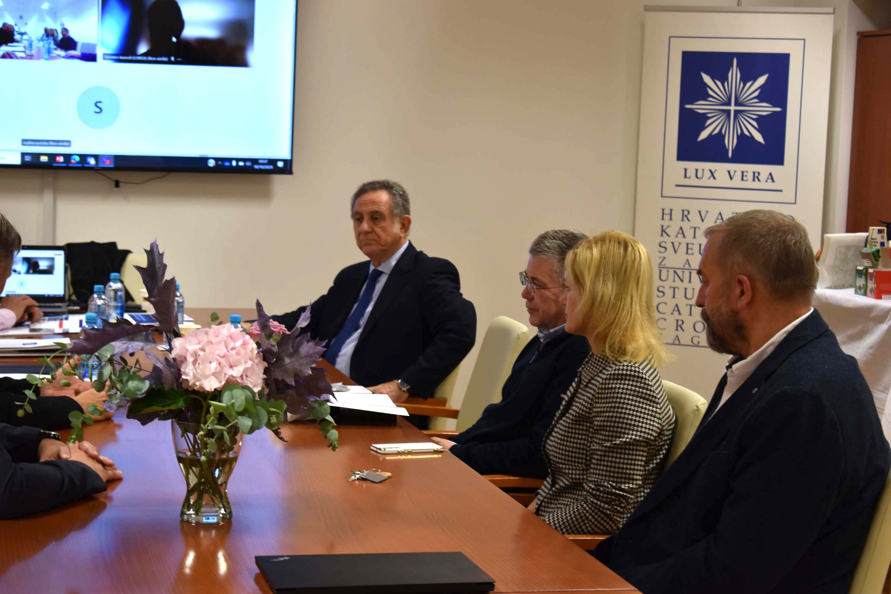 Prije sastanka upravni odbor FUCE-a susreo se s upravom Hrvatskog katoličkog sveučilišta. Uz prof. dr. sc. Željka Tanjića, goste su dočekali prof. dr. sc. Roberto Antolović, prorektor za znanost, prof. dr. sc. Jasna Ćurković Nimac, prorektorica za međunarodnu suradnju i prof. dr. sc. Roko Mišetić, prorektor za nastavu. Rektor je goste upoznao s rastom i razvojem našeg Sveučilišta te im poželio ugodan boravak i rad.