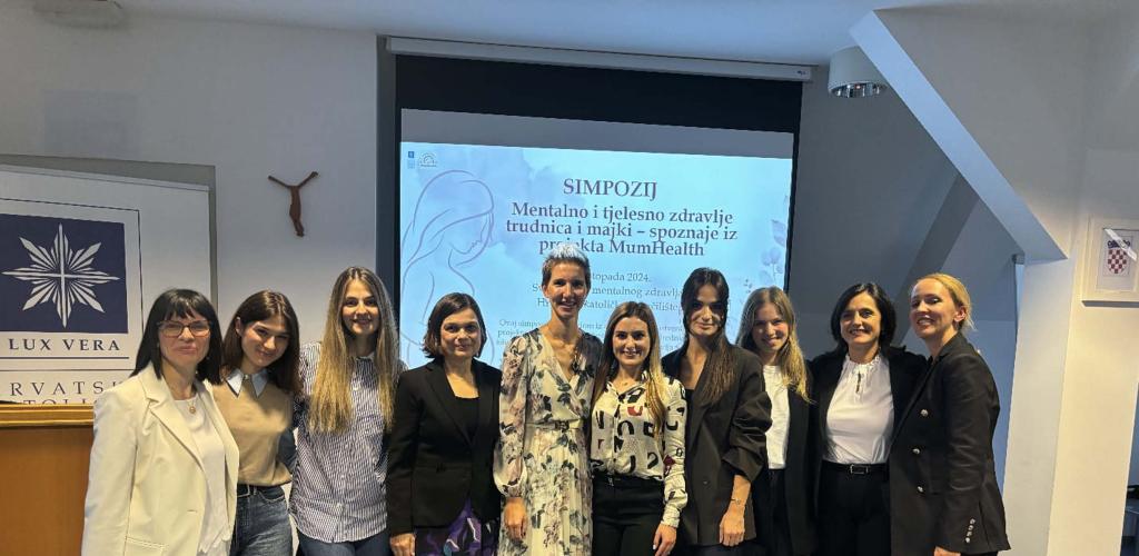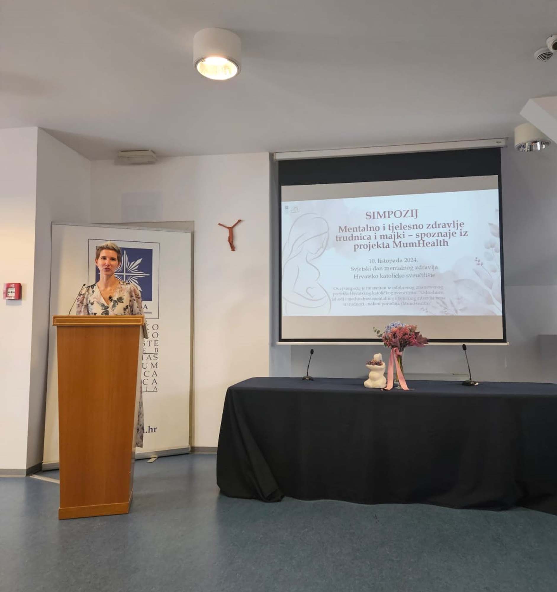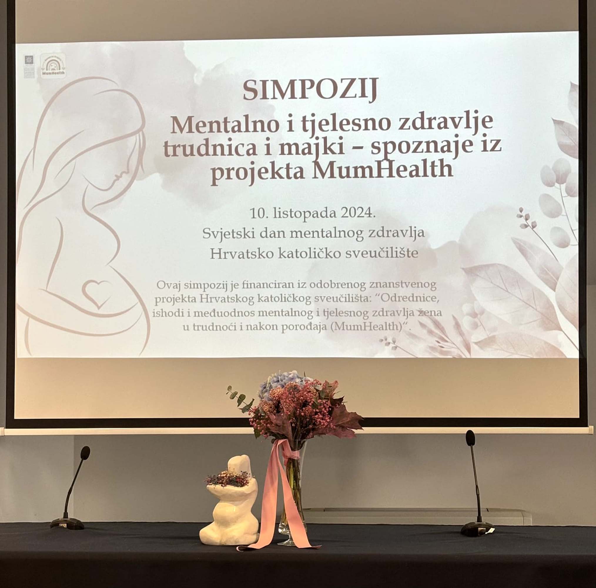 U četvrtak, 10. listopada 2024. povodom Svjetskog dana mentalnog zdravlja, održan je simpozij „Mentalno i tjelesno zdravlje trudnica i majki – spoznaje iz projekta MumHealth“. Projekt „Odrednice, ishodi i međuodnos mentalnog i tjelesnog zdravlja žena u trudnoći i nakon porođaja (MumHealth)“ financira Hrvatsko katoličko sveučilište. Uz voditeljicu projekta i samog simpozija izv. prof. dr. sc. Sandru Nakić Radoš, izlaganje su imale i ostale suradnice na projektu MumHealth: izv. prof. dr. sc. Marta Čivljak, dr. sc. Marijana Matijaš, prof. dr. sc. Jasminka Štefulj, izv. prof. dr. sc. Ljiljana Pačić-Turk, Maja Žutić, mag. psych., izv. prof. dr. sc. Ana Tikvica Luetić, izv. prof. dr. sc. Ingrid Marton te doc. dr. sc. Maja Brekalo.
