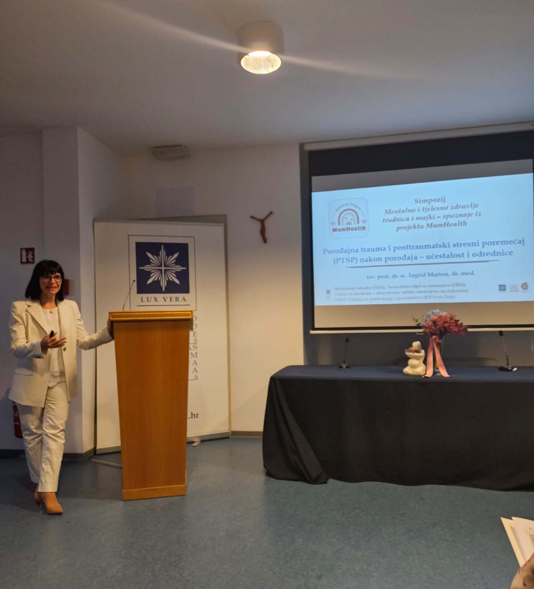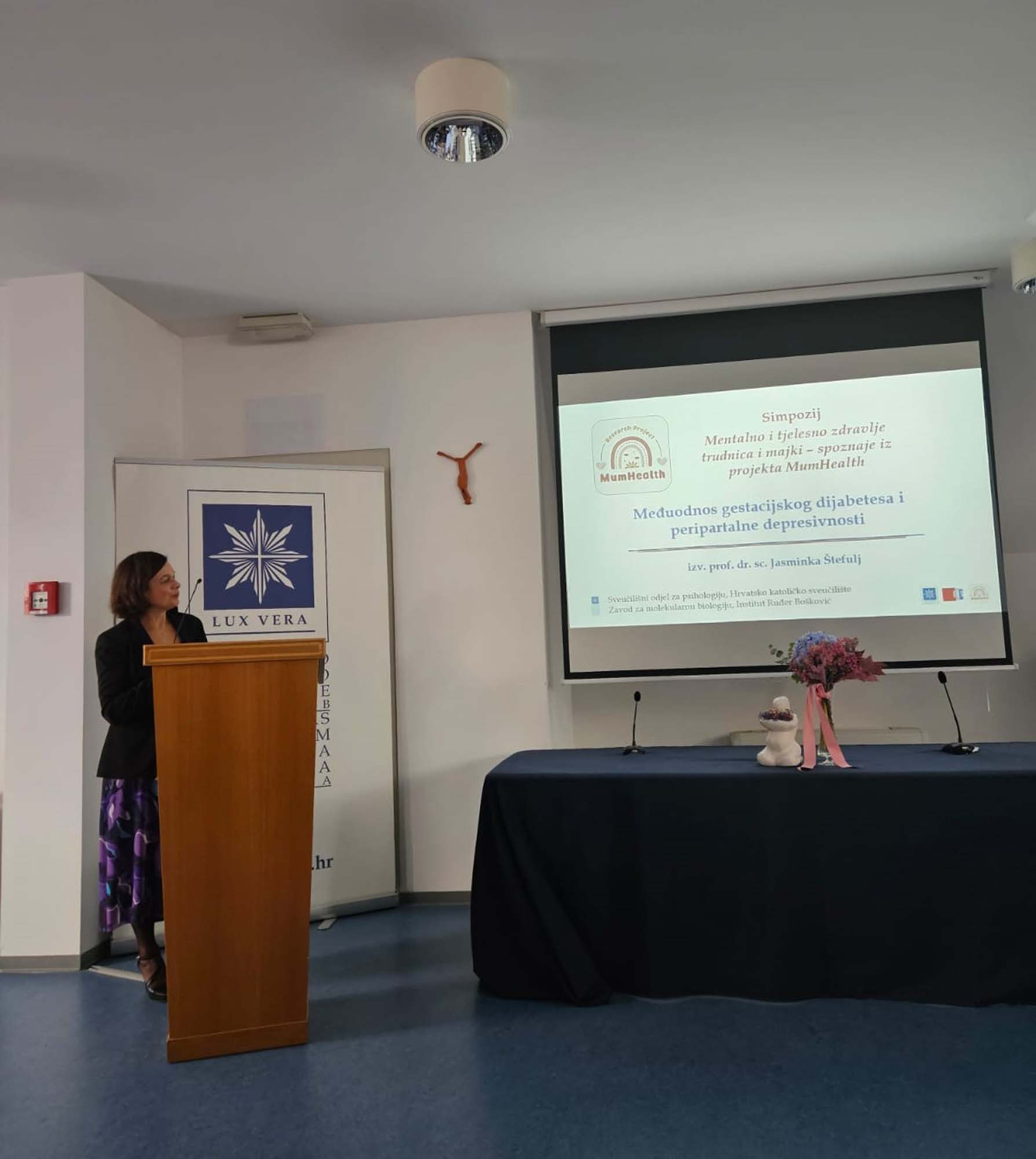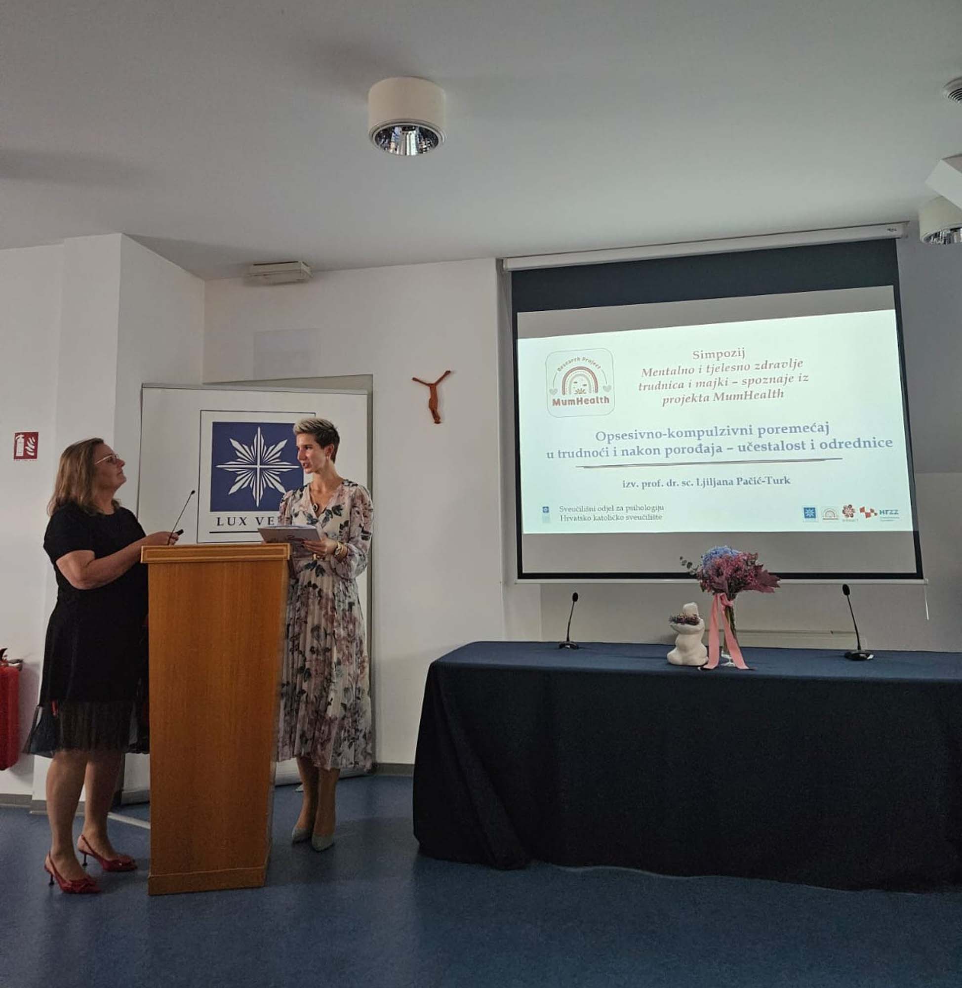 U četvrtak, 10. listopada 2024. povodom Svjetskog dana mentalnog zdravlja, održan je simpozij „Mentalno i tjelesno zdravlje trudnica i majki – spoznaje iz projekta MumHealth“. Projekt „Odrednice, ishodi i međuodnos mentalnog i tjelesnog zdravlja žena u trudnoći i nakon porođaja (MumHealth)“ financira Hrvatsko katoličko sveučilište. Uz voditeljicu projekta i samog simpozija izv. prof. dr. sc. Sandru Nakić Radoš, izlaganje su imale i ostale suradnice na projektu MumHealth: izv. prof. dr. sc. Marta Čivljak, dr. sc. Marijana Matijaš, prof. dr. sc. Jasminka Štefulj, izv. prof. dr. sc. Ljiljana Pačić-Turk, Maja Žutić, mag. psych., izv. prof. dr. sc. Ana Tikvica Luetić, izv. prof. dr. sc. Ingrid Marton te doc. dr. sc. Maja Brekalo.