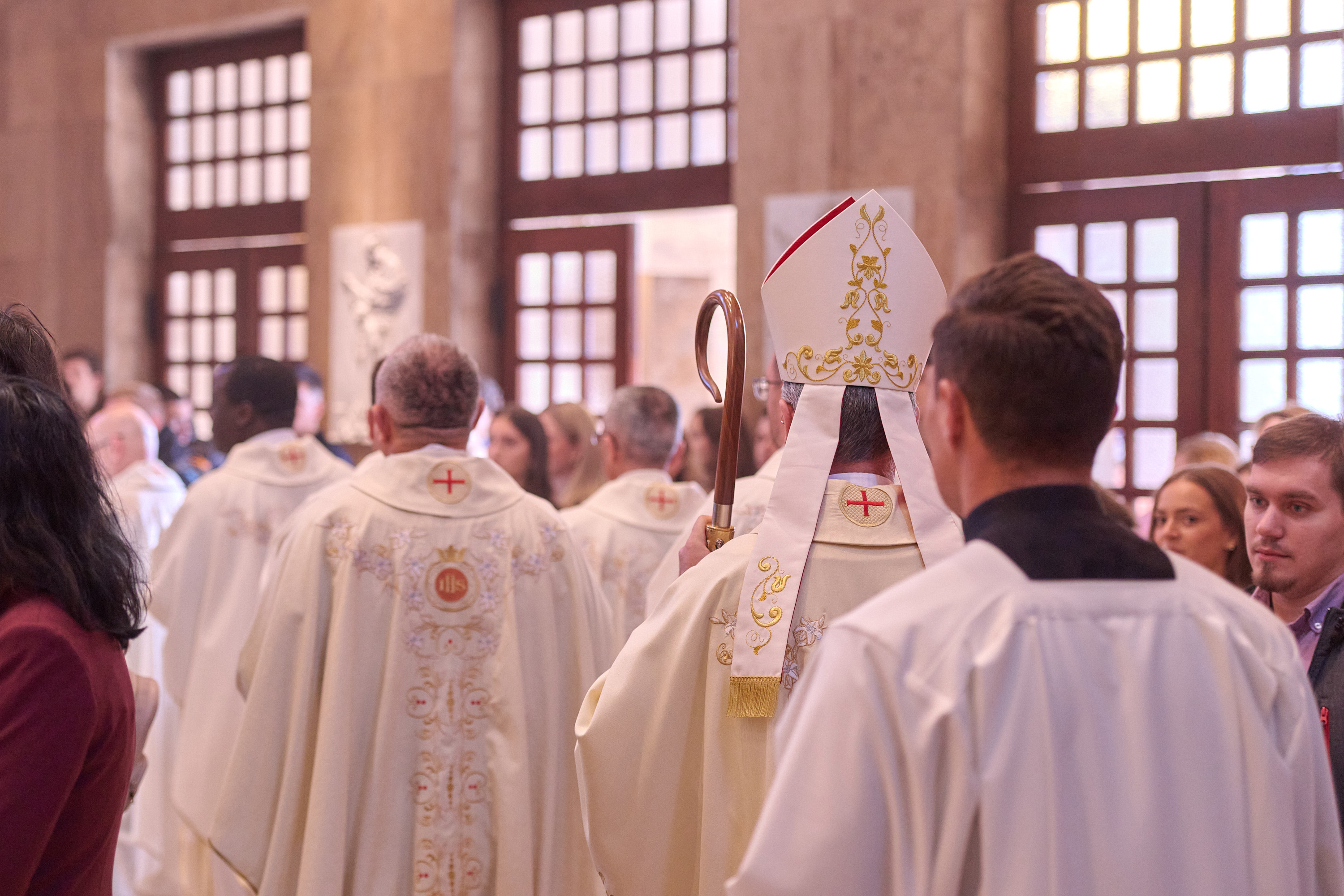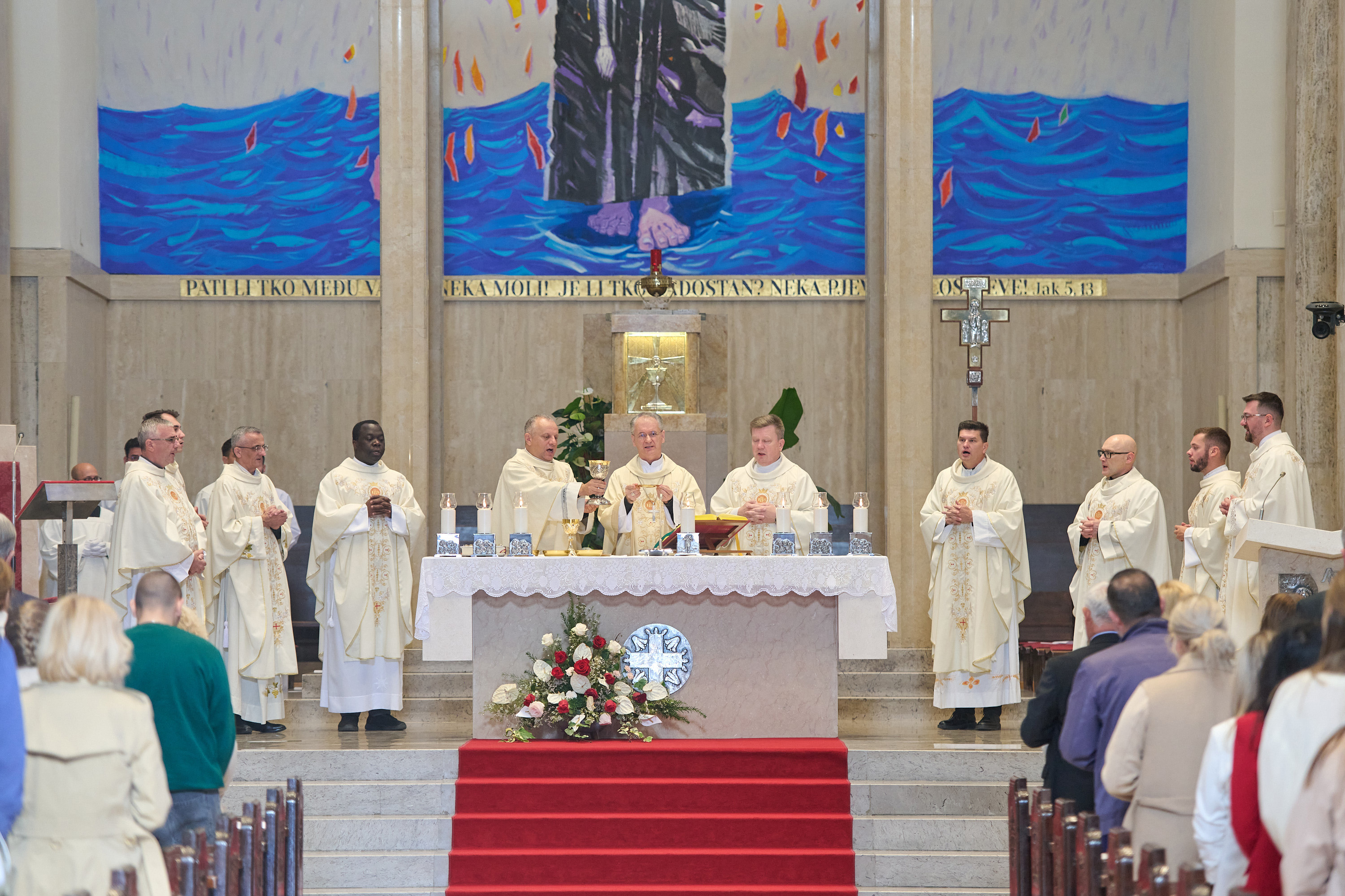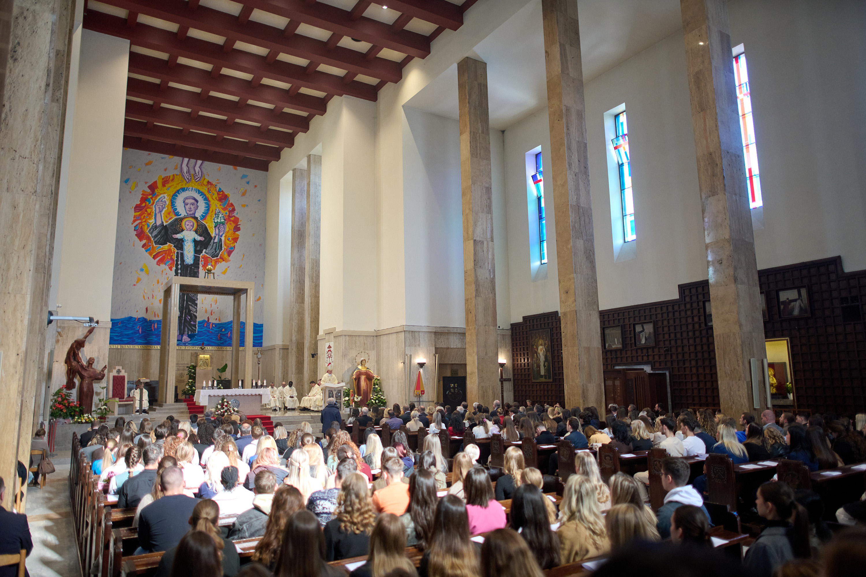 Sveto misno slavlje u bazilici Svetog Antuna Padovanskog na Svetom Duhu predvodio je zagrebački nadbiskup metropolit i Veliki kancelar HKS-a mons. Dražen Kutleša u koncelebraciji s rektorom Hrvatskog katoličkog sveučilišta prof. dr. sc. Željkom Tanjićem, doc. dr. sc. Krunoslavom Novakom, generalnim tajnikom Hrvatske biskupske konferencije, prof. dr. sc. Antom Crnčevićem, prorektorom za kvalitetu, identitet i poslanje Sveučilišta, mr. sc. Domagojem Maoševićem, moderatorom Nadbiskupskog duhovnog stola i v.d. dužnosti ekonoma biskupije, fra Ivanom Marijom Lotarom, župnikom župe sv. Antuna, vlč. Filipom Šešekom, povjerenikom zagrebačke nadbiskupije za mlade, pastoral športaša i koordinatorom dušobrižništva za studente u Zagrebu, vlč. Domagojem Topićem, nadbiskupskim tajnikom, prof. dr. sc. Jerkom Valkovićem sa Sveučilišnog odjela za komunikologiju te izv. prof. dr. sc. Richardom Pavlićem i doc. dr. sc. Odilonom Singboom sa Sveučilišne katedre za teologiju.