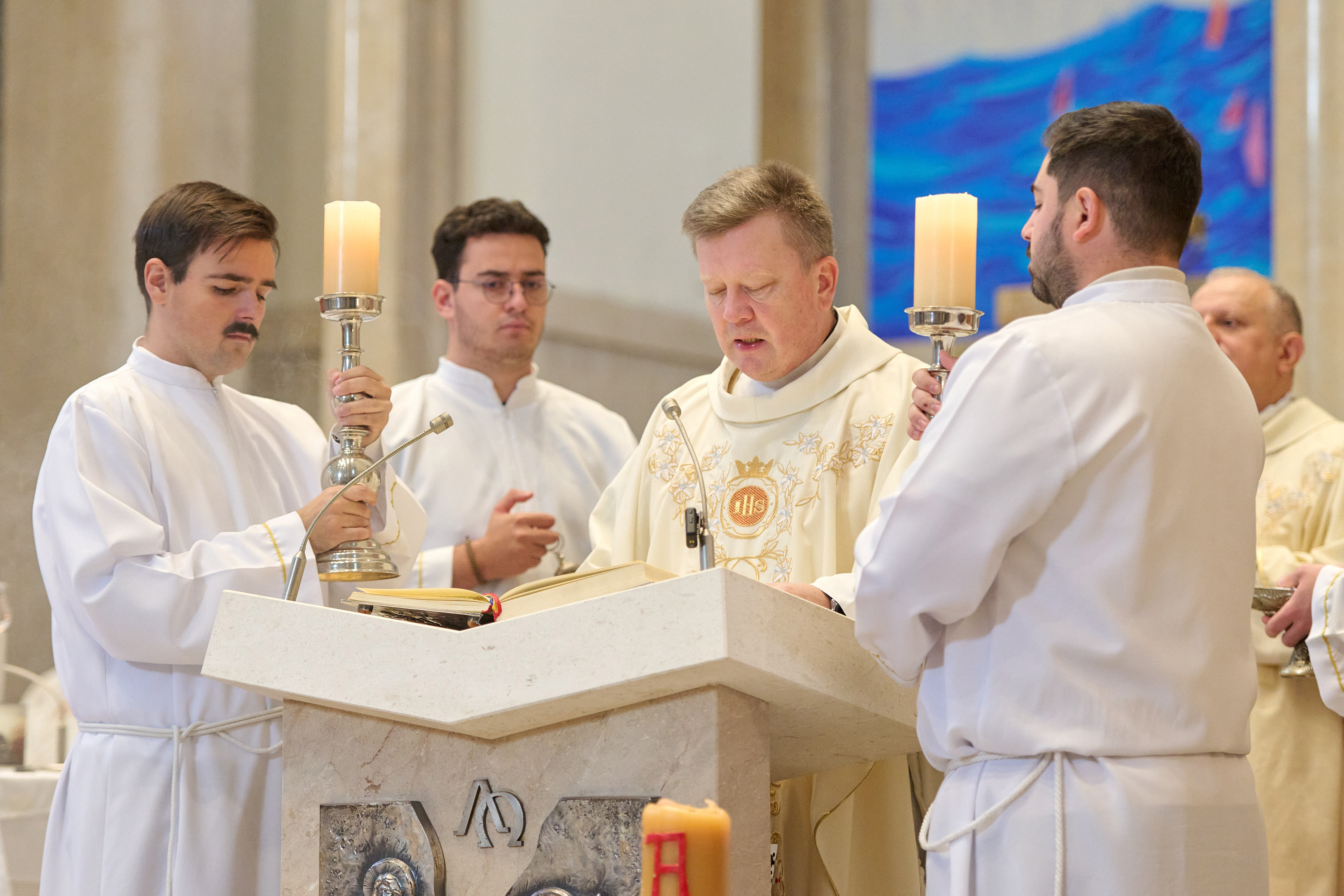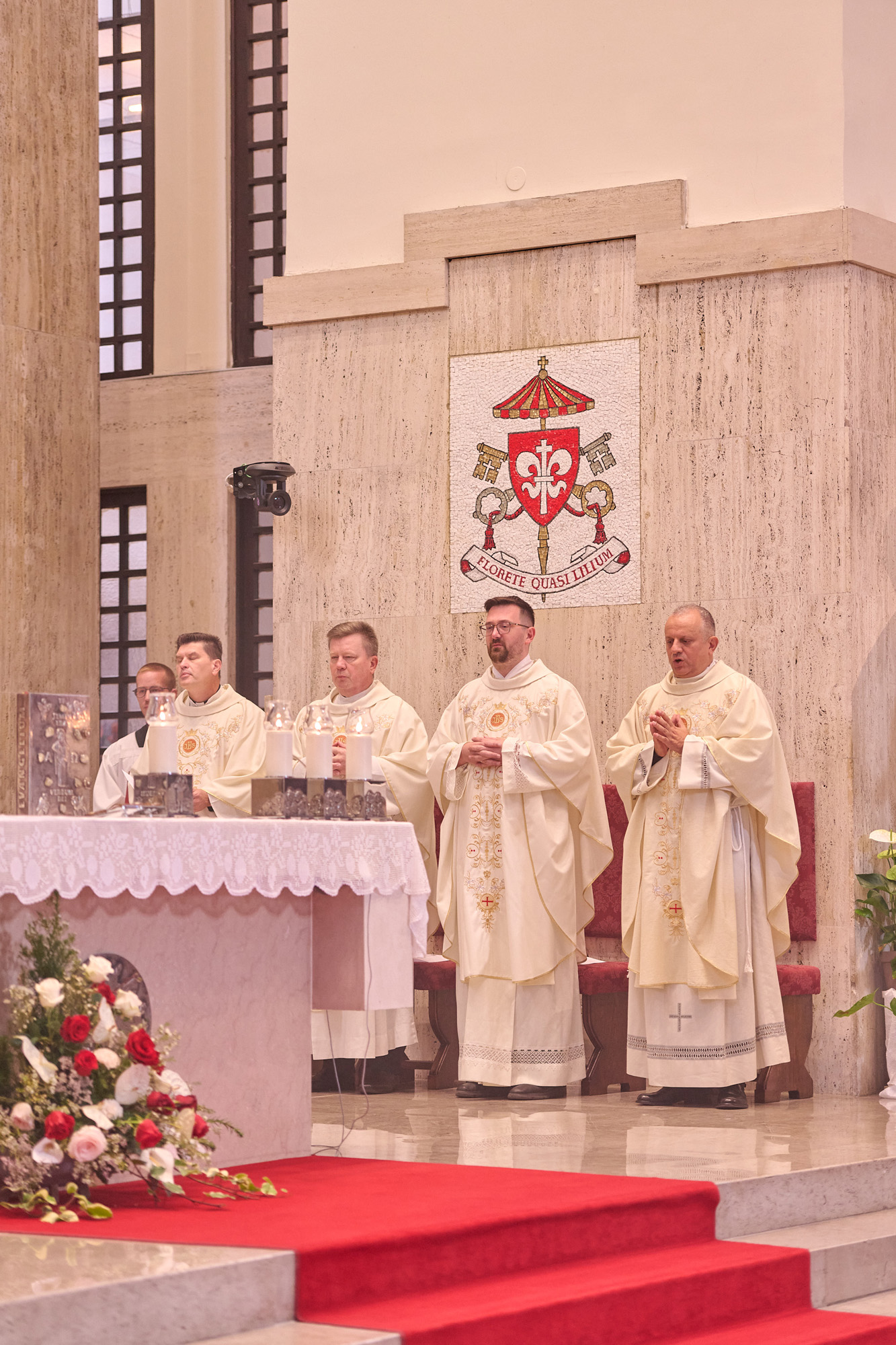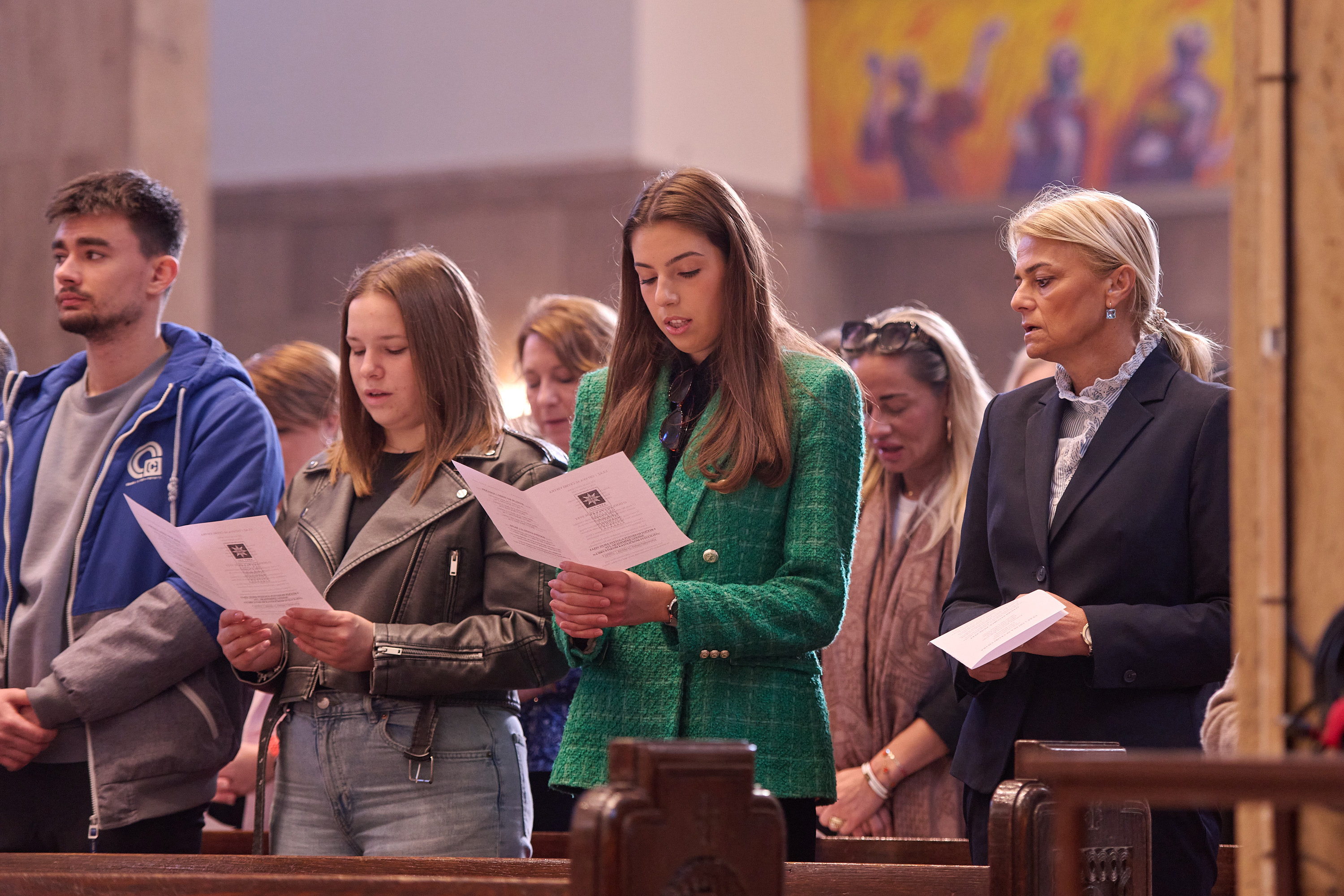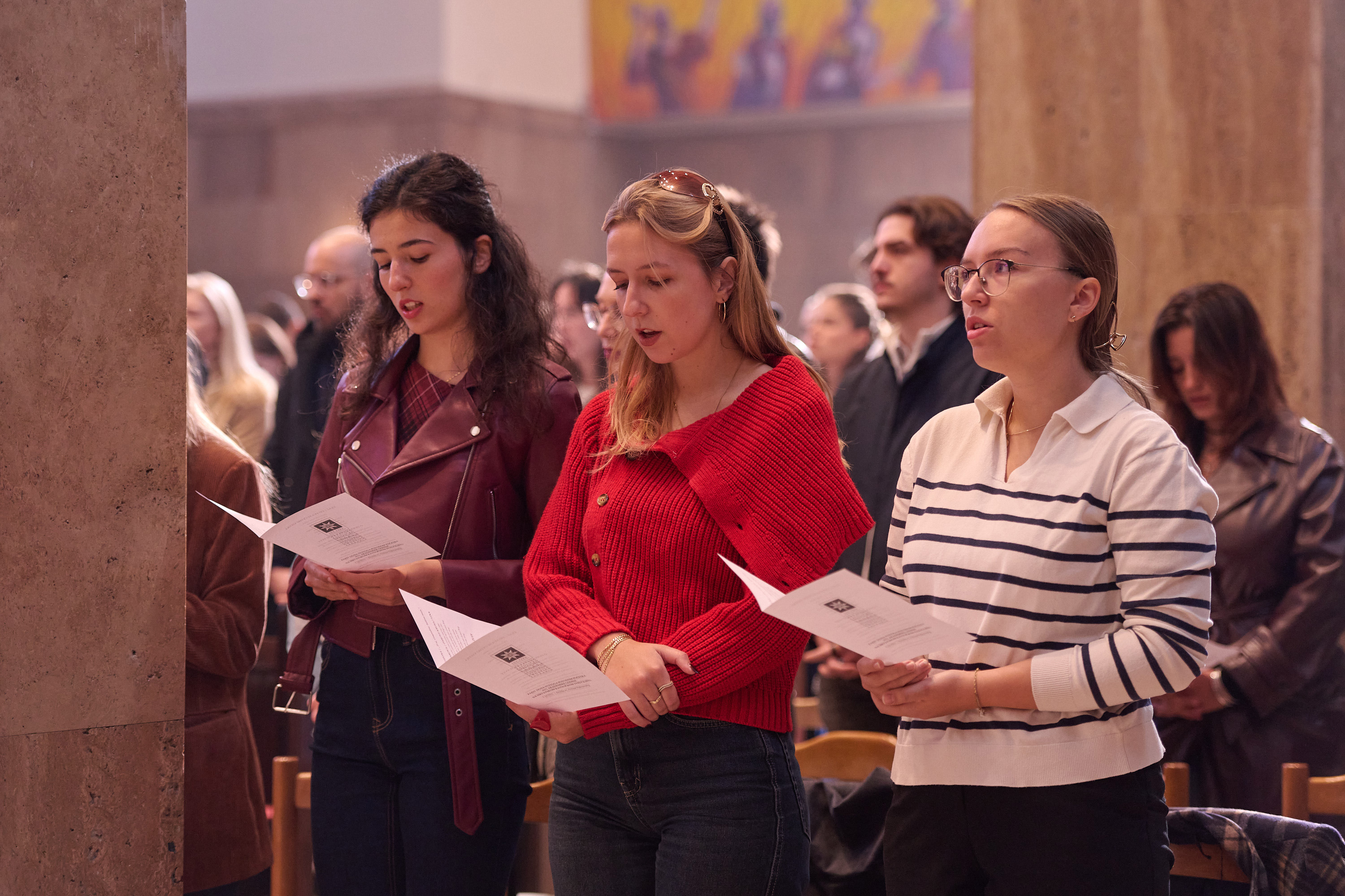 Sveto misno slavlje u bazilici Svetog Antuna Padovanskog na Svetom Duhu predvodio je zagrebački nadbiskup metropolit i Veliki kancelar HKS-a mons. Dražen Kutleša u koncelebraciji s rektorom Hrvatskog katoličkog sveučilišta prof. dr. sc. Željkom Tanjićem, doc. dr. sc. Krunoslavom Novakom, generalnim tajnikom Hrvatske biskupske konferencije, prof. dr. sc. Antom Crnčevićem, prorektorom za kvalitetu, identitet i poslanje Sveučilišta, mr. sc. Domagojem Maoševićem, moderatorom Nadbiskupskog duhovnog stola i v.d. dužnosti ekonoma biskupije, fra Ivanom Marijom Lotarom, župnikom župe sv. Antuna, vlč. Filipom Šešekom, povjerenikom zagrebačke nadbiskupije za mlade, pastoral športaša i koordinatorom dušobrižništva za studente u Zagrebu, vlč. Domagojem Topićem, nadbiskupskim tajnikom, prof. dr. sc. Jerkom Valkovićem sa Sveučilišnog odjela za komunikologiju te izv. prof. dr. sc. Richardom Pavlićem i doc. dr. sc. Odilonom Singboom sa Sveučilišne katedre za teologiju.