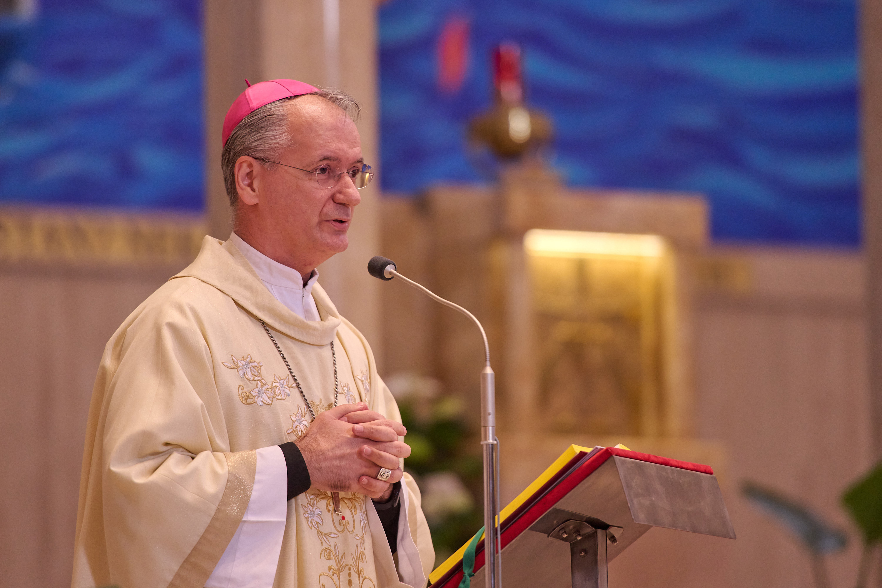 Mons. Kutleša u svojoj homiliji istaknuo je kako je svaka nova akademska godina poseban trenutak, gdje "na vrelu života i izvoru svake istine koja nam je dana u Kristu Isusu, kao akademska zajednica želimo prepoznati da naša potraga za istinom i mudrošću ovdje započinje i završava, ako želi biti izraz služenja Crkvi i svijetu". Kroz ulomak iz Lukina evanđelja (Lk 9,57-62) u kojemu se spominju tri kandidata za nasljedovanje Krista, mons, Kutleša pozvao je akademsku zajednicu na promišljanje kroz tri naglaska: ići za Kristom bez iluzija, ne odgađati te ne obazirati se. "Naš narod i naša Crkva trebaju ljude koji neće biti zarobljeni nostalgijom, koji neće odgađati odgovore i koji se neće zavaravati lažnim iluzijama. Potrebni su nam žene i muškarci koji će spoznatu istinu provoditi u djelo, koji će služiti znanjem i ljubavlju, koji će svojim djelovanjem svjedočiti da je Krist doista „Put, Istina i Život“ (Iv 14,6). Upravo u tome Hrvatsko katoličko sveučilište ima svoje poslanje, biti rasadište ljudi koji su ukorijenjeni u vjeri, a otvoreni svijetu; koji su vjerni Crkvi, a sposobni dijalogizirati s kulturom; koji su ponizni pred Bogom, a hrabri pred izazovima vremena.... I zato, s povjerenjem u Božju providnost, započnite ovu novu akademsku godinu s radošću i odvažnošću. Neka vaš trud bude vaš dar Gospodinu, a vaši uspjesi njegov blagoslov. Neka svaki dan vašega rada bude ispunjen onom jednostavnom, ali moćnom molitvom sv. Male Terezije: Isuse, volim te", zaključio je mons. Kutleša.