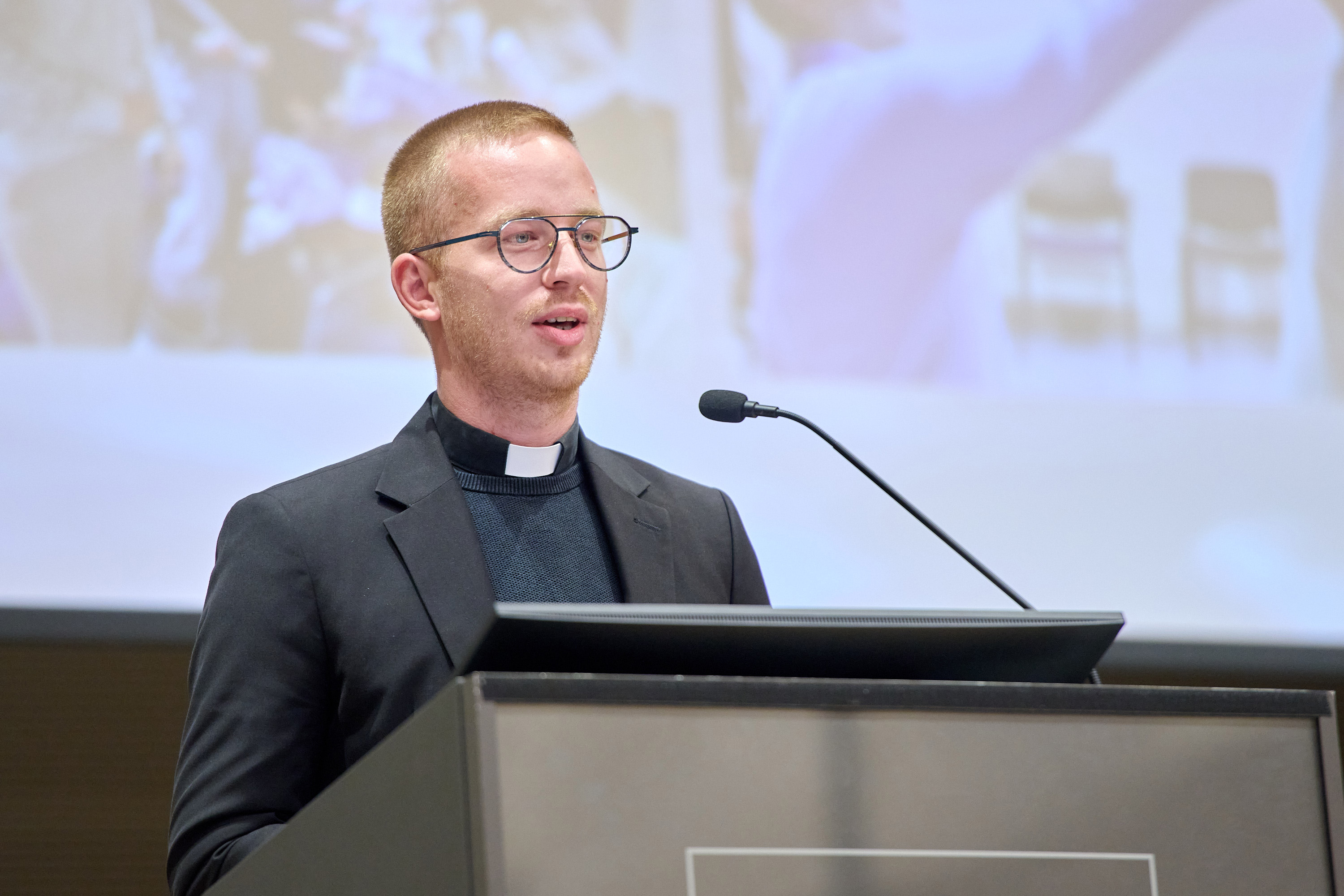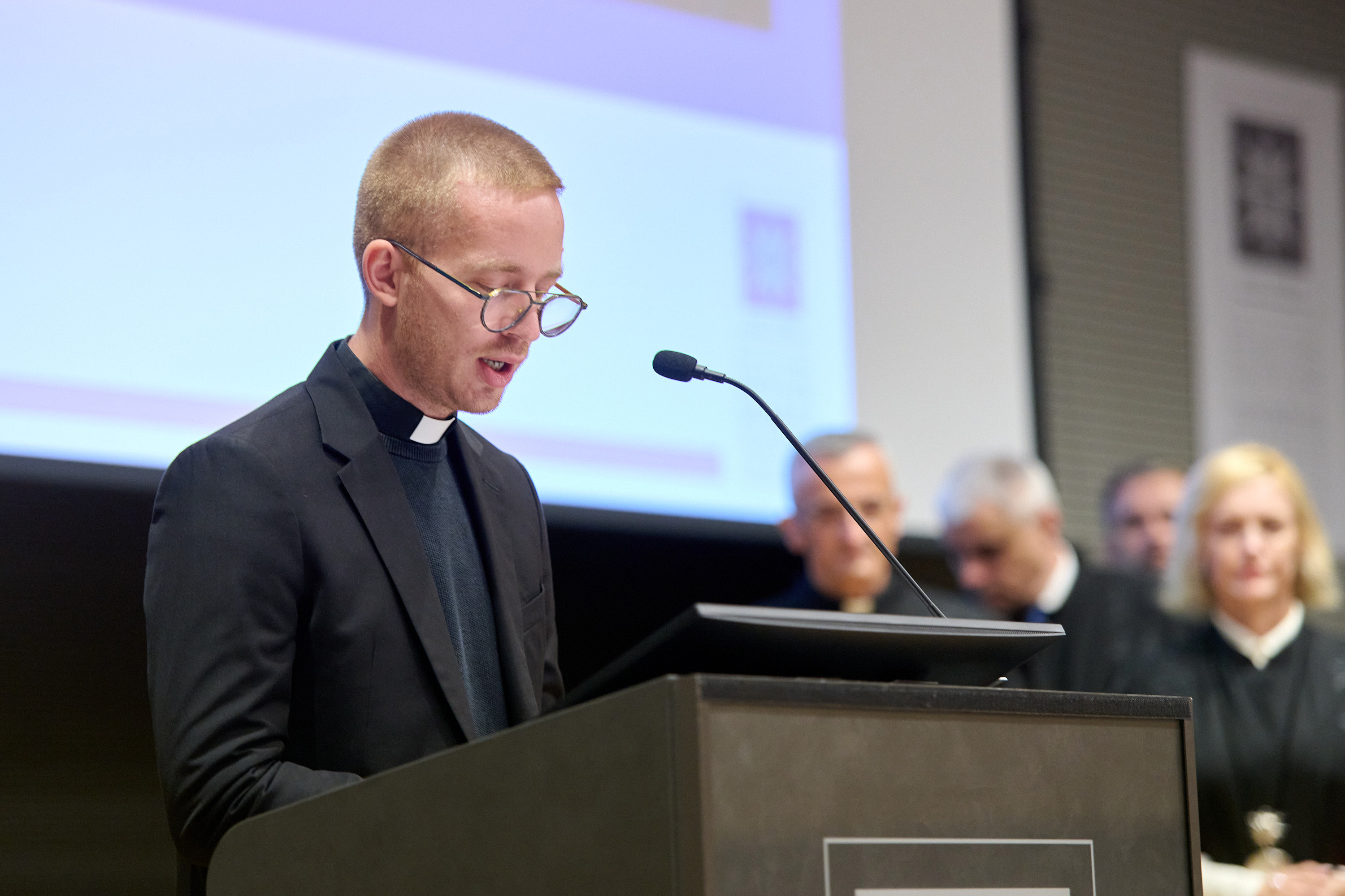 Sveučilišni kapelan vlč. Branimir Jagodić, predstavio je Sveučilišnu kapelaniju, najavivši skori početak aktivnosti te je istaknuo da su vrata kapelanije uvijek otvorena za sva njihova pitanja, probleme, potrebe za duhovnim ili “ljudskim” razgovorom. Svečani akademski čin moderirala je Paula Zujić asistentica Sveučilišnog odjela za sociologiju.