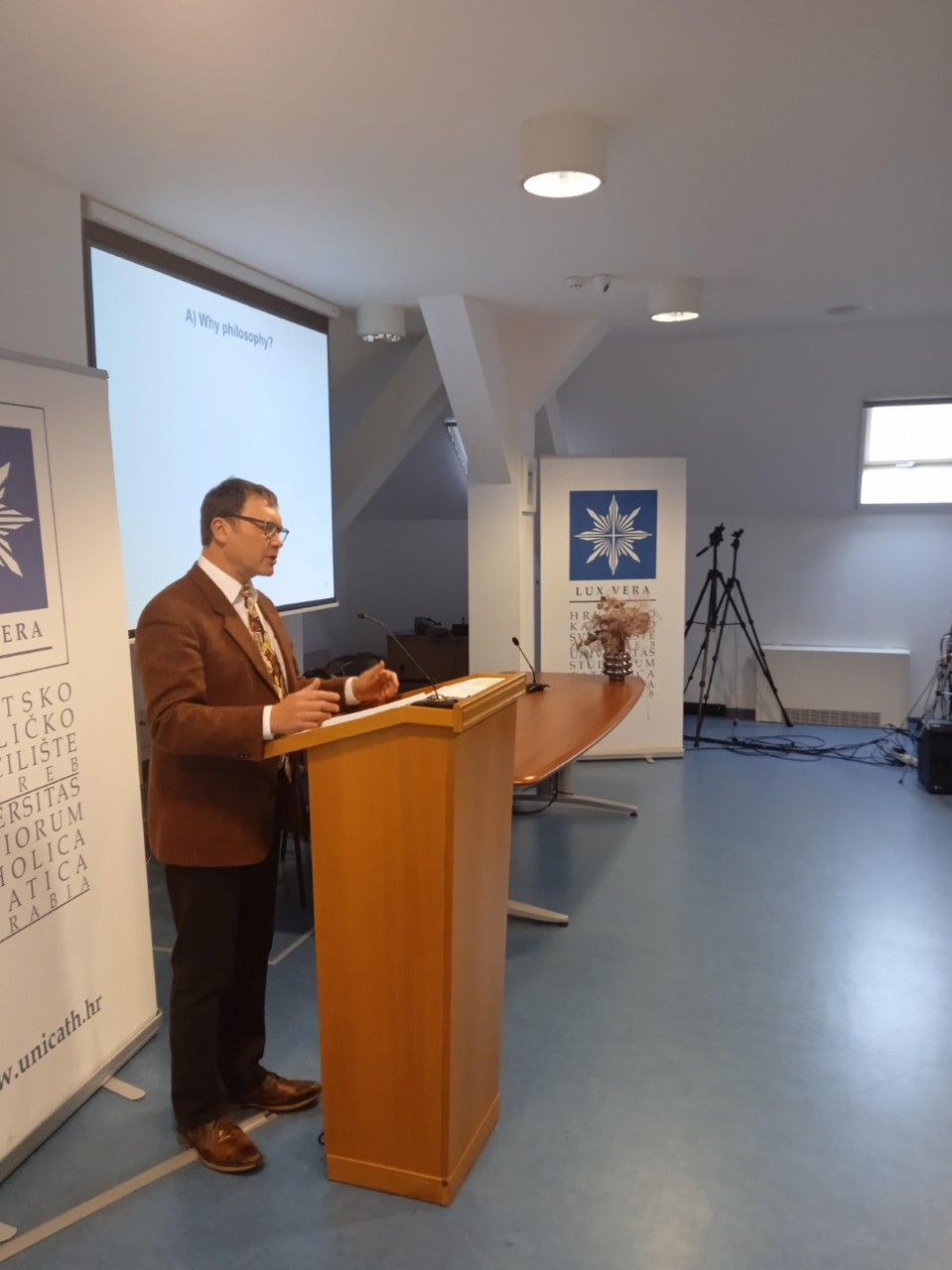 Osim navedenog predavanja, prof. dr. sc. Riedenauer je, također, održao predavanje 29. studenoga i 1. prosinca 2022. pod nazivom Introduction to Philosophy studentima prve godine preddiplomskog studija iz sociologije, komunikologije, povijesti i psihologije koji pohađaju kolegij Uvod u teologiju, a čiji je nositelj izv. prof. dr. sc. Zoran Turza. Studenti su imali prilike steći znanje iz temeljnih filozofskih koncepata, o ulozi i zadaći filozofije, te se aktivno uključiti u diskusiju.