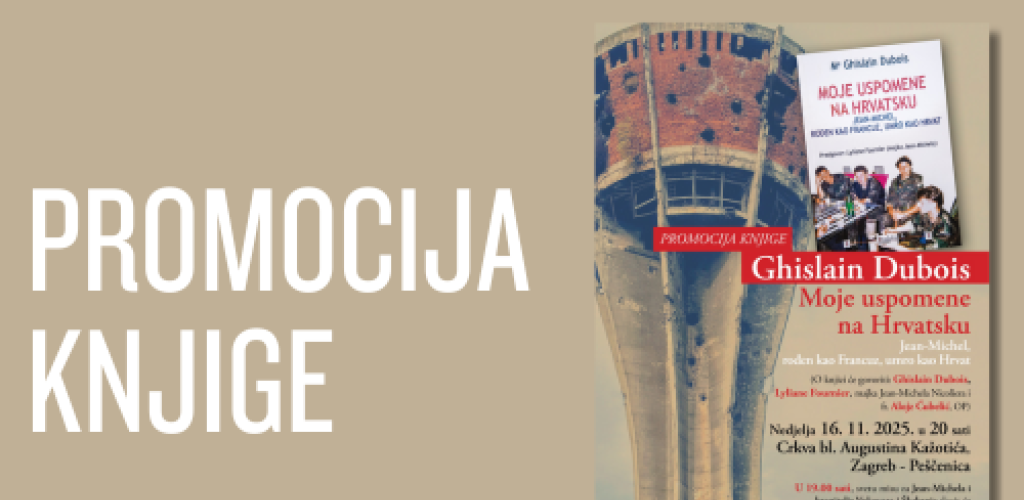 "Moje uspomene na Hrvatsku - Jean-Michel, rođen kao Francuz, umro kao Hrvat", knjiga autora Ghislana Duboisa, o mladom Francuzu ubijenom u obrani Vukovara 1991. godine, bit će predstavljena u nedjelju, 16. studenog 2025. u 20 sati, u samostanskoj i župnoj crkvi bl. Augustina Kažotića na zagrebačkoj Peščenici (križanje Vukovarske ulice i Ivanićgradske ulice).
