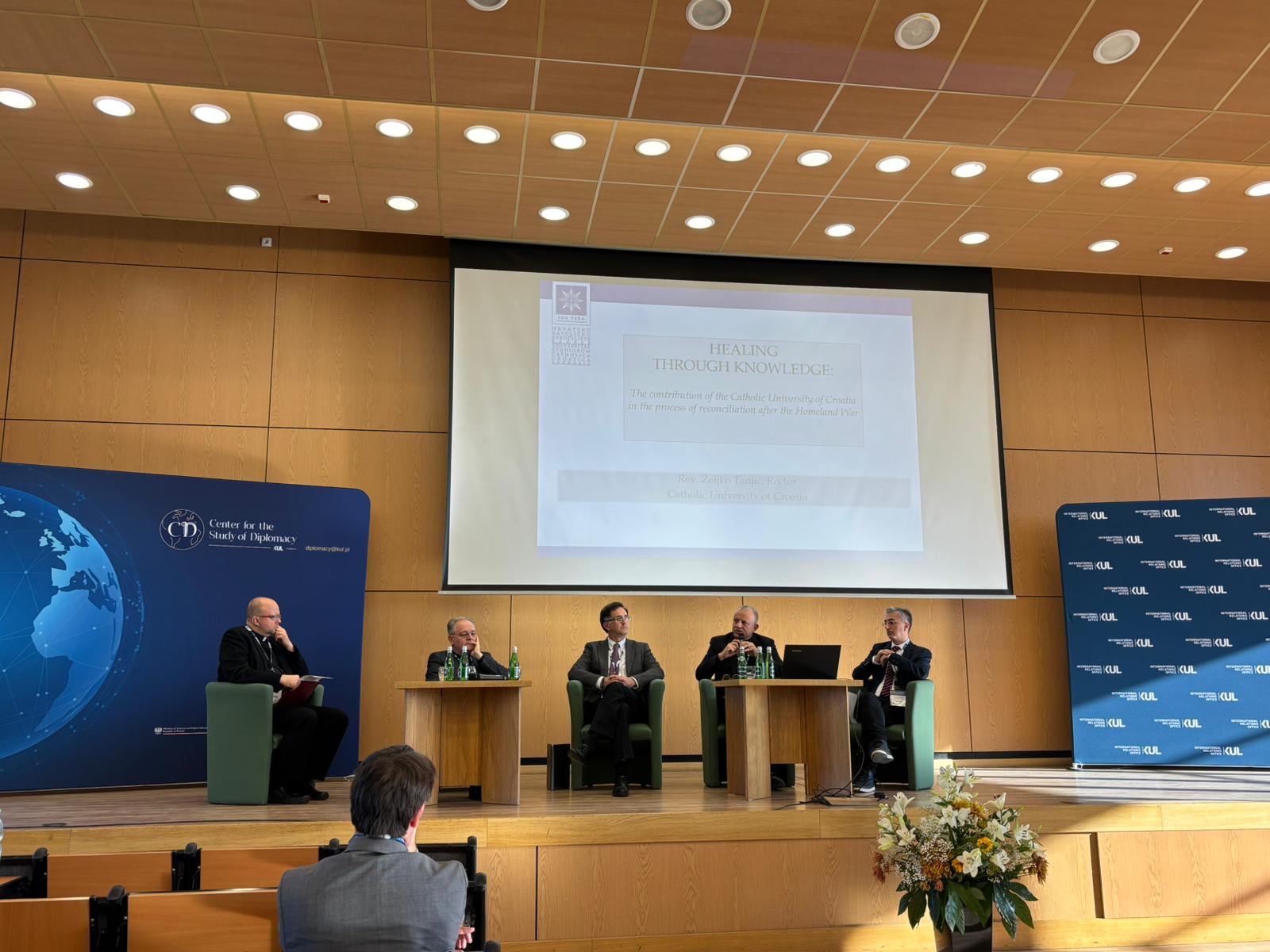 Rektor Tanjić zajedno s prorektoricom za međunarodnu suradnju prof. dr. sc. Jasnom Ćurković Nimac sudjelovao je na međunarodnoj konferenciji Suradnja katoličkih sveučilišta na djelu: promicanje mira, dijaloga i znanstvene diplomacije u sklopu Partnerstva katoličkih sveučilišta (en. Catholic Universities Partnership) koja se održala 19. i 20. listopada 2025. na Katoličkom sveučilištu u Lublinu (KUL). Partnerstvo katoličkih sveučilišta je inicijativa američkog Sveučilišta Notre Dame, koja ima za cilj ponovno osnivanje ili podršku postojećim katoličkim sveučilištima u Europi, posebno u postkomunističkim zemljama. Konferencija je obilovala zanimljivim akademskim sadržajima, uključujući panel-rasprave, predavanja i mnogobrojne susrete među delegacijama katoličkih sveučilišta iz Slovačke, Mađarske, Ukrajine, Gruzije, Poljske i Hrvatske. Sudionici konferencije imali su priliku posjetiti Studijski centar u Istražnom zatvoru u Lublinu te Medicinski kampus Katoličkog sveučilišta u Lublinu.