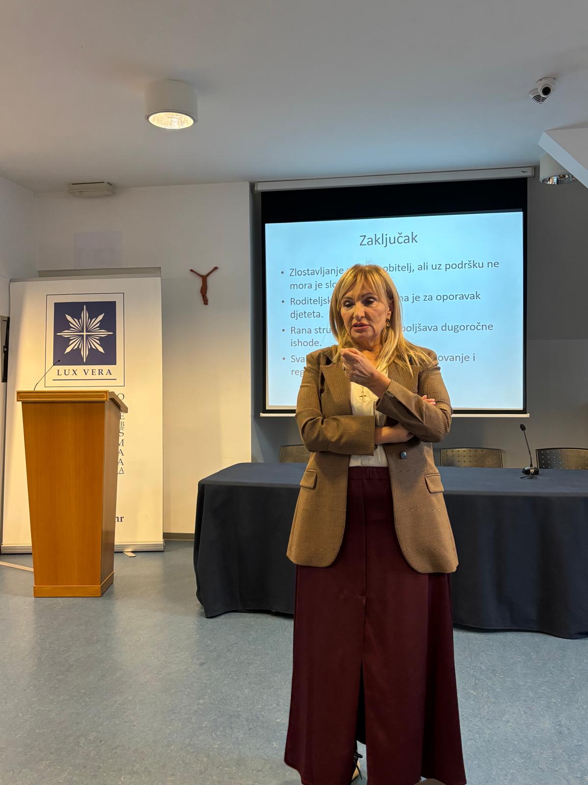 U drugom bloku predavanja prof. dr. sc. Gordana Buljan Flander govorila je o prepoznavanju i reagiranju na zlostavljanje i zanemarivanje djece. Izlaganje je obuhvatilo ključne psihološke pokazatelje, najčešće obrasce ponašanja žrtava i dinamiku prikrivanja zlostavljanja. Posebno se istaknula važnost stručnog i osjetljivog pristupa prilikom prvog razgovora s djetetom koje daje naznake da trpi nasilje, uz veliki naglasak na važnost reakcije obitelji djeteta koje je zlostavljano. U raspravi sudionici su postavili brojna pitanja vezanih uz praksu, upitivali o potrebi boljeg povezivanja Crkve sa sustavom socijalne skrbi te je istaknuta važnost edukacije djelatnika uz jasne protokole postupanja.
