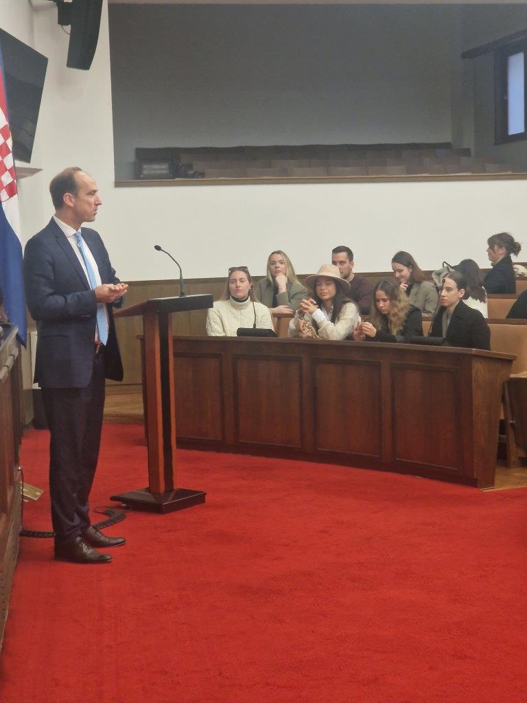 U ponedjeljak, 28. studenoga 2022. studenti druge godine sveučilišnog diplomskog studija sociologije Hrvatskog katoličkog sveučilišta posjetili su Hrvatski sabor. Naime, u sklopu kolegija Osnove proračuna na diplomskom studiju, studenti stječu znanja o postupku donošenja državnog proračuna pa su tijekom terenske nastave posjetili Hrvatski sabor. S obzirom da se tijekom ovog tjedna u Hrvatskom saboru upravo raspravlja o prijedlogu državnog proračuna za 2023. godinu, studenti su bili pozvani pratiti uživo plenarnu sjednicu na kojoj ih je, tijekom predsjedanja sjednicom, pozdravio potpredsjednik Hrvatskog sabora.