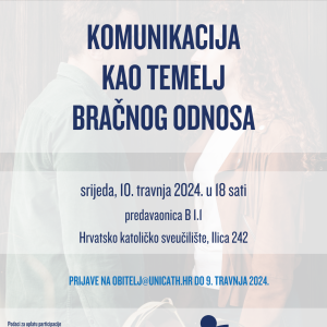 Centar za obitelj Hrvatskog katoličkog sveučilišta u srijedu 10. travnja 2024. održat će novu…