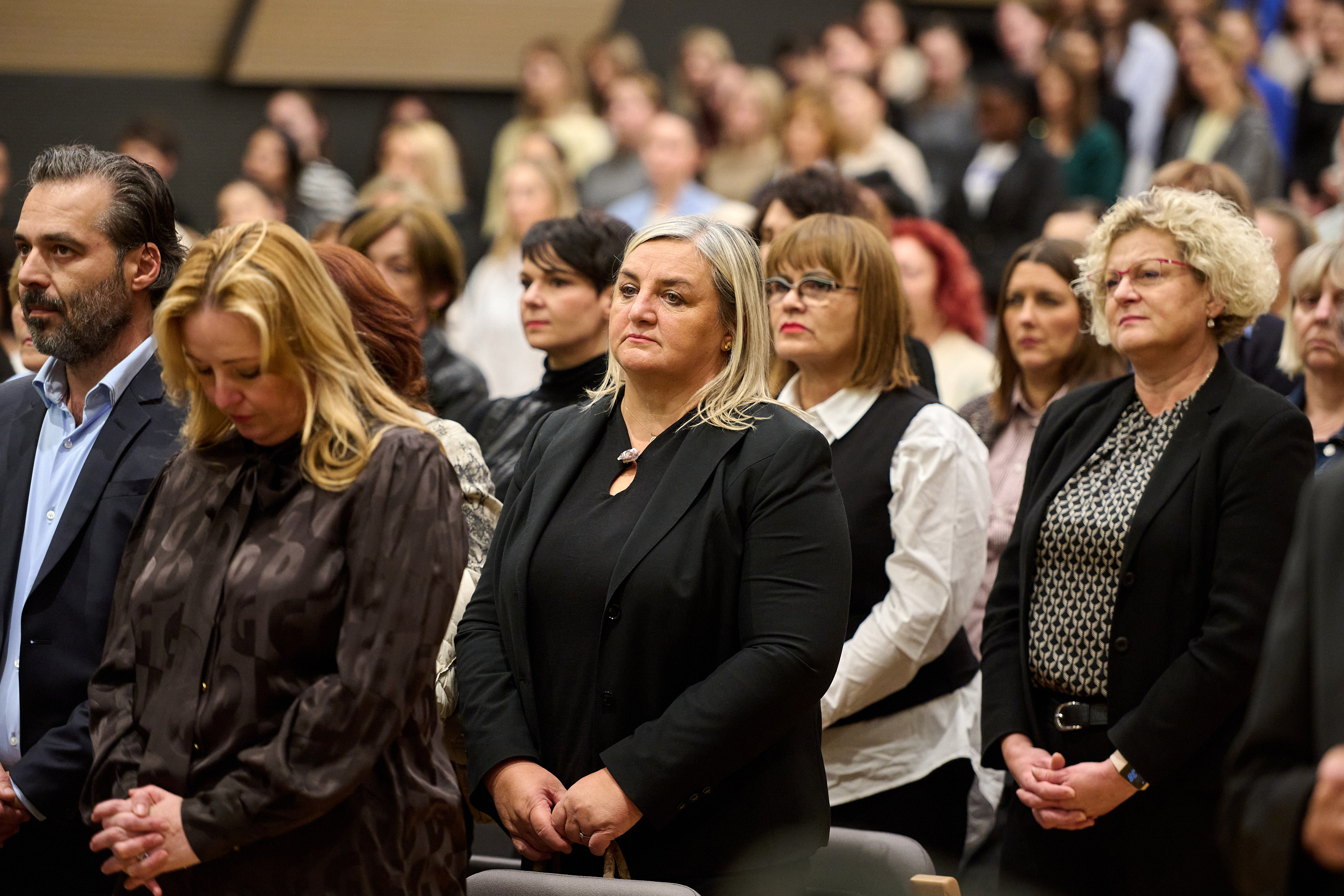 U svom obraćanju na svečanosti Dana Fakulteta zdravstvenih studija državna tajnica doc. dr. sc. Iva Ivanković u ime Ministarstva znanosti, obrazovanja i mladih pohvalila je rad Fakulteta i Sveučilišta, istaknuvši da se studiji sestrinstva i primaljstva uspješno razvijaju te da postoji trajni interes studenata, što potvrđuje redovito popunjavanje upisnih kvota. Naglasila je važnost očuvanja vrijednosti koje su temelj sestrinske i primaljske profesije – humanosti, stručnosti i etičnosti – te potaknula nastavak promicanja izvrsnosti u obrazovanju budućih zdravstvenih djelatnika.