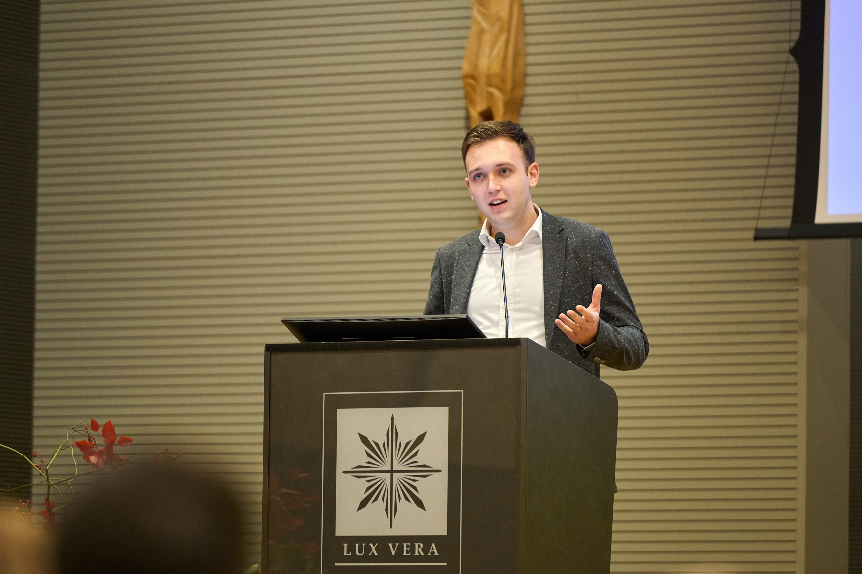 Svečanost je započela misnim slavljem u Sveučilišnoj kapelici koje je predvodio prof. dr. sc. Ante Crnčević, prorektor za kvalitetu, identitet i poslanje Sveučilišta u koncelebraciji s prof. dr. sc. Jerkom Vlakovićem sa Sveučilišnog odjela za komunikologiju, izv. prof. dr. sc. Josipom Bošnjakovićem sa Sveučilišnog odjela za psihologiju, doc. dr. sc. Odilonom-Gbènoukpom Singboom sa Sveučilišne katedre za teologiju i sveučilišnim kapelanom vlč. Branimirom Jagodićem.