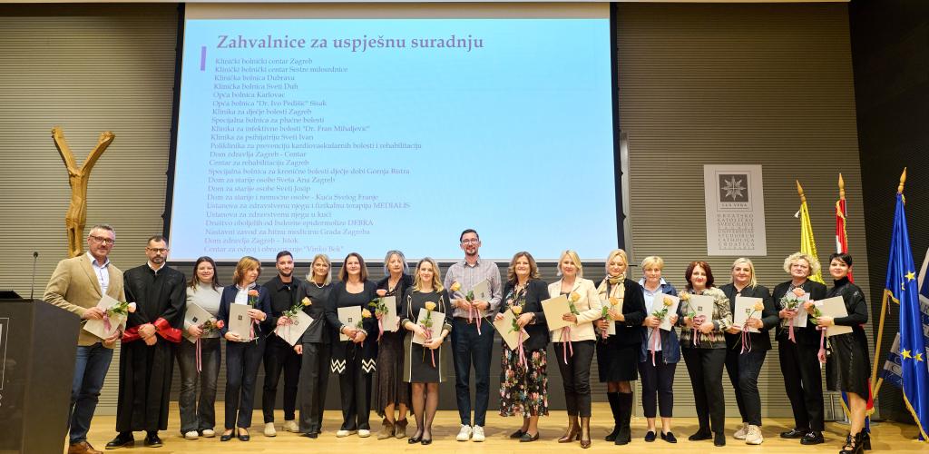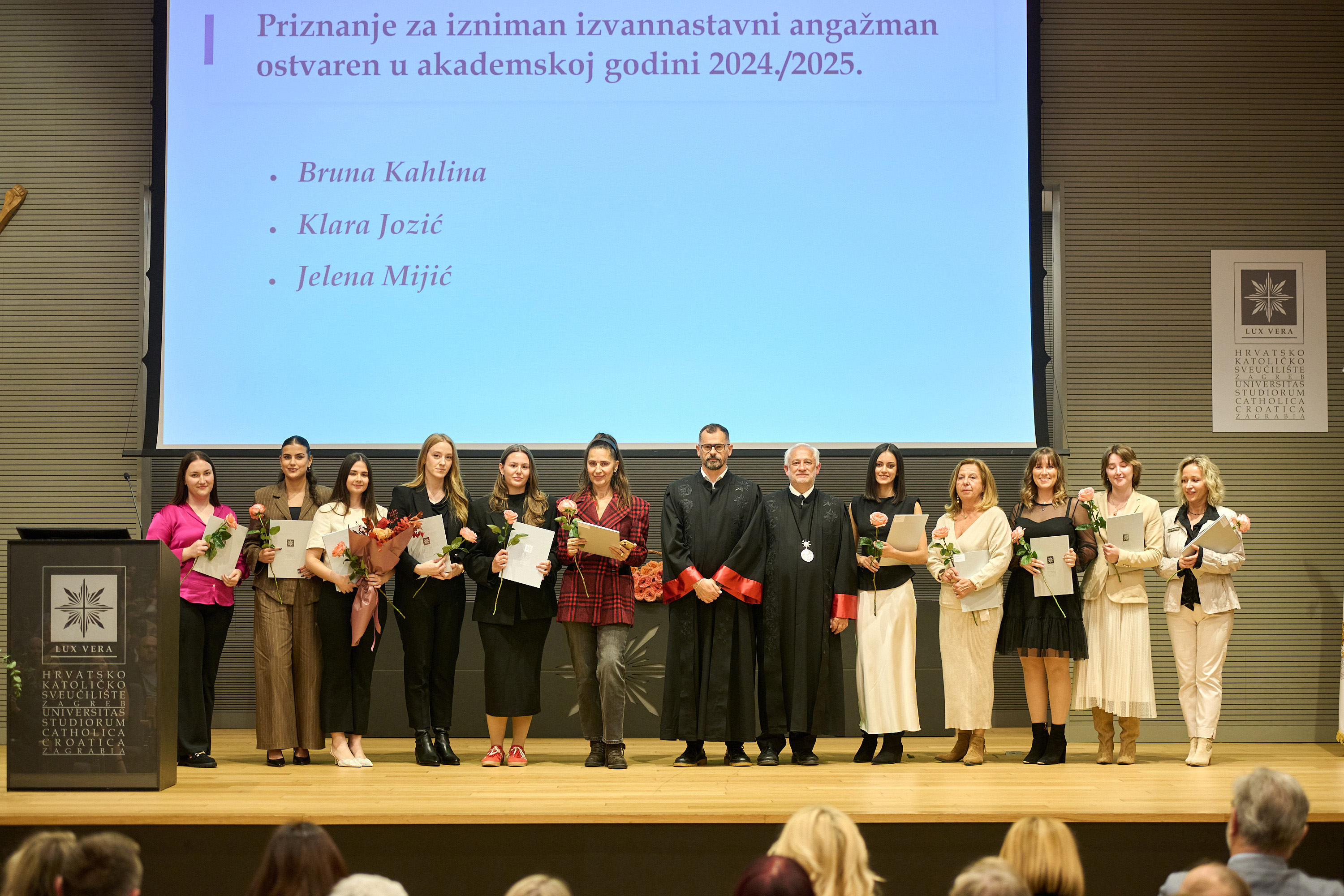 Dodijeljena su i priznanja za najbolji akademski uspjeh u prošloj akademskoj godini, priznanje za najbolji diplomski rad obranjen u prošloj akademskoj godini te priznanja za izvanredan izvannastavni angažman te zahvalnice suradnim ustanovama i njihovim koordinatorima za kvalitetno provođenje nastavnih aktivnosti, stručne prakse i mentoriranje naših studenata sestrinstva. Za najbolji akademski uspjeh nagrađeni su: Karmen Mandić, za I. godinu redovitog prijediplomskog studija s težinskim prosjekom 4,182; Laura Vujasinović, za II. godinu prijediplomskog studija s težinskim prosjekom 4,768; Mateja Brica, za III. godinu prijediplomskog studija s težinskim prosjekom 4,400; Betina Šmider, za I. godinu izvanrednog prijediplomskog studija s težinskim prosjekom 4,273; Suzana Polanović, za II. godinu diplomskog studija s težinskim prosjekom 4,268; Marina Tončić, za III. godinu diplomskog studija s težinskim prosjekom 4,164; Lukrecija Petrić, za I. godinu diplomskog studija s težinskim prosjekom 4,933; Željka Bakota, za I. godinu diplomskog studija s težinskim prosjekom 4,667; Ana Grubeša, za II. godinu diplomskog studija s težinskim prosjekom 5,000 i Ivona Škrinjar, za II. godinu diplomskog studija s težinskim prosjekom 5,000, koja je ujedno dobila i priznanje za najbolji diplomski rad „Veličina uzorka i metode konsenzusa u istraživanjima koja koriste Delphi metodu: metodološko istraživanje". Za izvannastavni angažman nagrađene su Bruna Kahlina, Klara Jozić i Jelena Mijić. Zahvalnice za deset godina suradnje primili su predstavnici i suradnih ustanova.