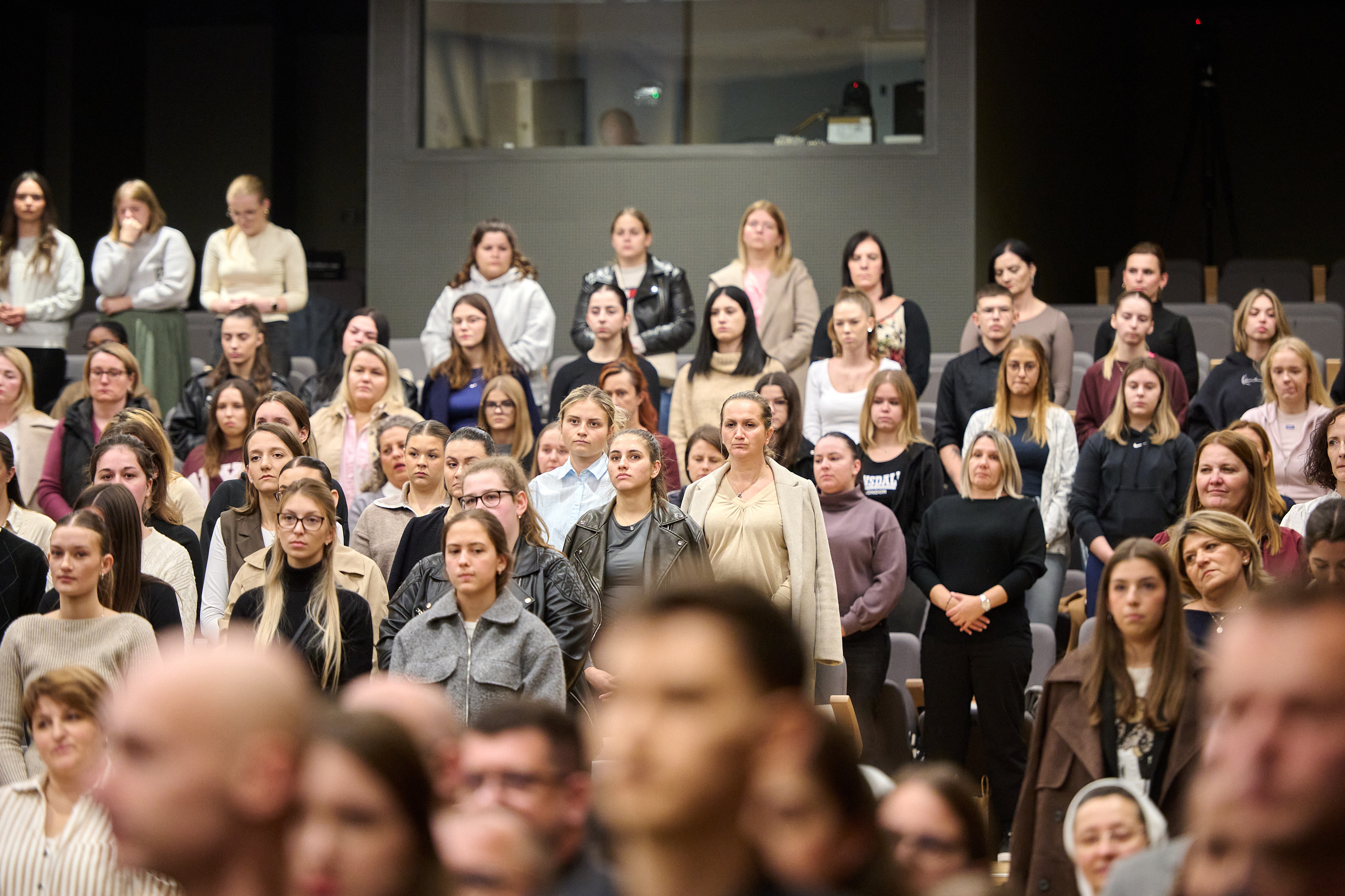 Svečani akademski čin i popratni program nastavljen je u Auli magni HKS-a. Uz brojne članove akademske zajednice, upravu Sveučilišta, dekane, prodekane, pročelnike i pročelnice, pridružili su se i u ime ministra znanosti, obrazovanja, sporta i mladih državna tajnica doc. dr. sc. Iva Ivanković, u ime ministrice zdravstva savjetnica ministrice Snježana Krpeta, u ime Hrvatske komore medicinskih sestara Ana Ljubas, predstavnici Hrvatske komore primalja, ravnatelji i ravnateljice kliničkih bolničkih centara, instituta, dekanice i prodekanice Fakulteta zdravstvenih studija Sveučilišta u Rijeci i Zdravstvenog veleučilišta u Zagrebu te brojni predstavnici i predsjednici stručnih udruga medicinskih sestara, tehničara i liječnika.