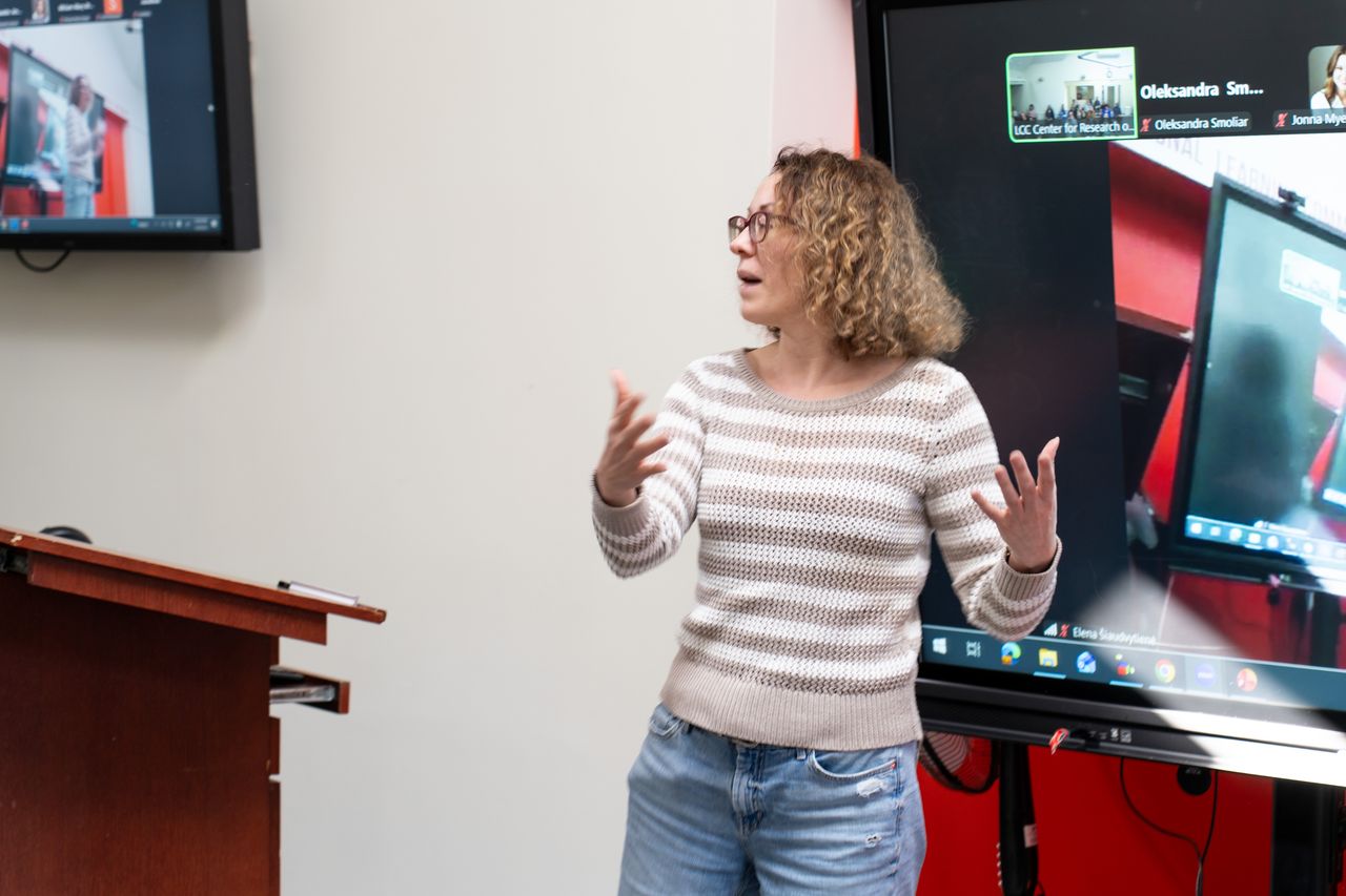 Seminar je započeo pozdravima voditeljice Centra i organizatorice seminara, dr. sc. Elene Šiaudvytienė, nakon čega je slijedila prezentacija Giedrė Norman, medijatorice i instruktorice transformacije sukoba, istraživačice i voditeljice primijenjenog kazališta. Njezina istraživanja proučavaju kako metodologije temeljene na umjetnosti, posebno dokumentarno kazalište i koreografija mogu osvijetliti oblike prakticiranja mirovnih djelovanja, kroz koja pojedinci pružaju otpor sukobima i obnavljaju ljudske odnose. U projektu, članovi zajednice, studenti i izvođači surađivali su na stvaranju dokumentarnog kazališnog performansa pod nazivom “The Gift”, koji kombinira usmeno pripovijedanje i koreografiju kako bi istražio značenje mira i solidarnosti među podijeljenim zajednicama. Nakon prezentacije, slijedili su osvrti prof. Ksenije Ševcove i doc. Brgles, te diskusija s prisutnim sudionicima, tijekom koje su razmijenjena iskustva i komentari vezani uz metodologiju i praksu istraživanja temeljenog na umjetnosti. Docentica Brgles naglasila je važnost pozicionalnosti i refleksivnosti istraživača, te promjenu uloge istraživača kroz faze istraživanja, od vanjskog promatrača do suradnika i izvora podataka. Sugerirala je daljnji razvoj projekta kroz metode poput autoetnografije i a/r/tografije, koje povezuju umjetničku praksu, istraživanje i poučavanje. Također je ukazala na važnost razumijevanja odnosa moći i različitih čimbenika koji utječu na istraživača, uključujući osobne, vanjske, unutarnje i relacijske čimbenike. Kroz svoj osvrt, doc. Brgles istaknula je kako sustavno prikupljanje podataka i refleksija profesorice Normana daje projektu novu, održivu dimenziju te omogućuje sagledavanje rezultata iz perspektive sudionika istraživanja, umjetnika i istraživača.