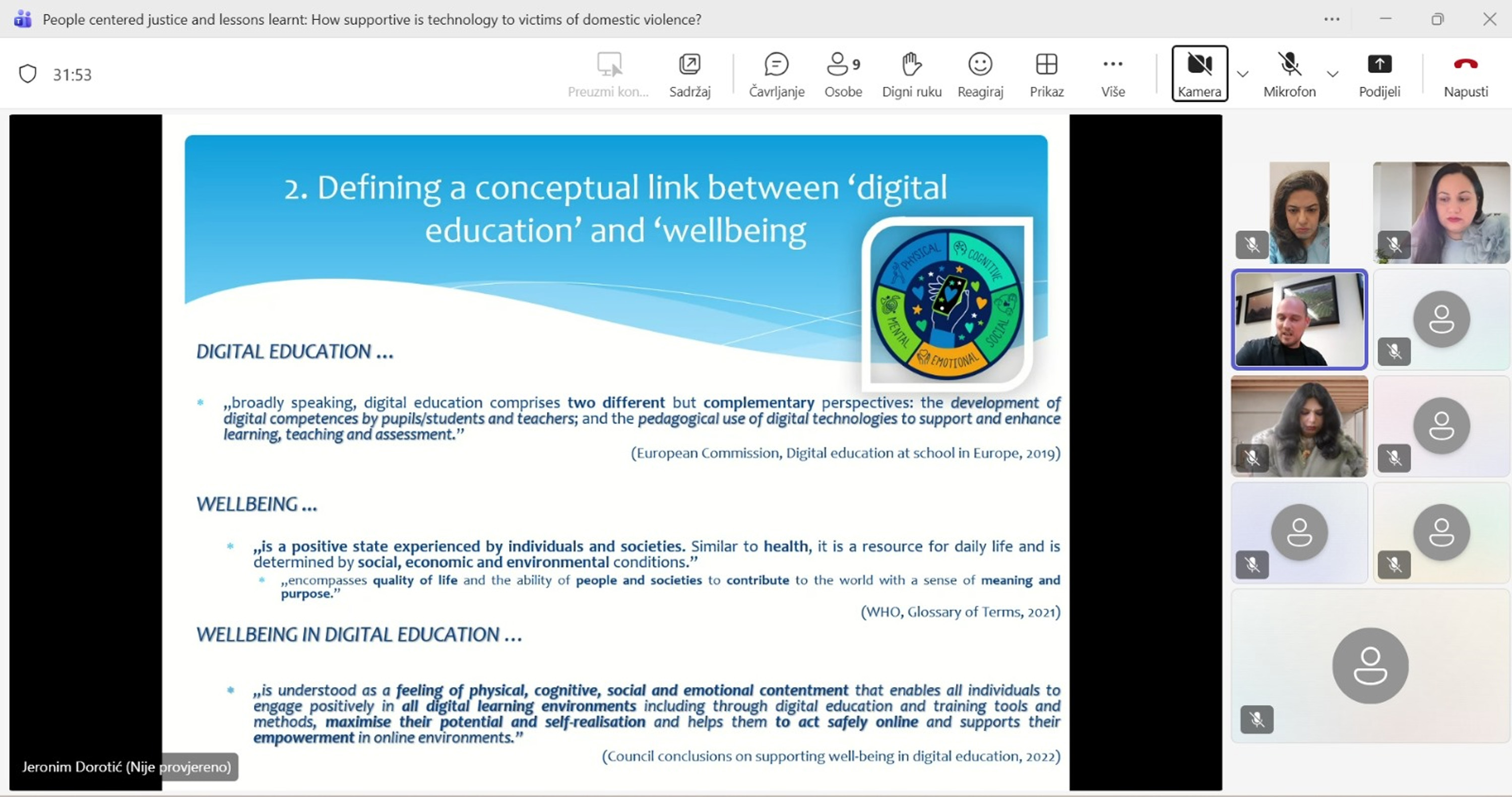 Doc. dr. sc. Jeronim Dorotić predstavio je rad pod naslovom Approaching the ‘Wellbeing Dimension’ of the EU’s Digital Education Policies, u kojem je analizirao izazove i mogućnosti koje prate razvoj politika digitalnog obrazovanja Europske unije.