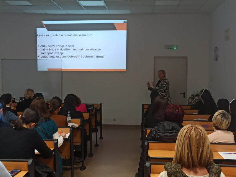 Voditeljica centra dr. sc. Anita Dučkić Sertić održala predavanje pod nazivom “Granice u odnosima”. Potom je program manager Centra Jelena Zadro, mag. psych. nastavila s predavanjem na temu “Nasilje nad ranjivim osobama – oblici i vrste zlostavljanja; posljedice zlostavljanja; prepoznavanje rizičnih i