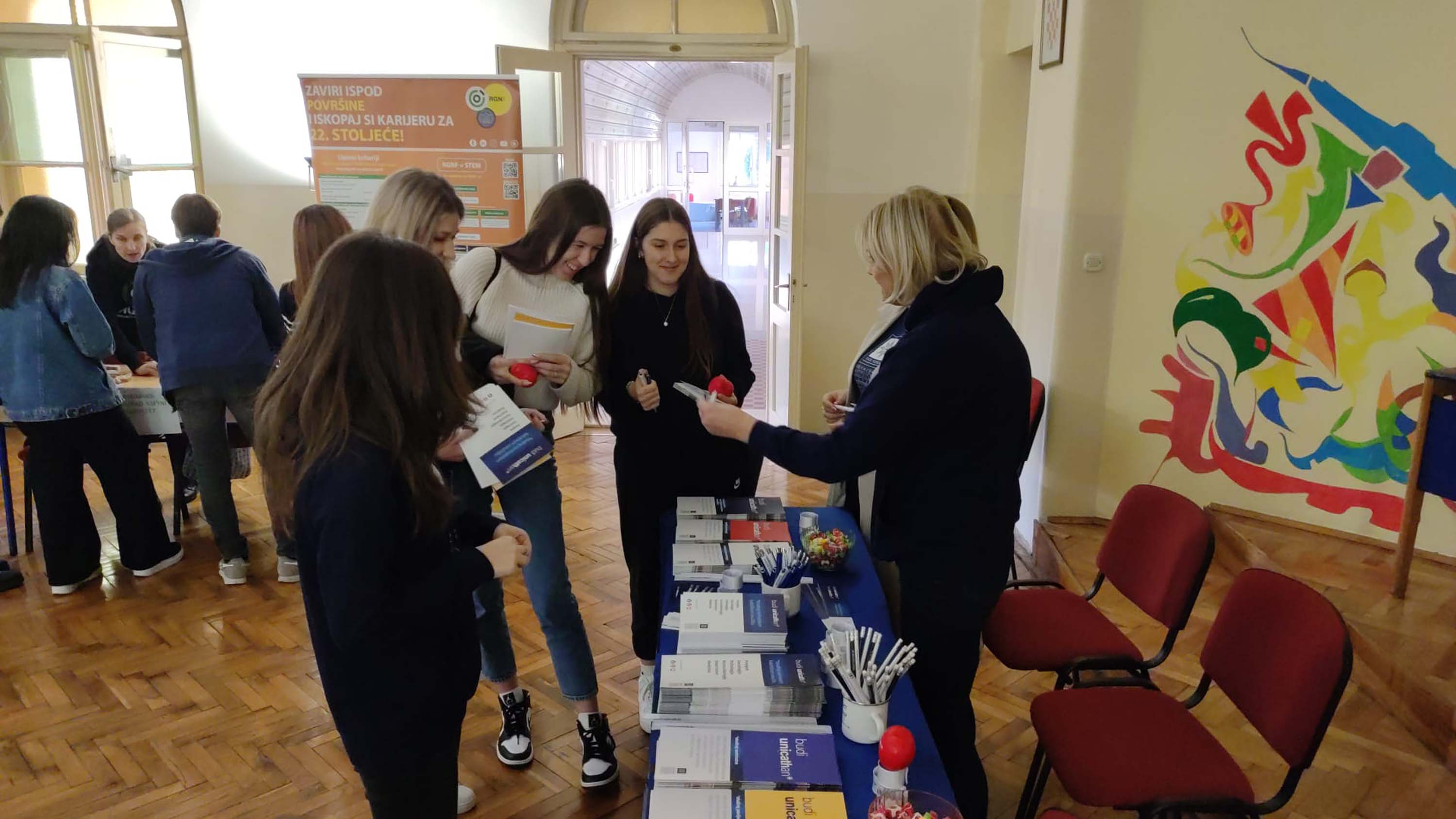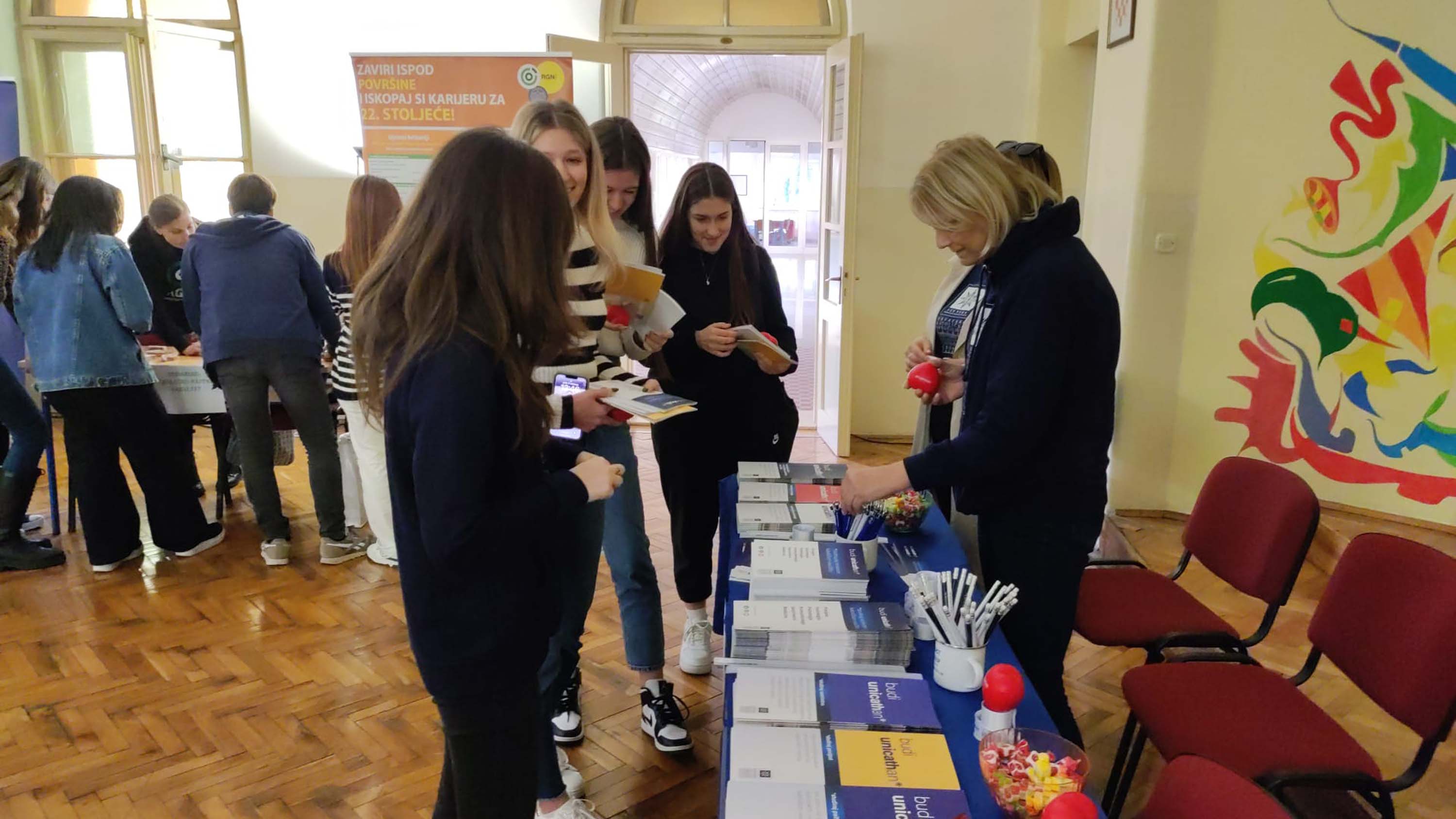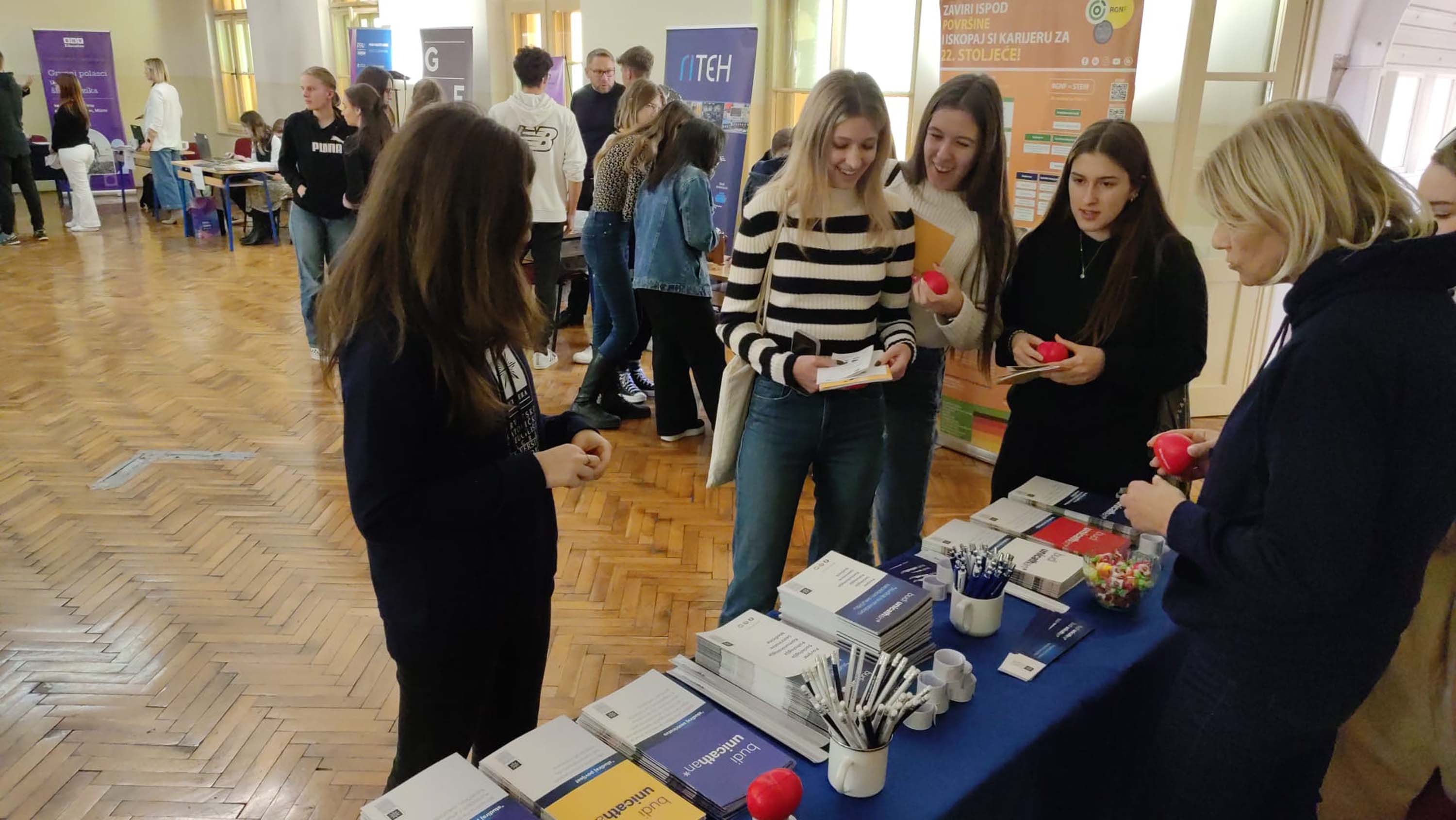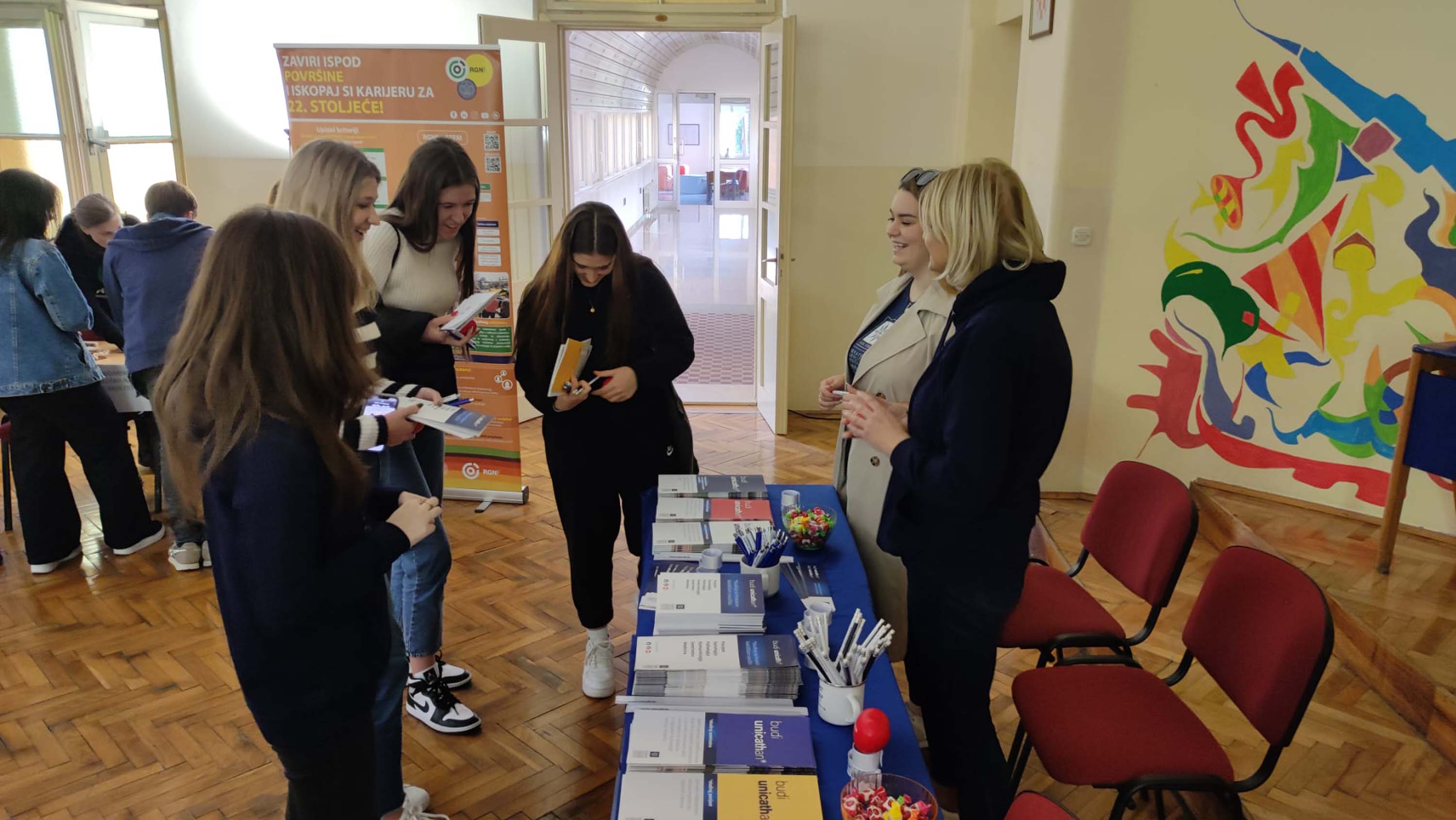 U petak, 17. studenog 2023. predstavnici našeg Sveučilišta su u Pazinskom kolegiju sudjelovali na Sajmu karijera za učenike i učenice učeničkog doma, srednje strukovne škole i gimnazije u Pazinu. Uz 15 predstavljača visokoobrazovnih institucija sa Sveučilišta u Zagrebu i Rijeci, učenici su, kao i u Poreču, imali priliku informirati se o svim studijskim programima i uvjetima upisa te iz prve ruke naših studentica i nastavnica čuti iskustva studija, rada i unicathnosti Hrvatskog katoličkog sveučilišta.