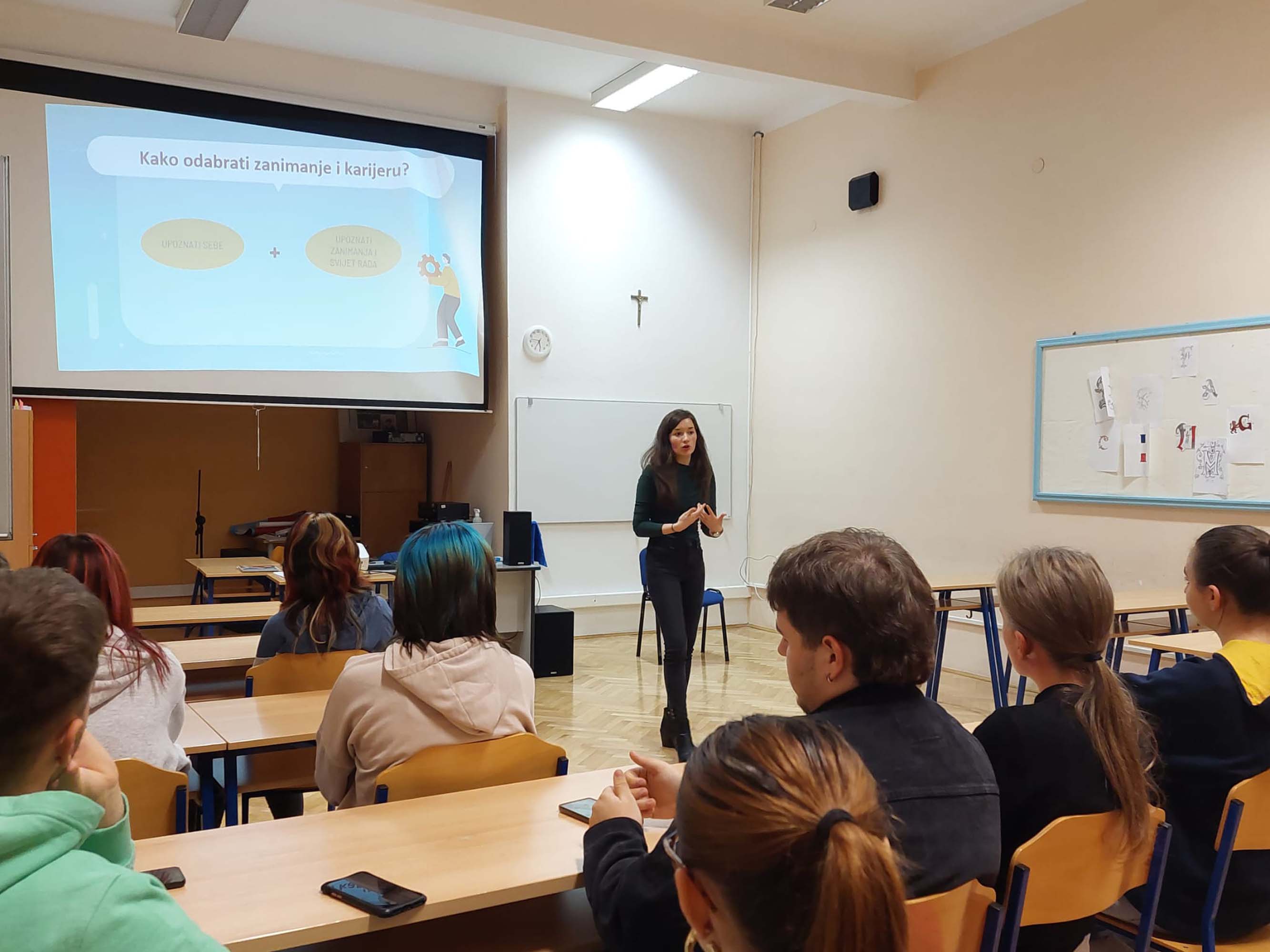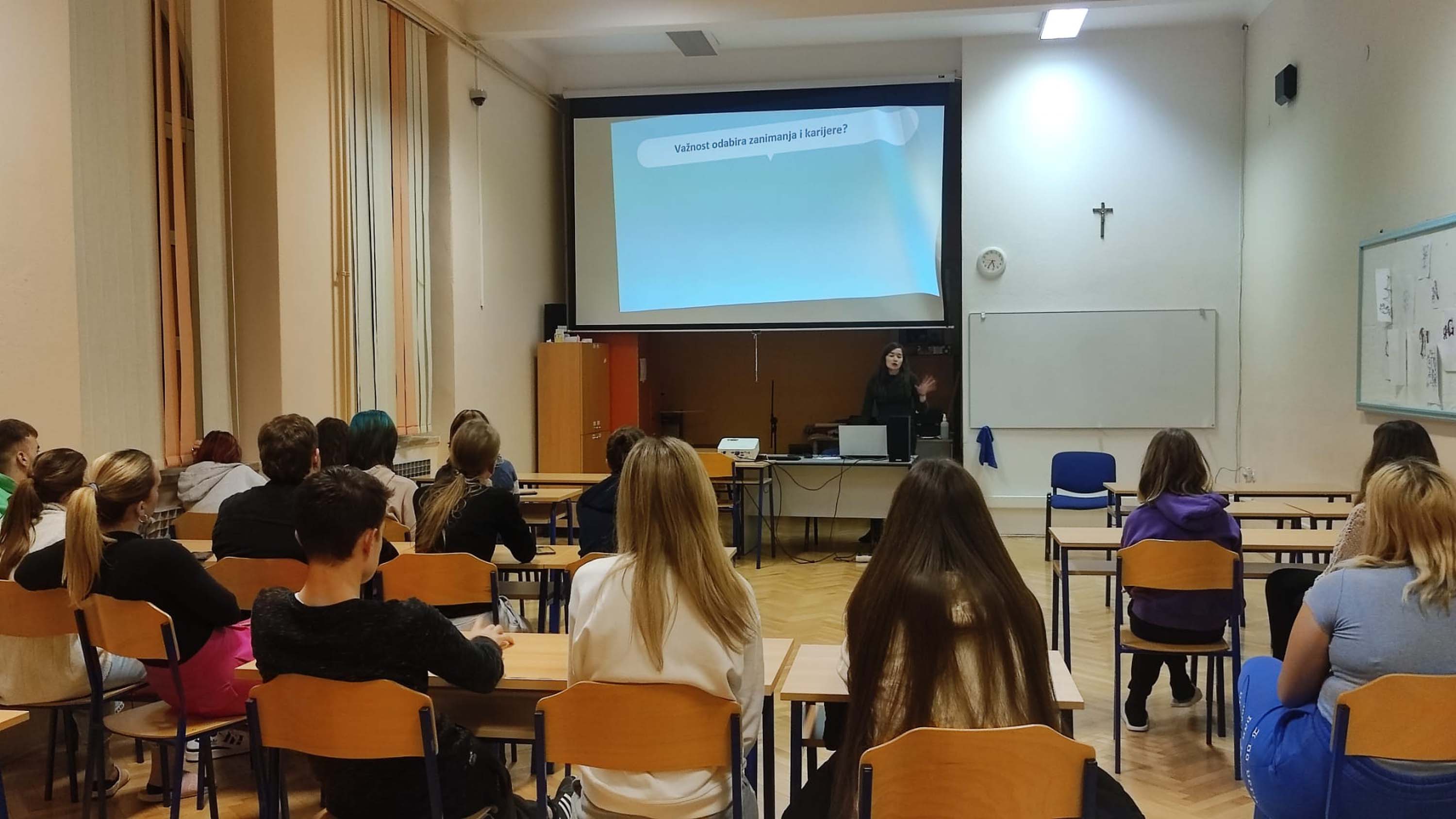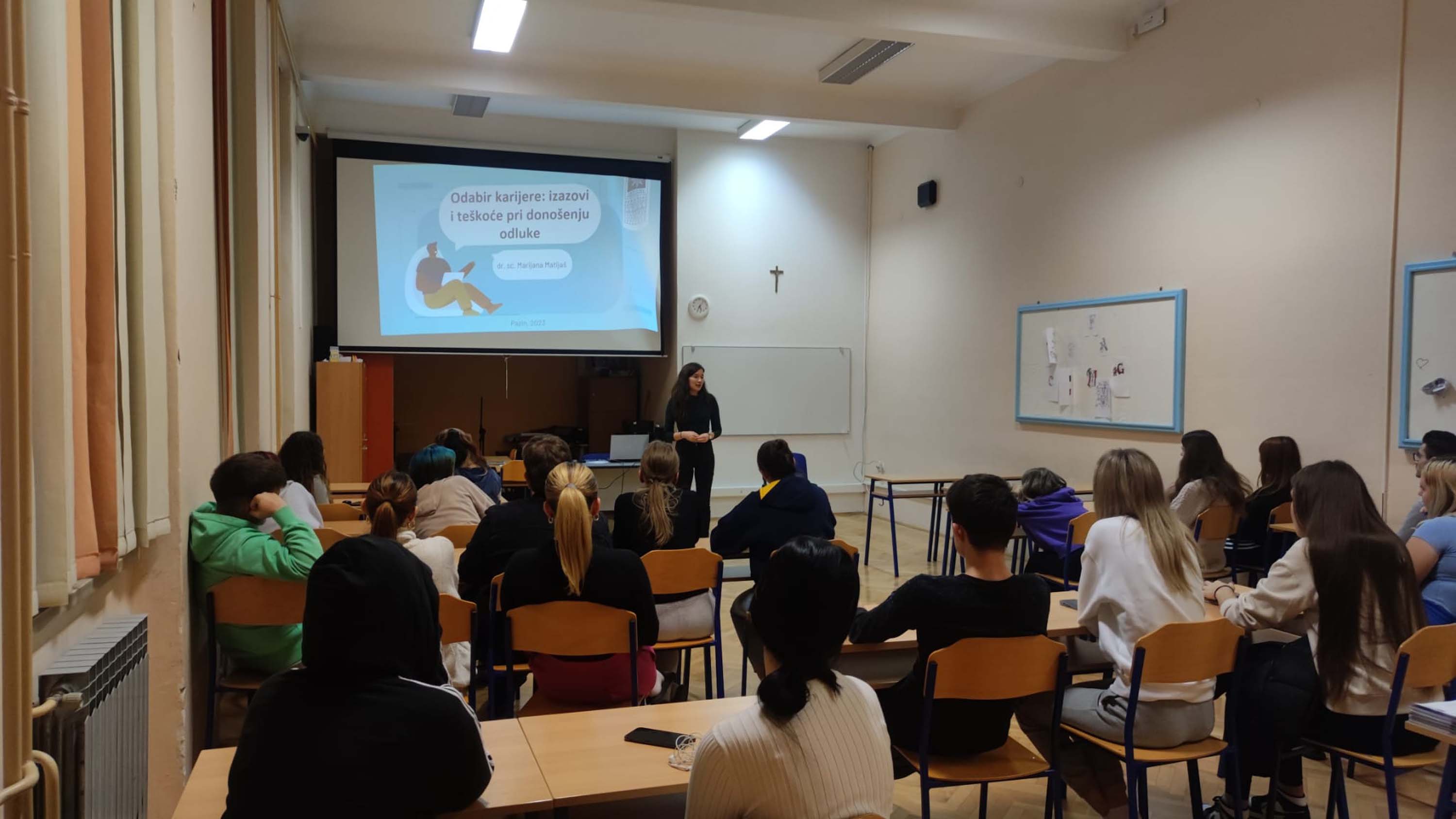 Istoga dana u Pazinskom kolegiju, za učenike trećih i četvrtih razreda dr. sc. Marijana Matijaš, viša asistentica sa Sveučilišnog odjela za psihologiju održala je predavanje Odabir karijere: izazovi i teškoće pri donošenju odluke. U interaktivnom predavanju viša asistentica Matijaš učenicima je pokazala koliko je odabir njihova budućeg poziva važan budući da će se odabranim zanimanjem baviti i raditi najveći dio svog života. Također, naglasila je koje su poteškoće onih učenika koji se „pronalaze u svemu“ i koji ne znaju u kojem smjeru prilikom odabira zanimanja krenuti.