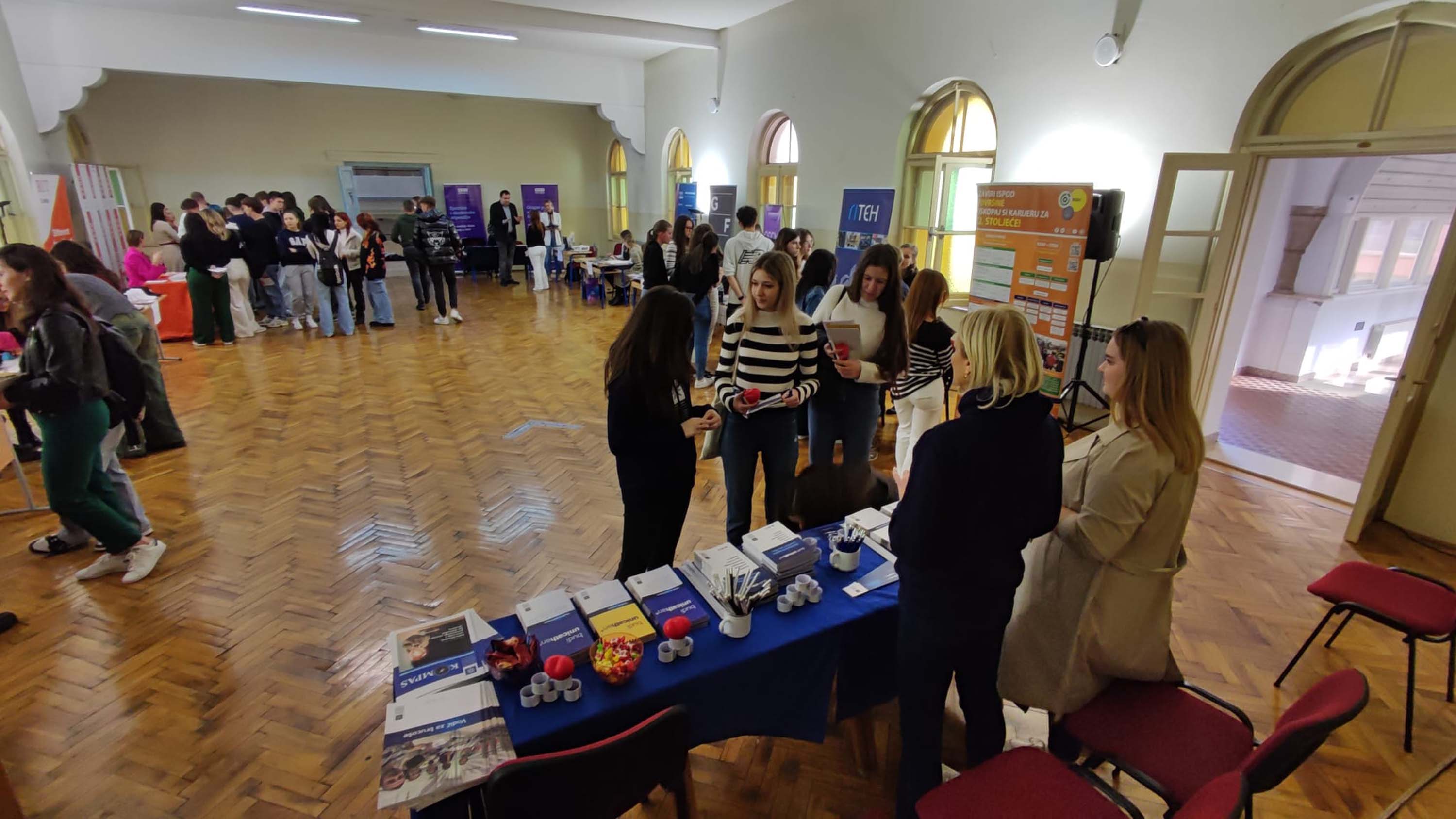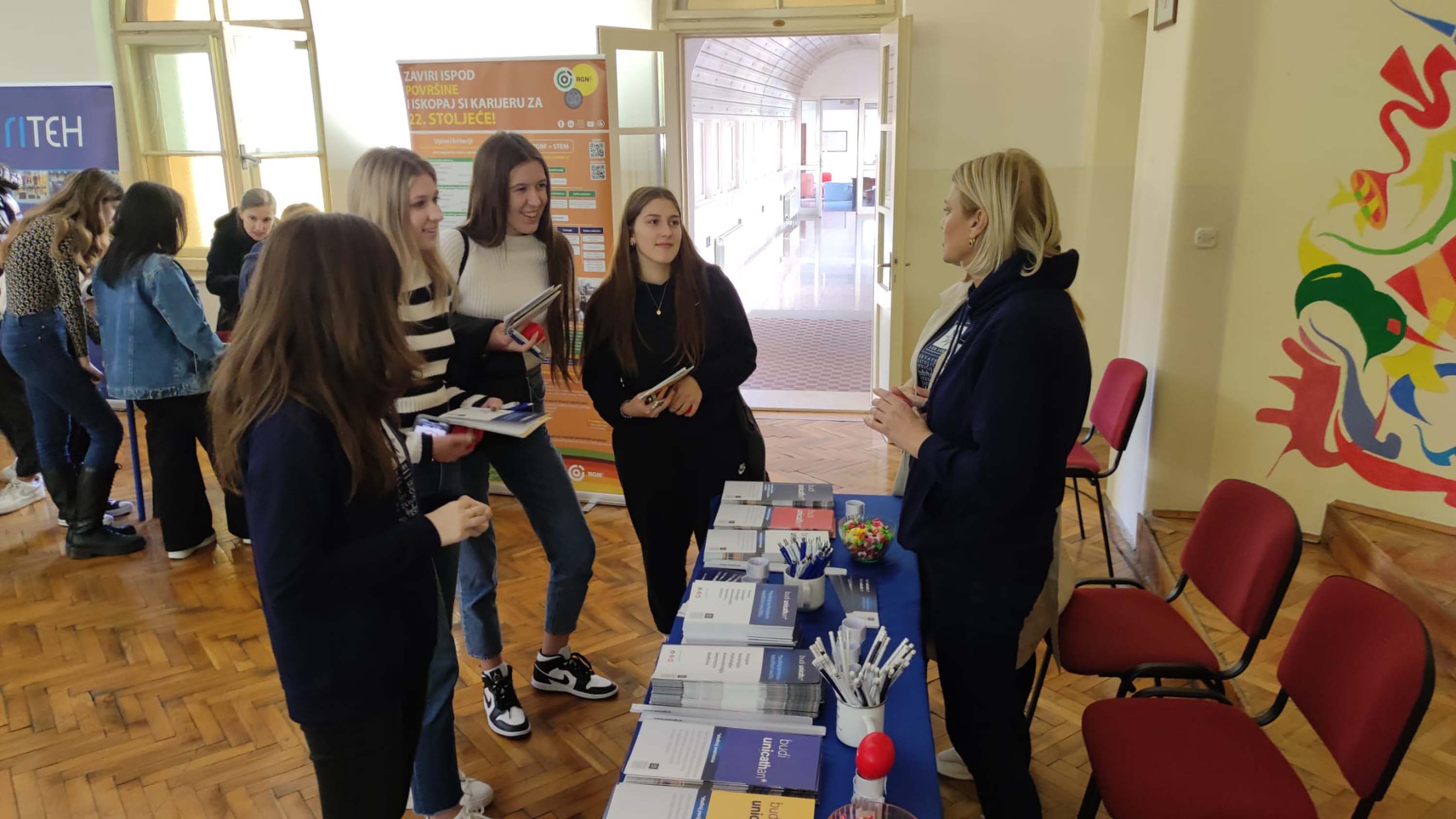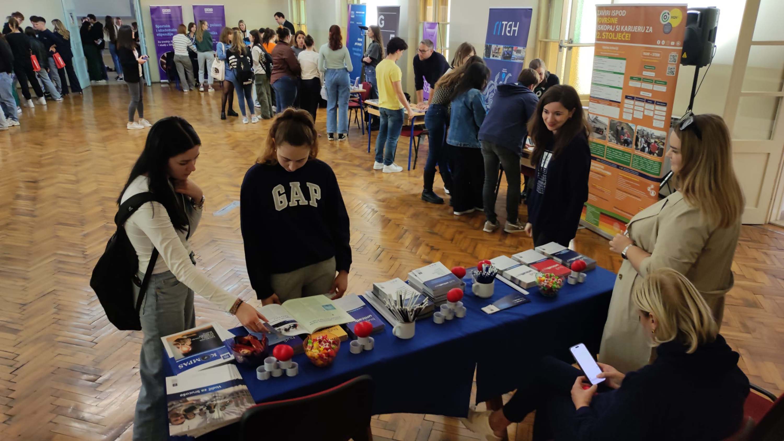 Prošloga tjedna, od 15. do 17. studenog 2023., nastavnice i studentice Hrvatskog katoličkog sveučilišta sudjelovale su na Sajmu karijera u Poreču i Pazinu gdje su predstavile Hrvatsko katoličko sveučilište učenicama i učenicima s područja Istre. U srijedu 15. studenog 2023. naše Sveučilište predstavljali su na Sajmu karijera u Poreču na kojem je sudjelovalo 30 visokoobrazovnih institucija iz Hrvatske, Slovenije i Italije. Učenici su imali priliku informirati se o svim studijskim programima i uvjetima upisa na sveučilišne prijediplomske studije, a od studentice prve godine sveučilišnog diplomskog studija komunikologije Ariele Matić i bivše studentice studija povijesti, Marije Stanešić, univ. mag. hist. iz prve ruke mogli su se informirati o iskustvu studiranja na HKS-u.