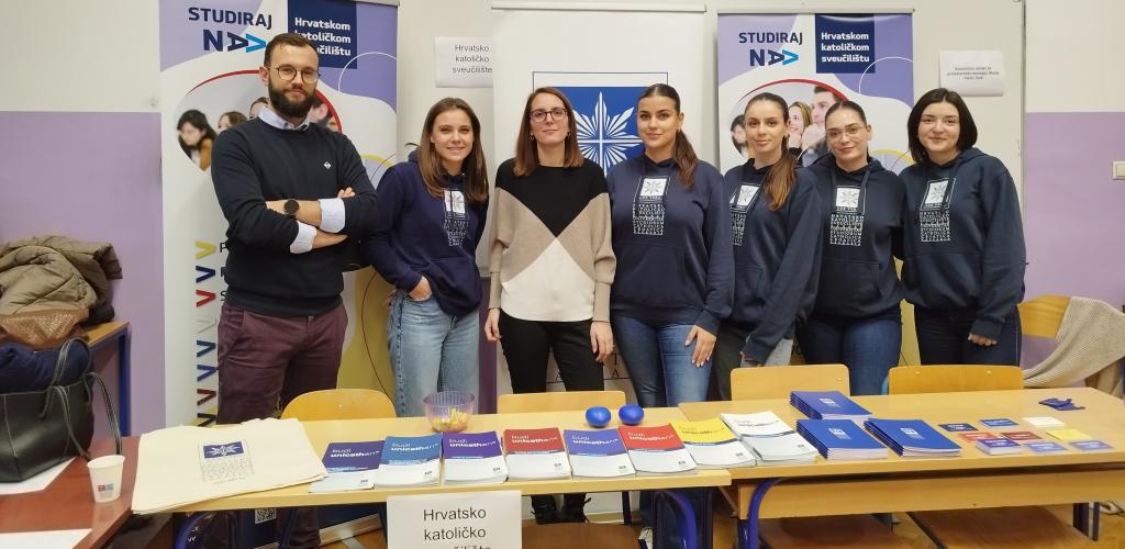 Kroz cijeli dan naše kolegice i kolege razgovarali su s maturantima o našim studijskim programima, aktivnostima našega Sveučilišta i studentskom životu, a nastavnici Sveučilišnog odjela za povijest dr. sc. Filip Hren i Matea Jurić Matulić, mag. hist., pružili su dodatne detalje o obvezama i očekivanjima koje ih čekaju ako odluče studirati na HKS-u.